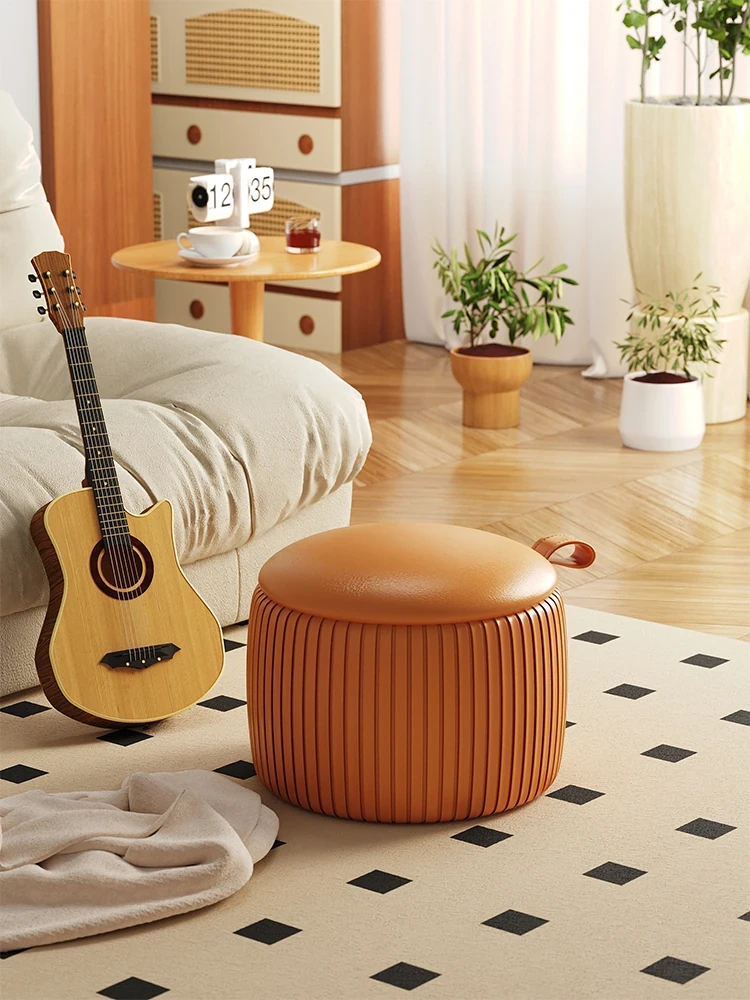 夢見るスツール|家用シューズチェンジャー・ティーテーブル・ソファーベンチ・玄関のソフトパッドスツール|シンプルでおしゃれなラウンドスツール・レザー仕様!あなたの空間にぴったりの一品!