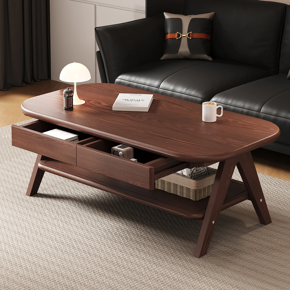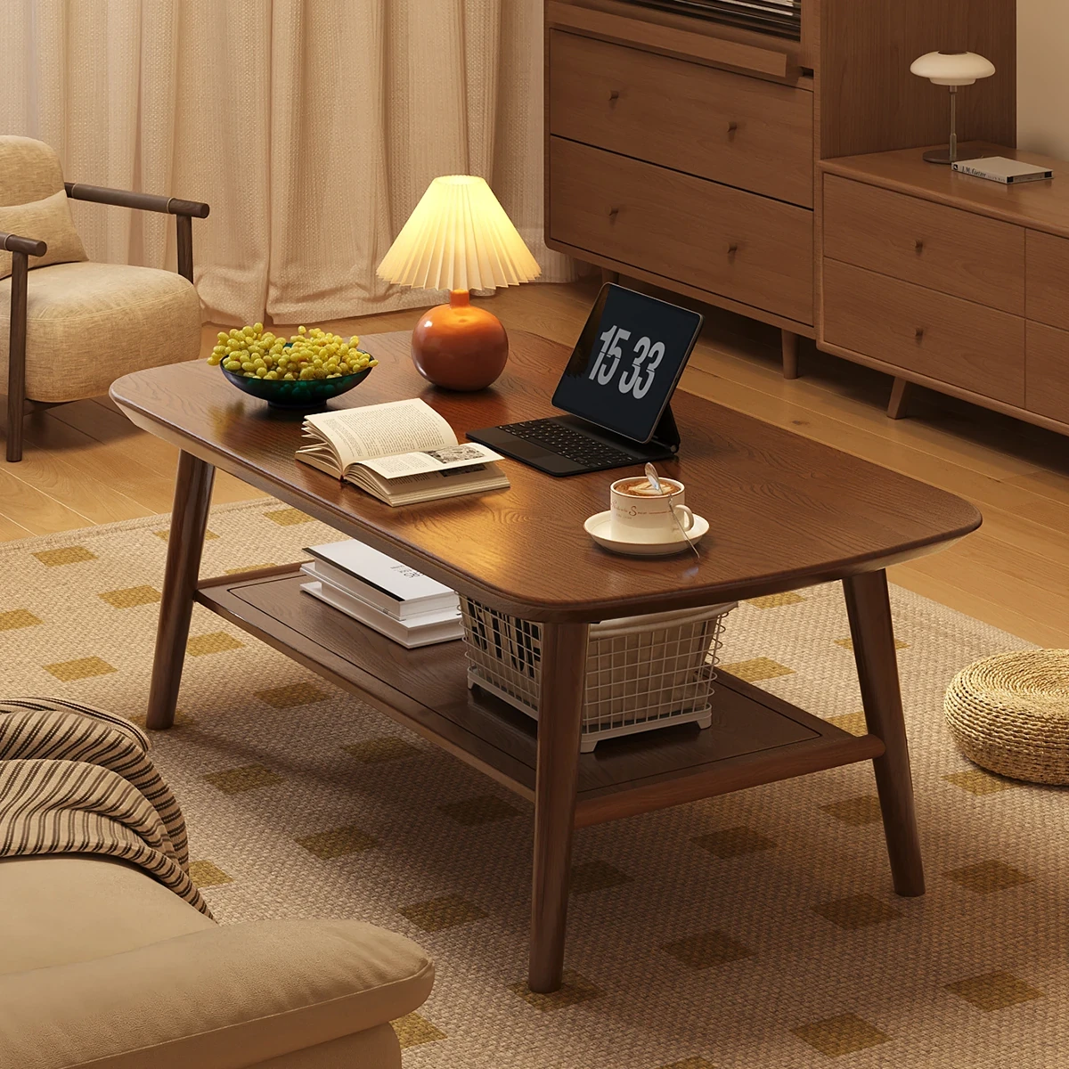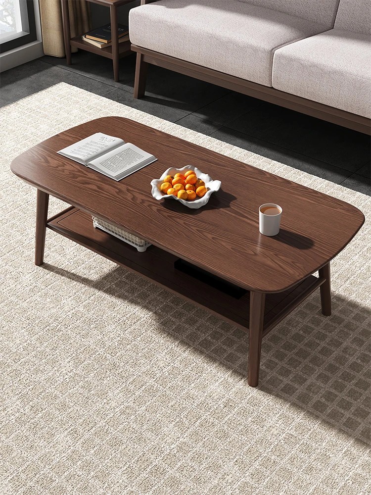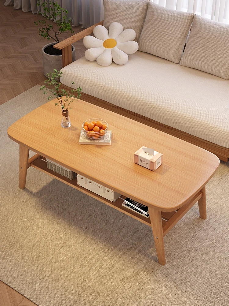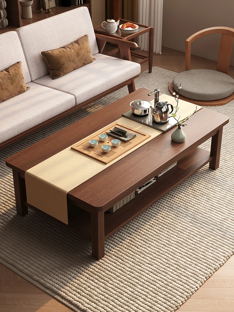 三夢の無垢材ローテーブル - 2024年新作!小型住宅やオフィスに最適なダブルレイヤーの茶卓。リビングやゲスト用にぴったりのスタイリッシュなデザインです!