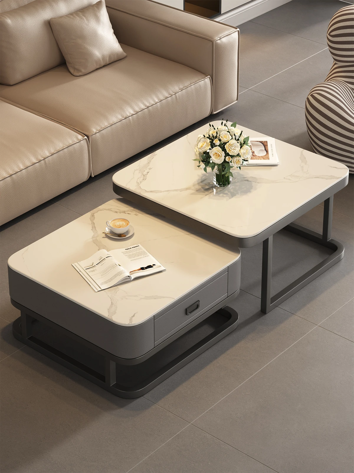 2024年新作!軽やかで洗練された岩板デザインのリビング向けテーブル。小型住宅にもぴったりなスクエアガラスのティーテーブルとシンプルなテレビキャビネットのコンビネーション。おしゃれな空間を演出します!