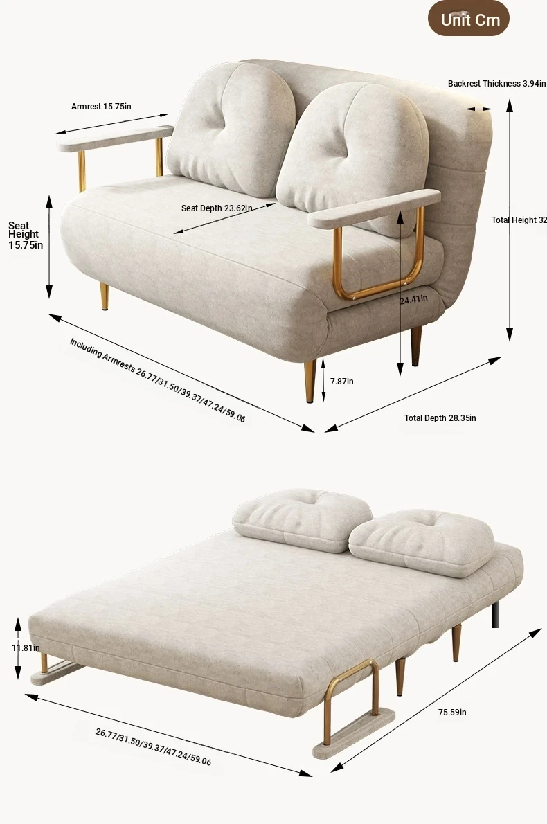 Cloud Sofa Bed - Foldable Multi-Functional Design for Small Spaces, Trendy Style for Living Room or Study, Perfect for Singles or Couples, Elegant Chaise Lounge Option