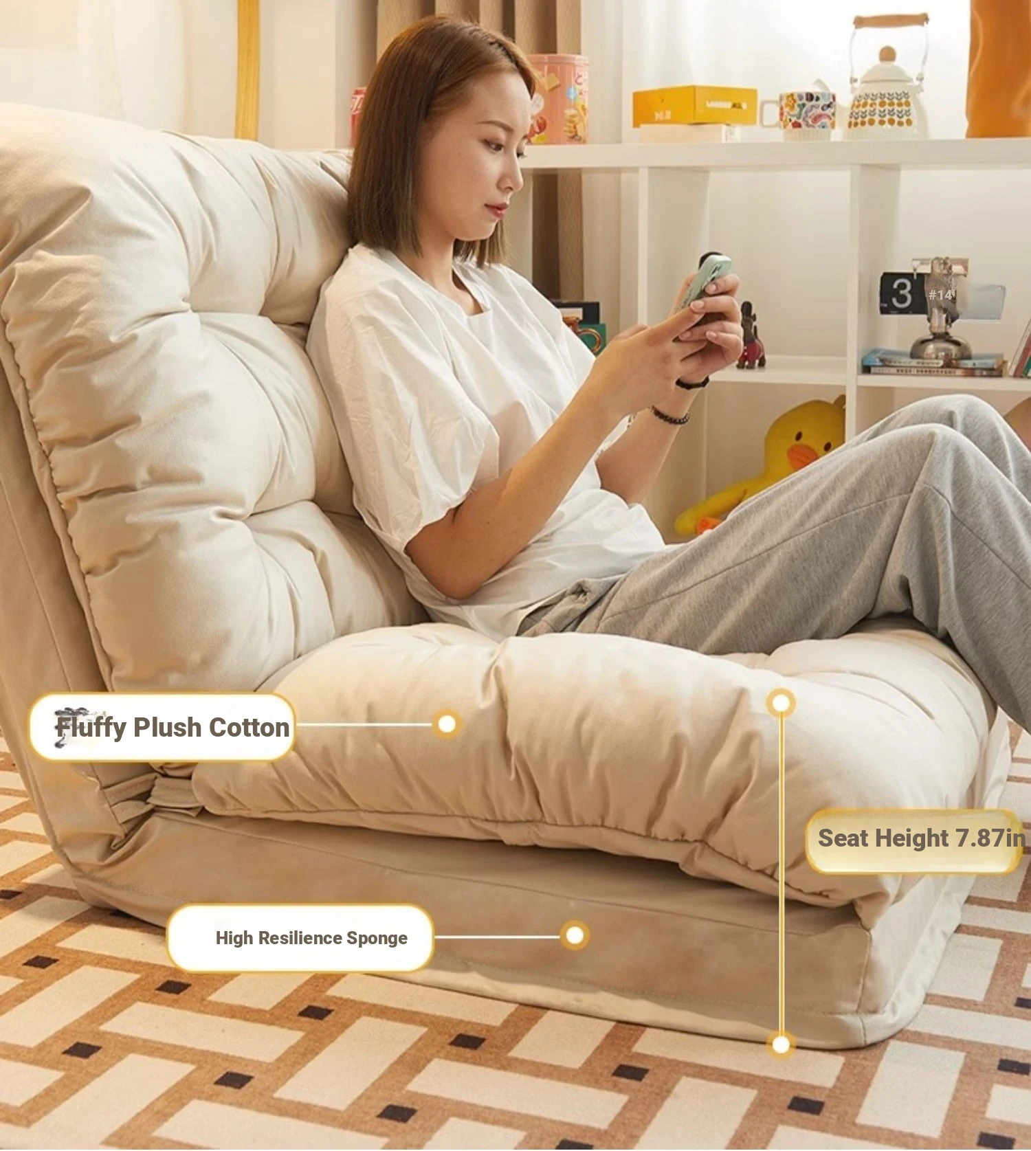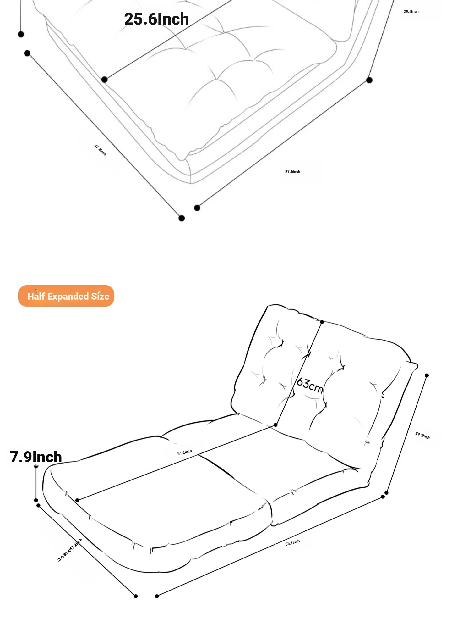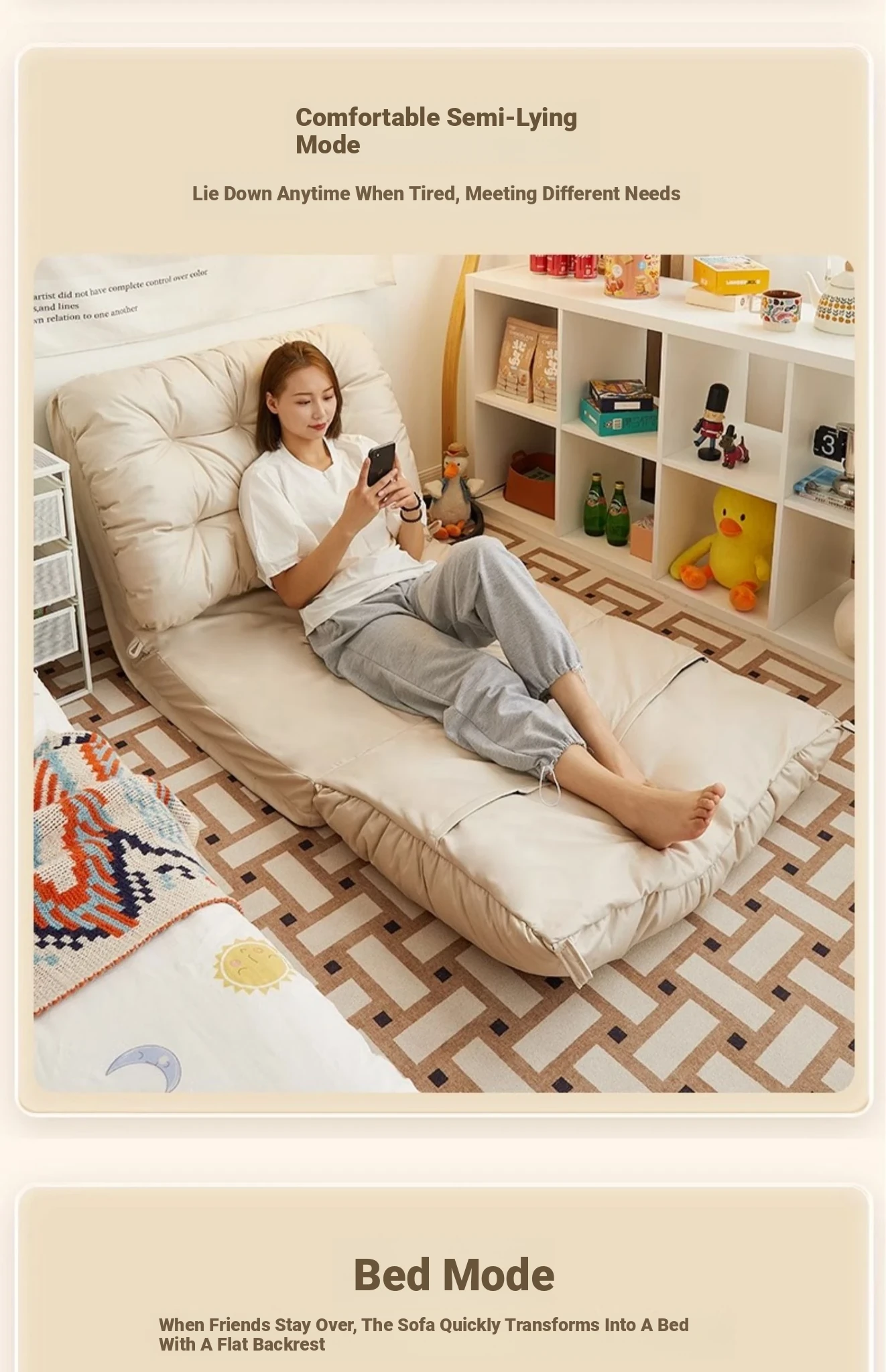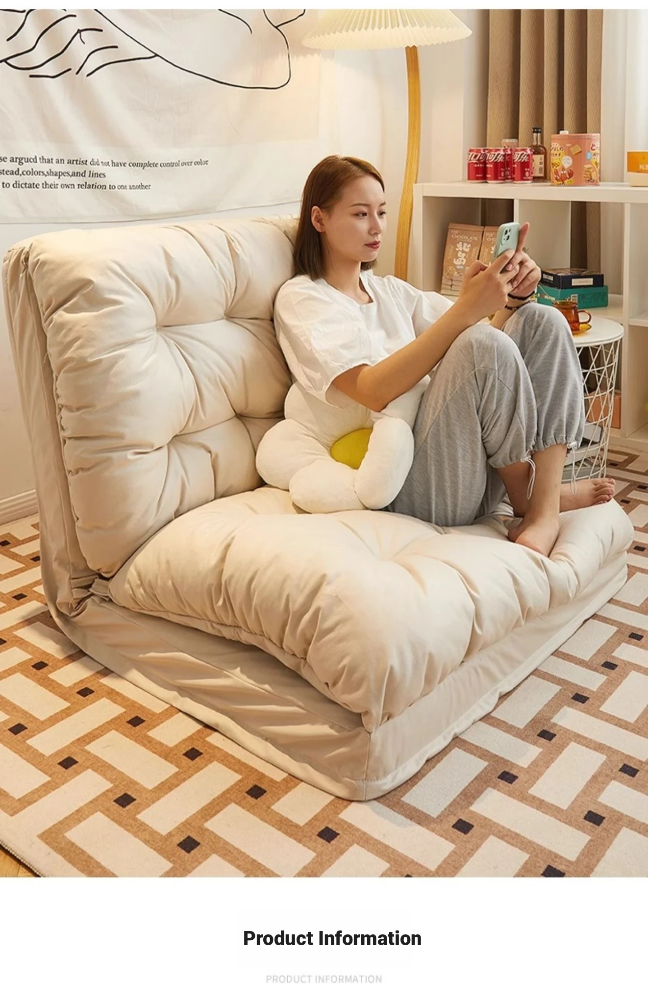 Dreamy Folding Sofa Bed - Multi-Functional Lounge Chair for Bedroom, Balcony, or Tatami. Perfect for Relaxation and Sleep, Stylish Design for Any Space!