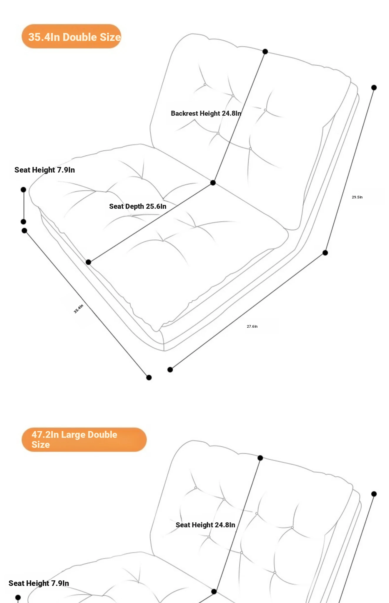Upgrade armrest | Orange 43.31in Double
