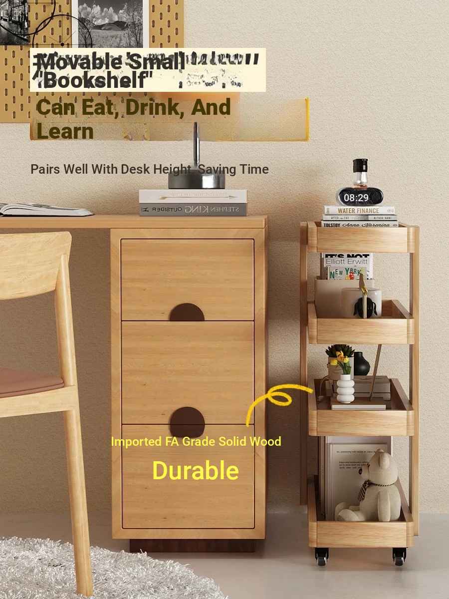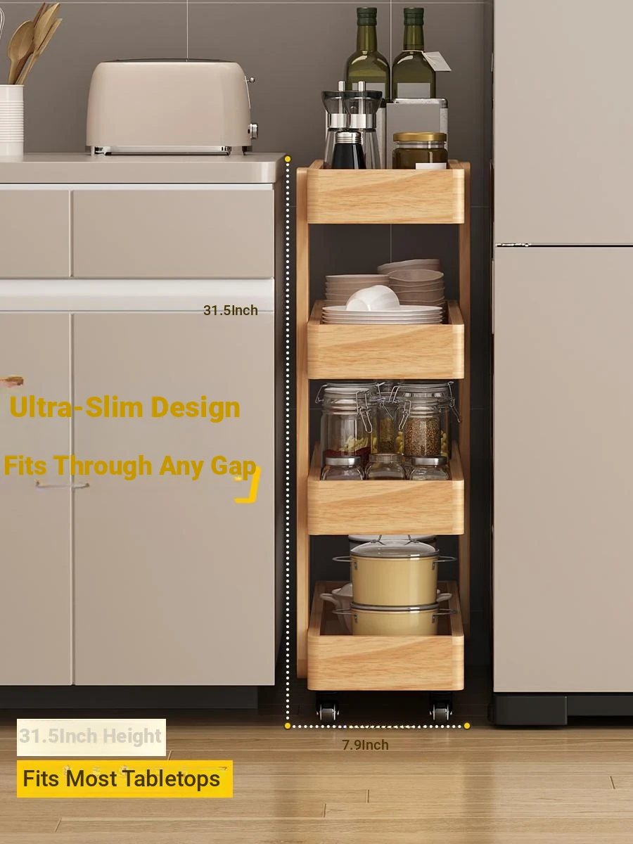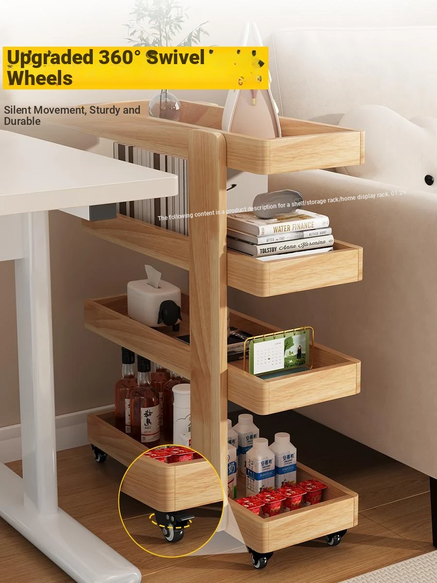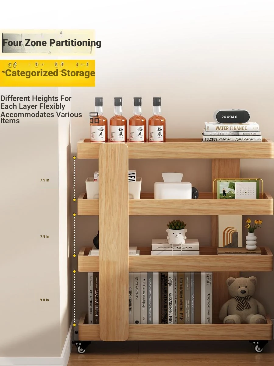 Dreamy Multi-Layer Narrow Serving Cart – Versatile Floor Bookshelf and Snack Storage Cabinet on Wheels, Perfect for Sofa Storage, Crafted from Solid Wood