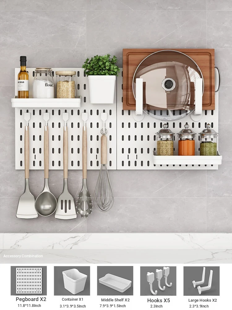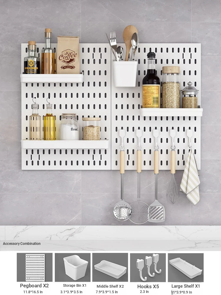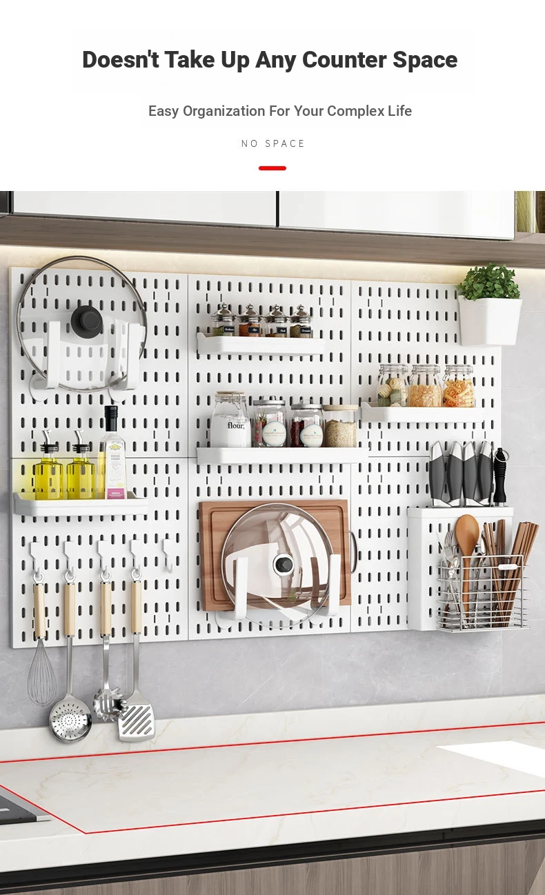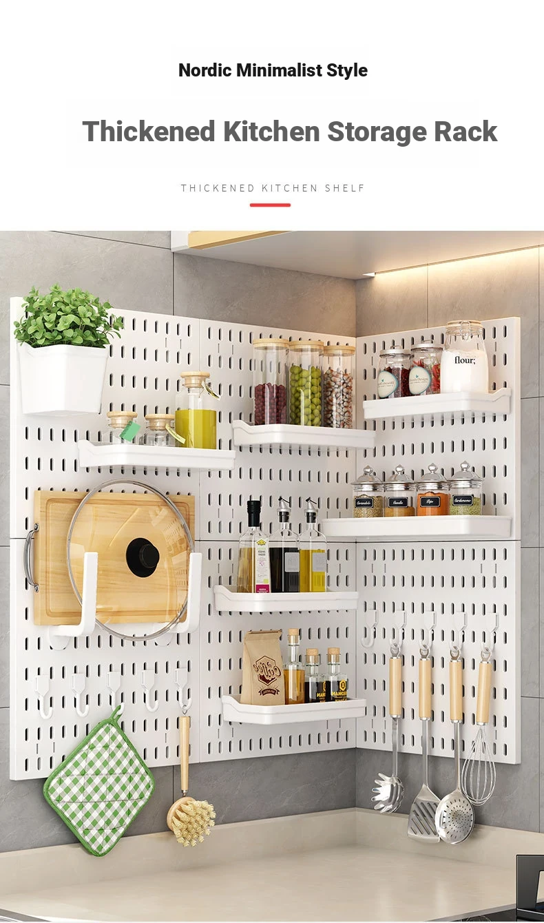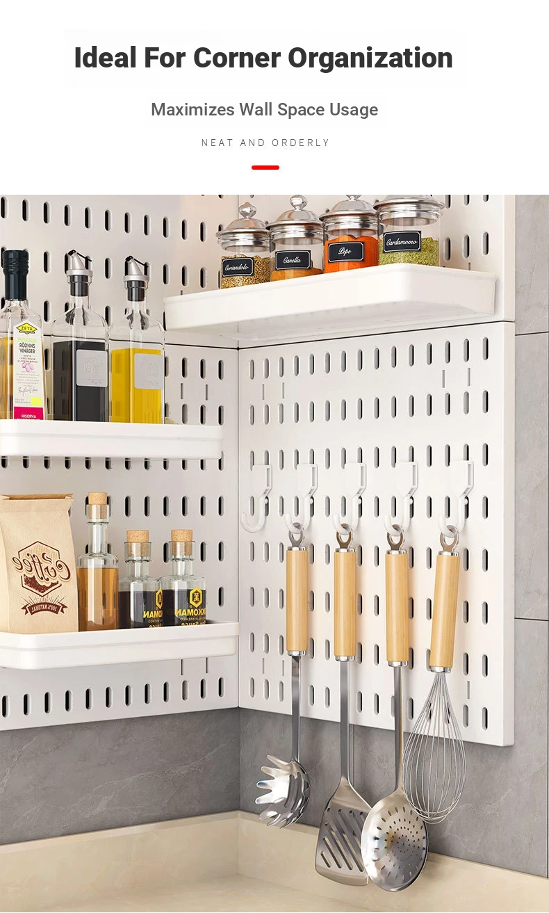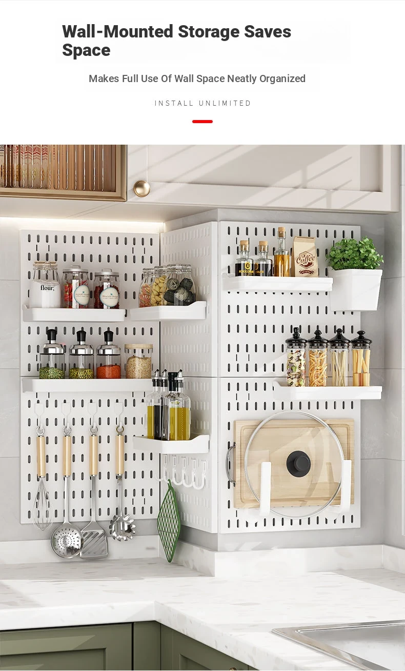 Dreamy Wall-Mounted Storage Shelf - No Drilling Required, Multi-Functional Kitchen Organizer for Spices, Knives, and Pot Lids - Stylish Pegboard Display and Storage Solution for Your Kitchen