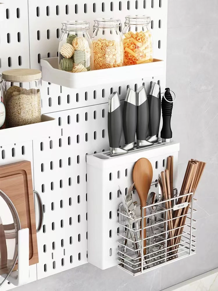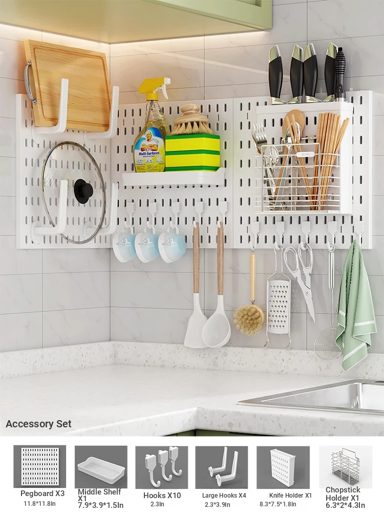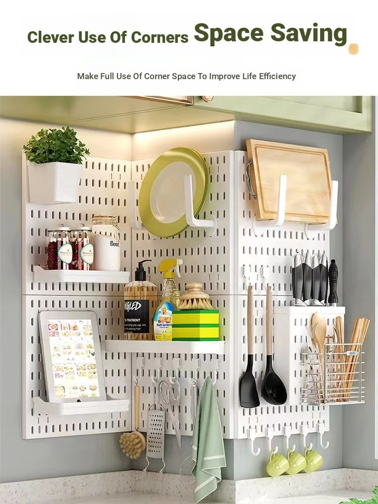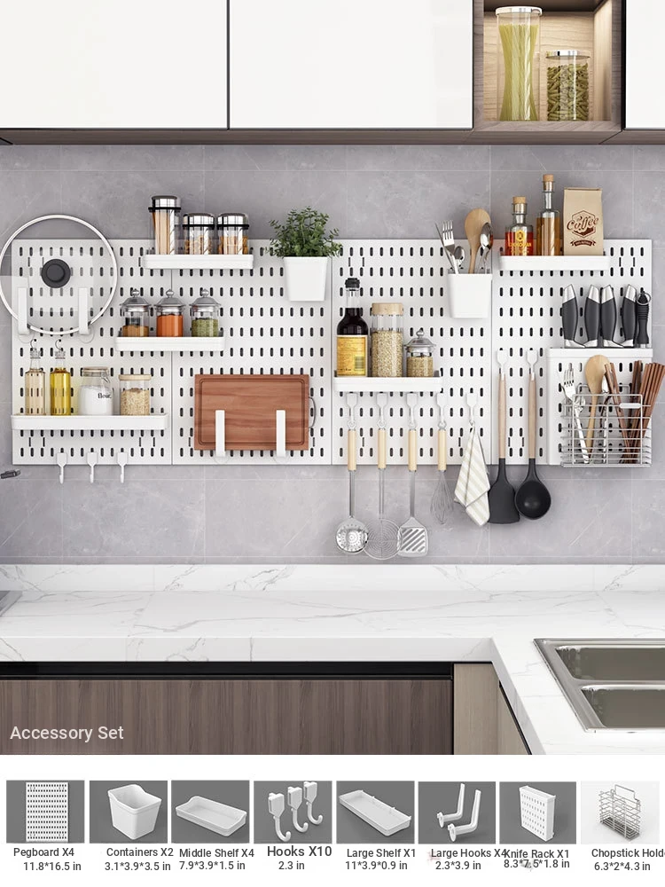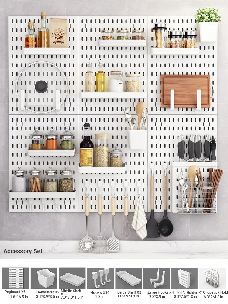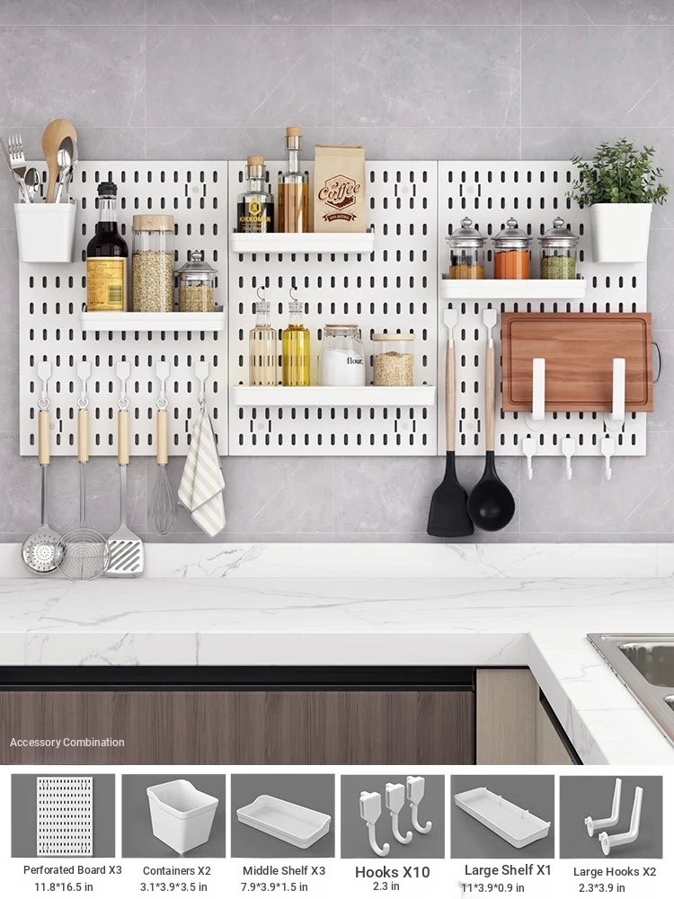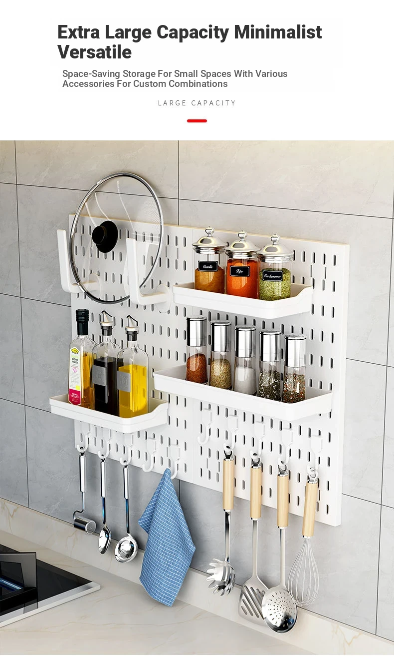 Dreamy Wall-Mounted Storage Shelf - No Drilling Required, Multi-Functional Kitchen Organizer for Spices, Knives, and Pot Lids - Stylish Pegboard Display and Storage Solution for Your Kitchen