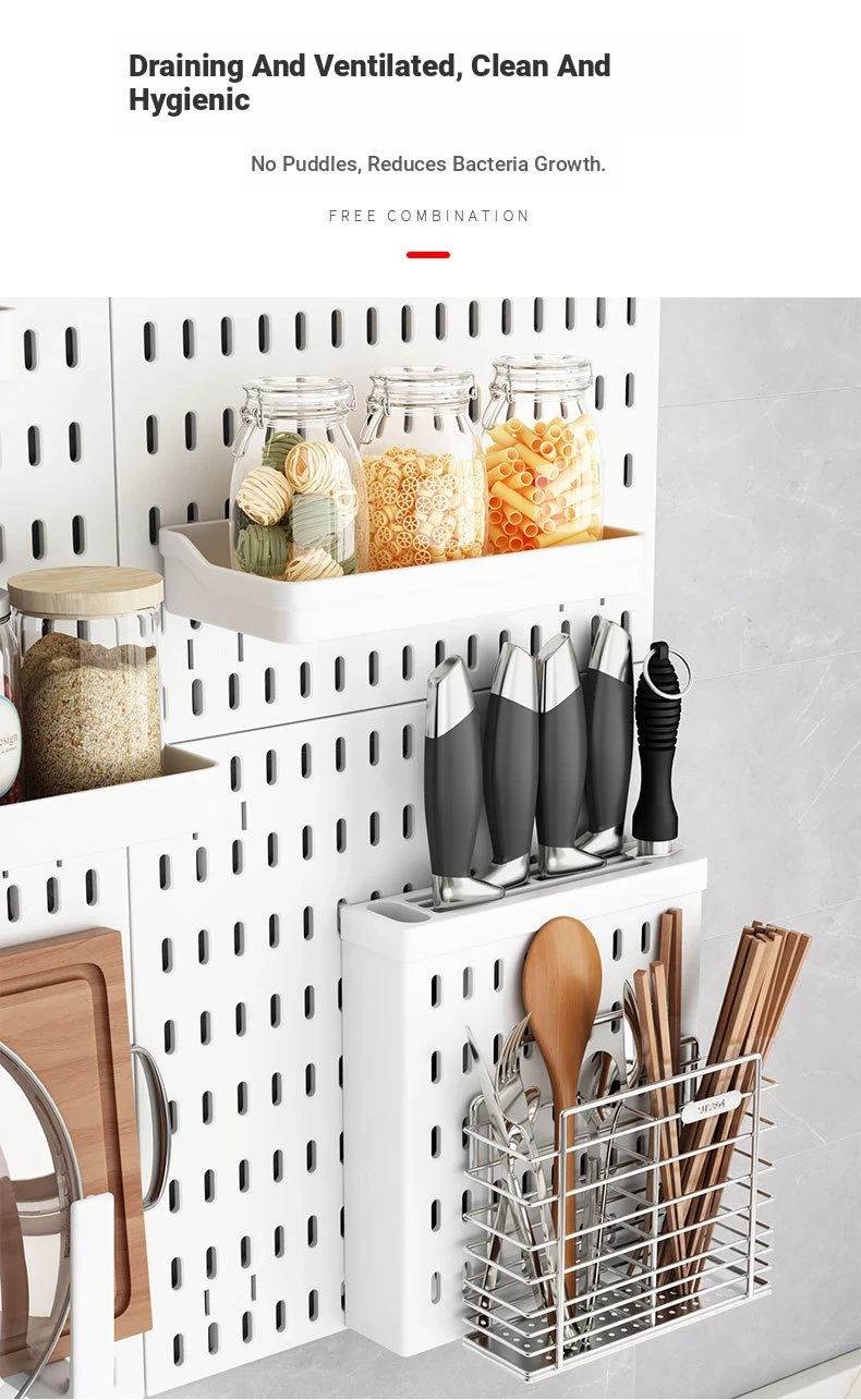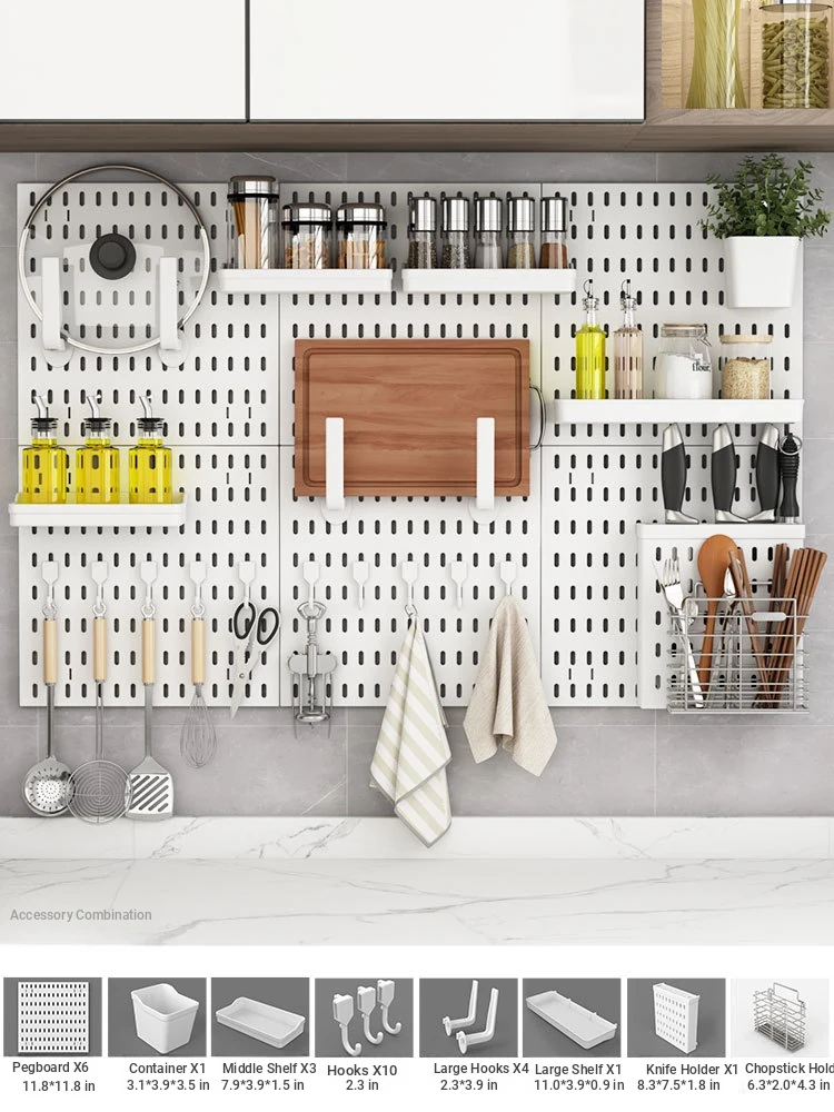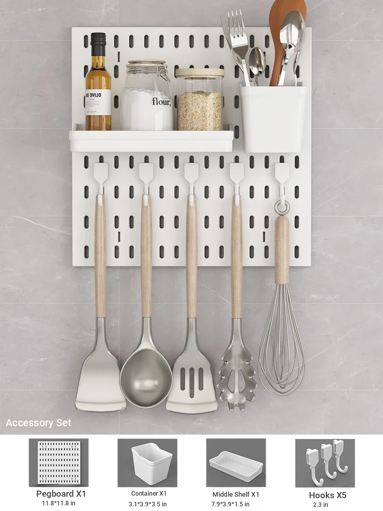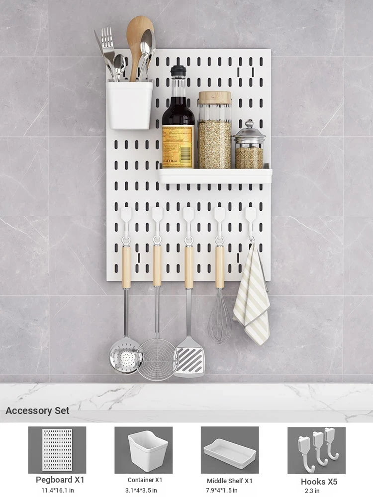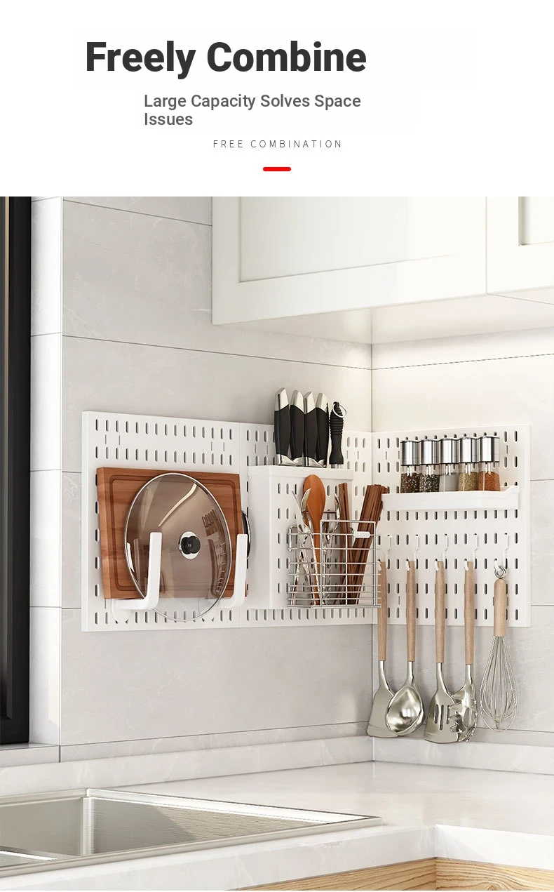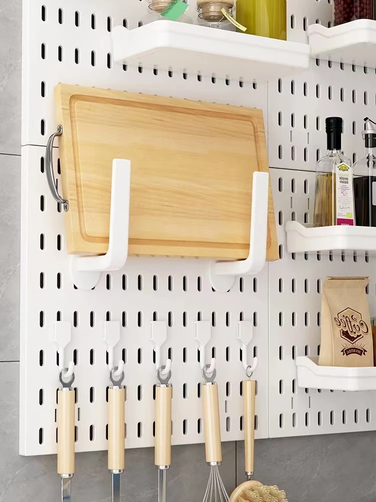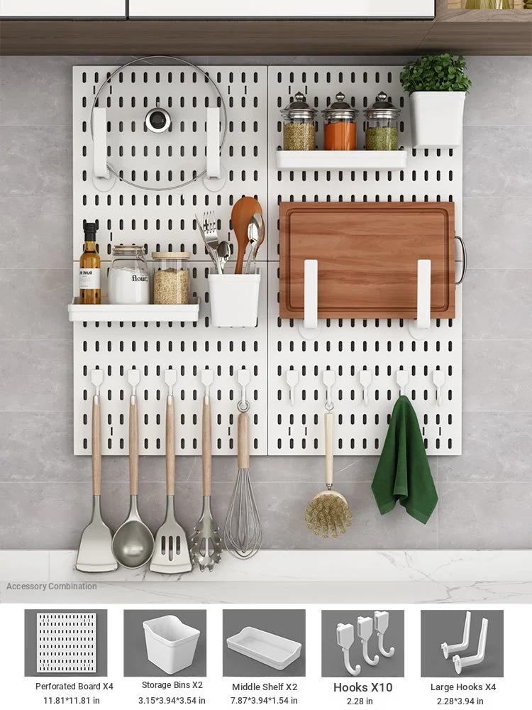 Dreamy Wall-Mounted Storage Shelf - No Drilling Required, Multi-Functional Kitchen Organizer for Spices, Knives, and Pot Lids - Stylish Pegboard Display and Storage Solution for Your Kitchen