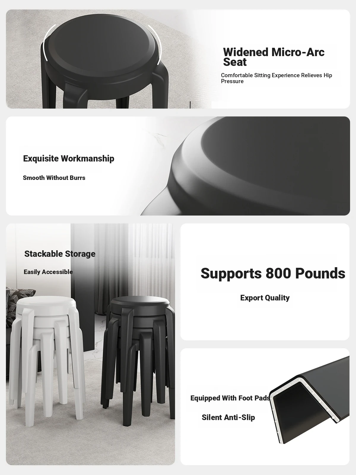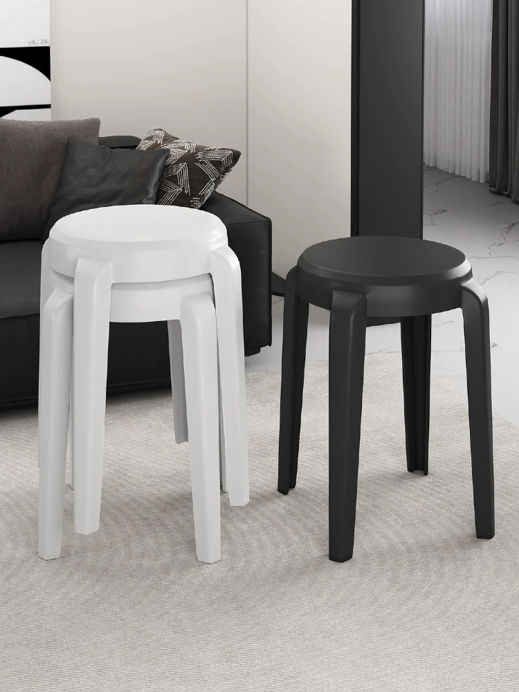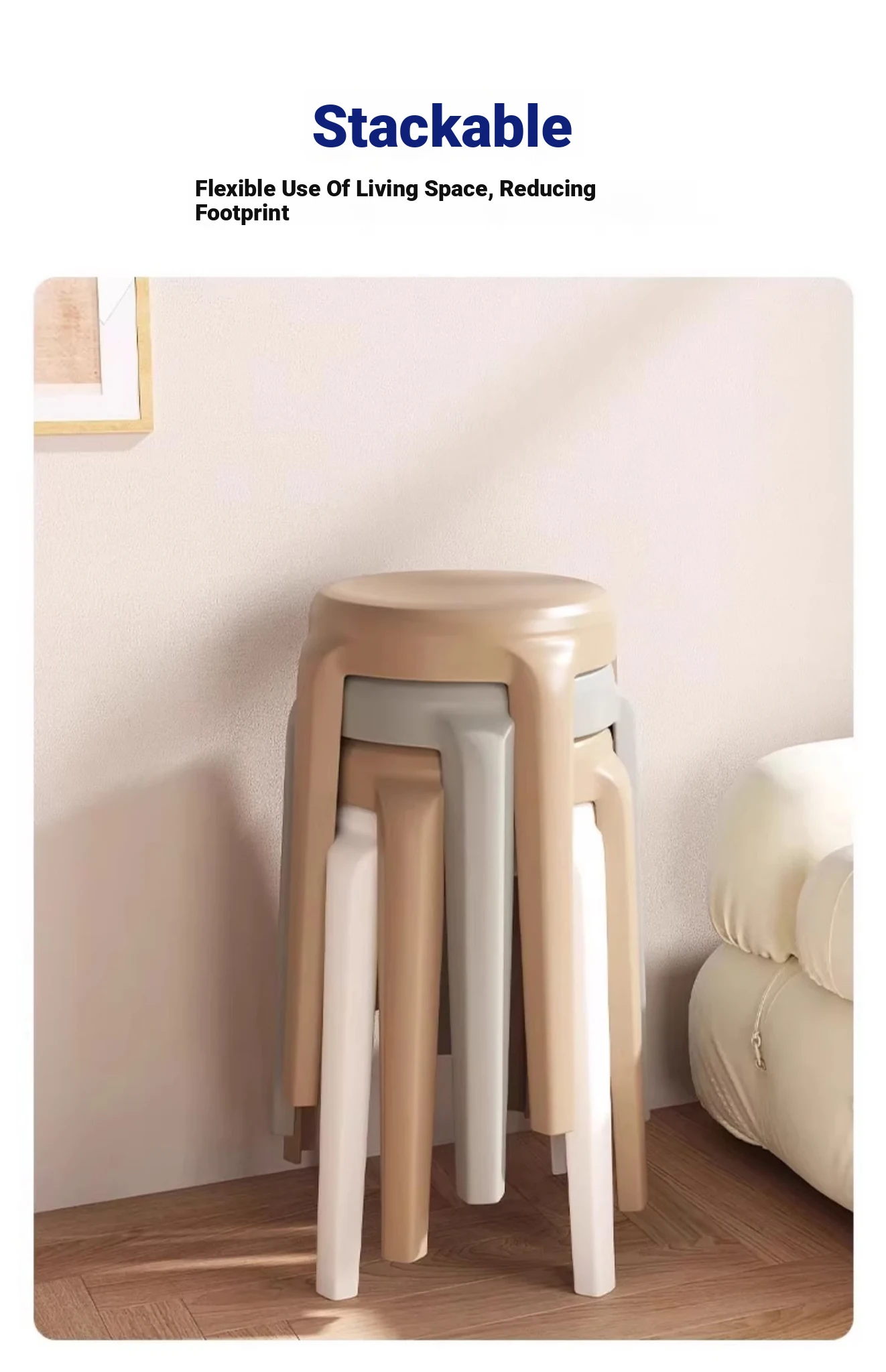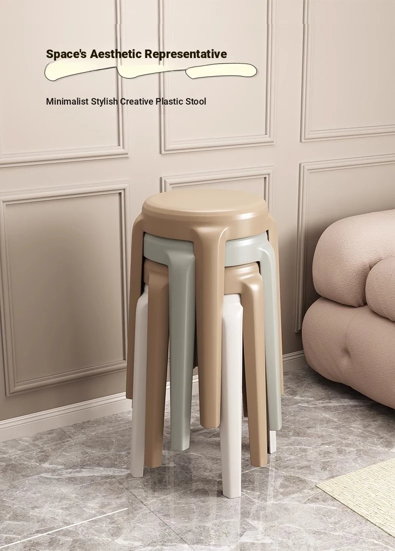 Durable Stackable Plastic Stool - Modern Thick Round Chair for Home Use, Perfect as Extra Seating for Dining Tables or High Stools
