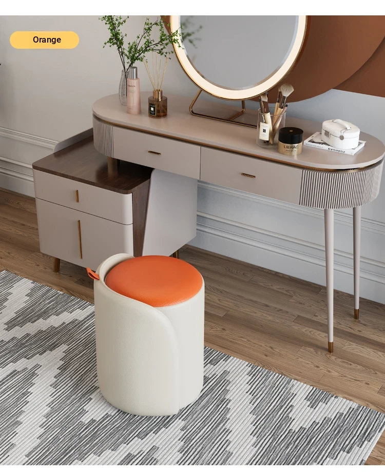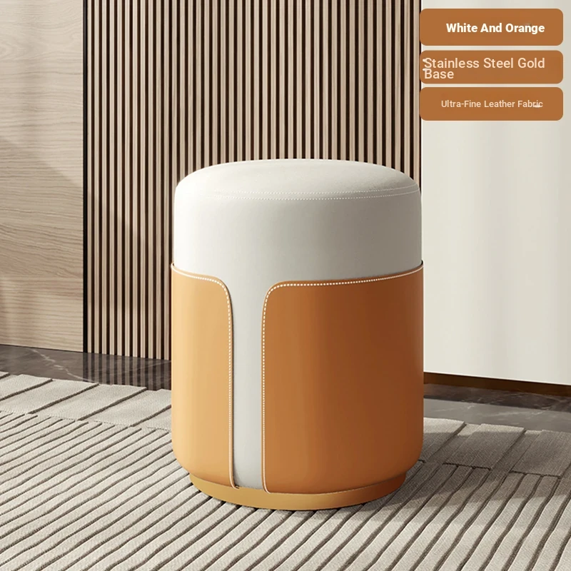 White + Orange [ stainless steel gold base ] Superfibre leather - wooden frame
