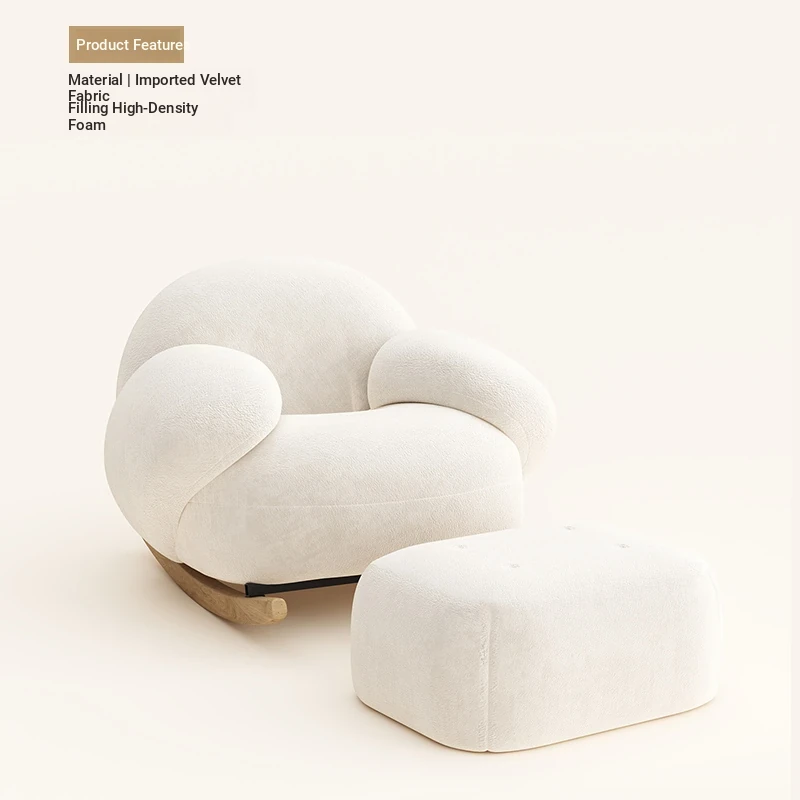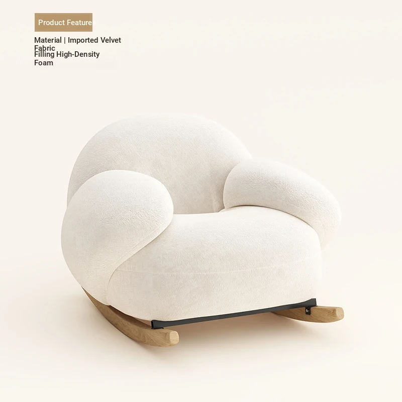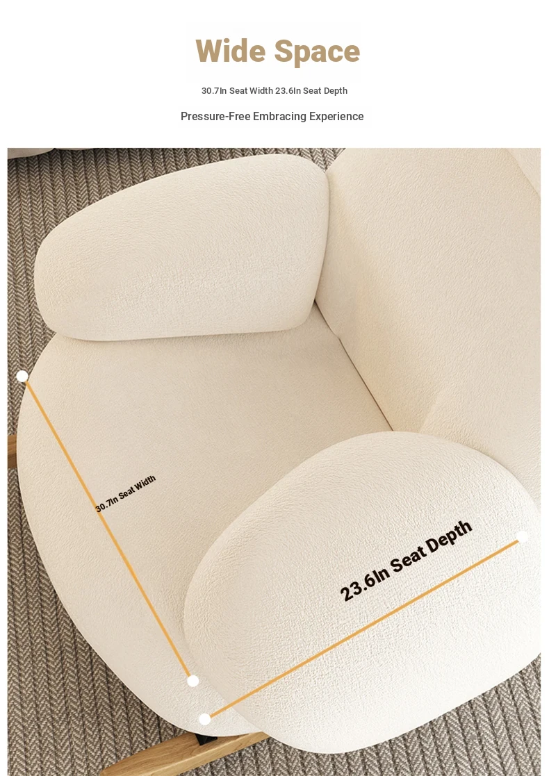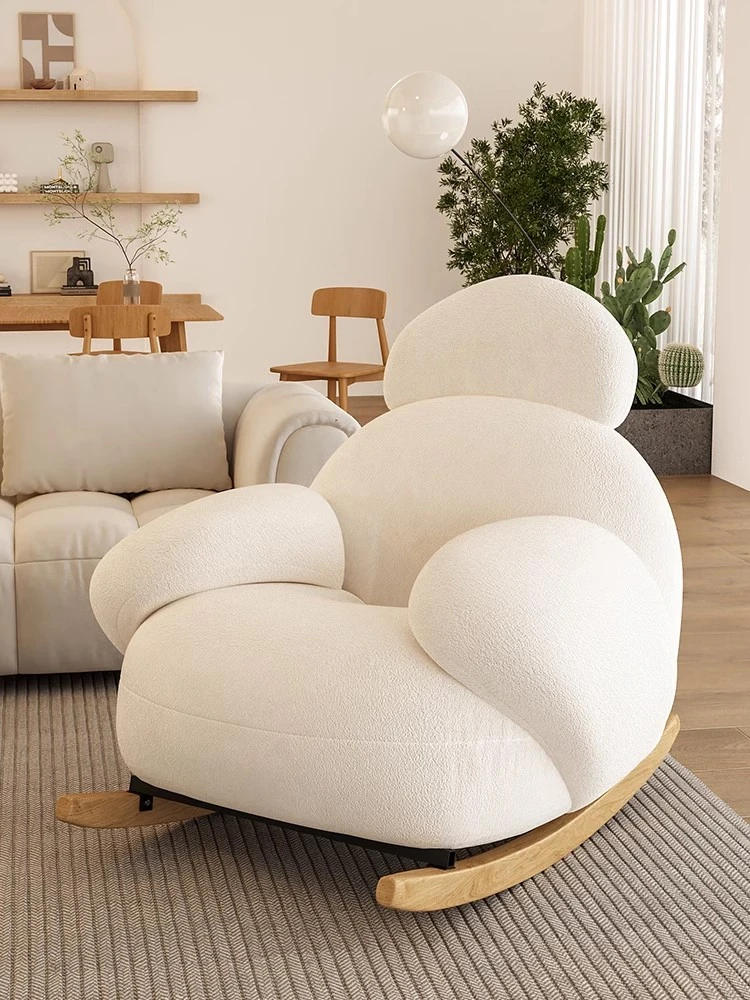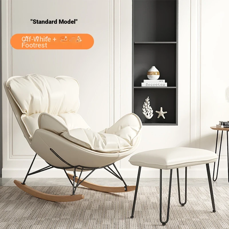 Lazy Sofa Big White Rocking Chair - Comfortable Recliner for Autumn and Winter, Perfect for Bedroom or Balcony, Single Seat Home Leisure Chair