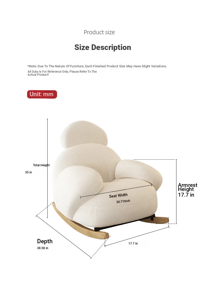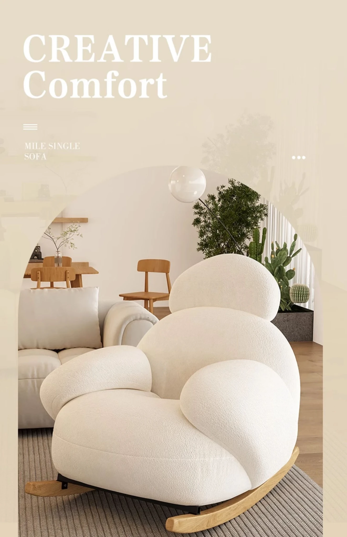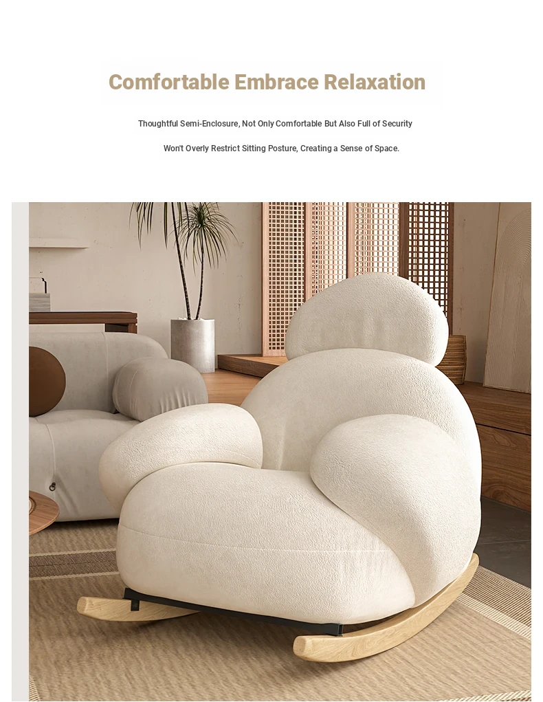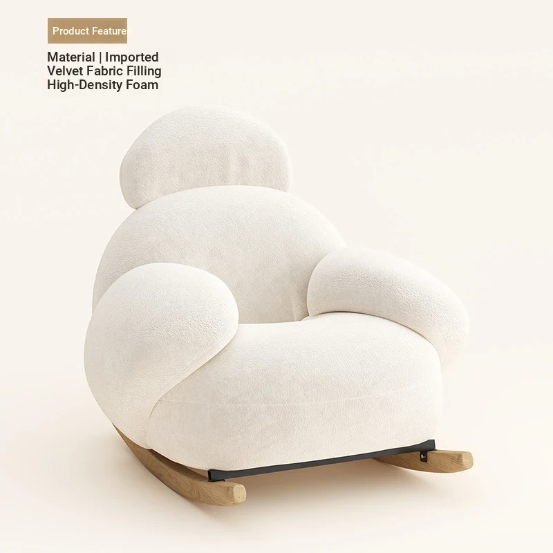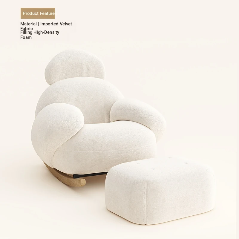 Lazy Sofa Big White Rocking Chair - Comfortable Recliner for Autumn and Winter, Perfect for Bedroom or Balcony, Single Seat Home Leisure Chair
