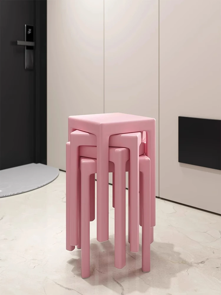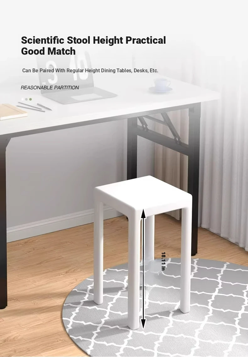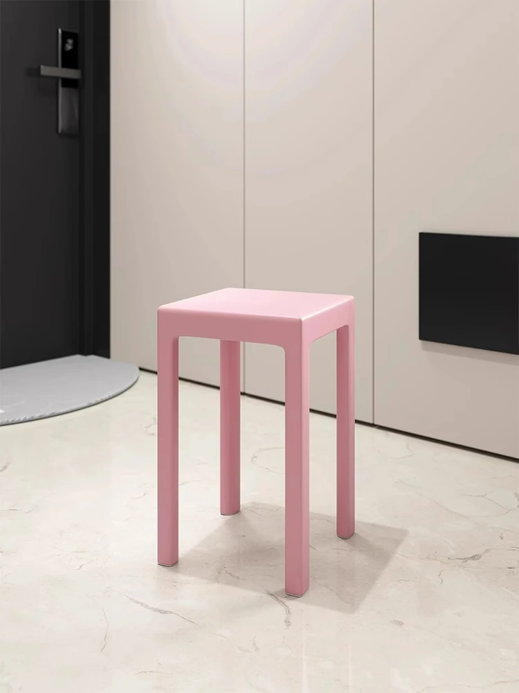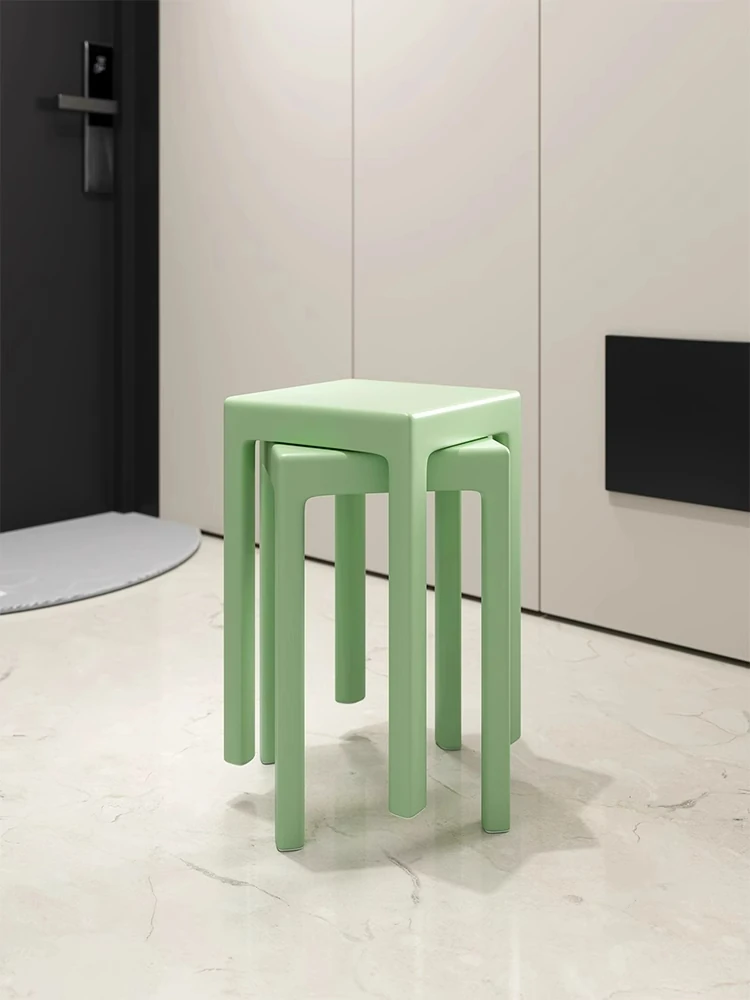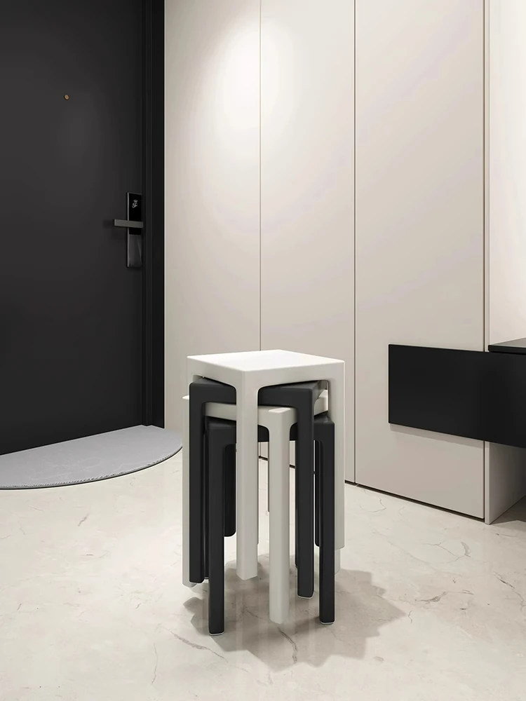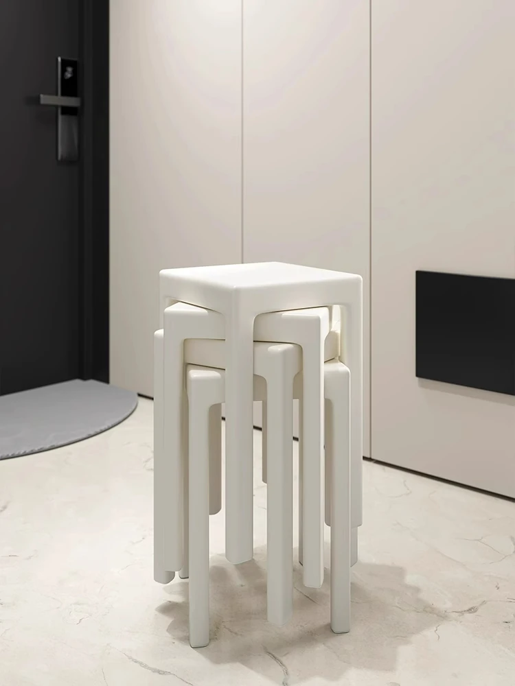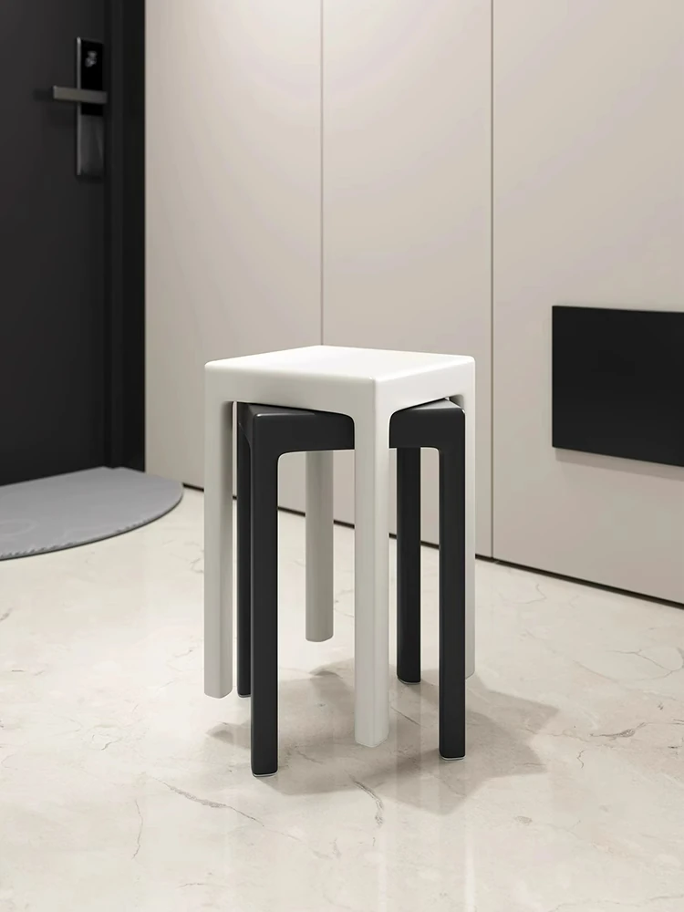 SANDREAM Plastic Stool - Stackable, Modern Minimalist Square Bench for Dining Table, Versatile Home Use with a Touch of Luxe Elegance