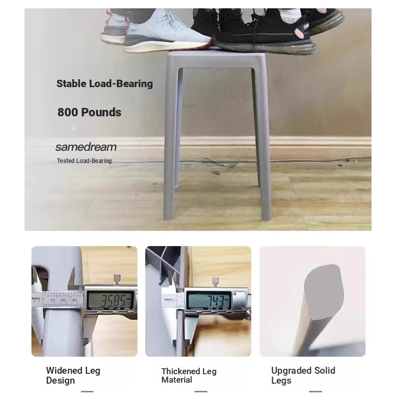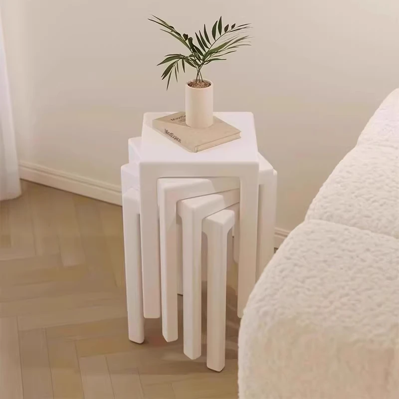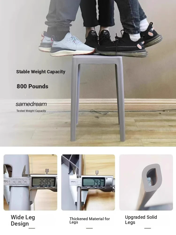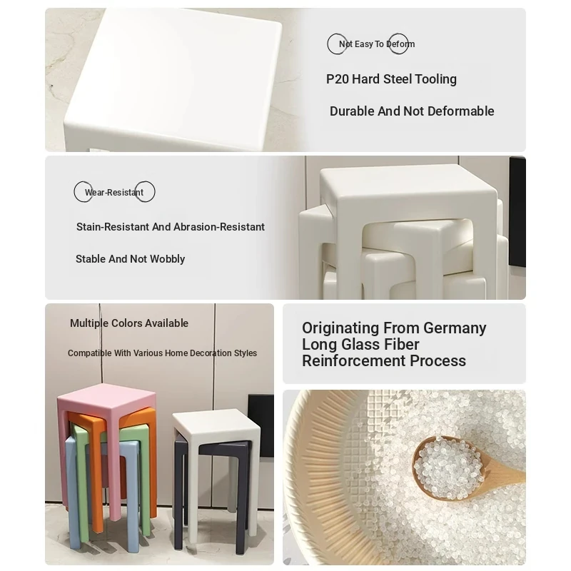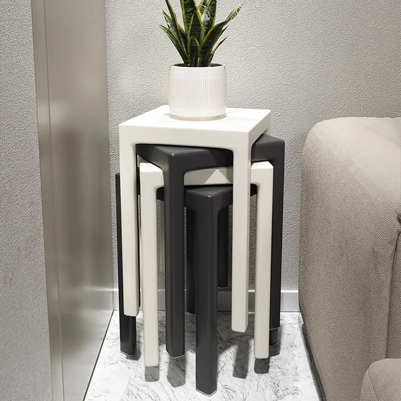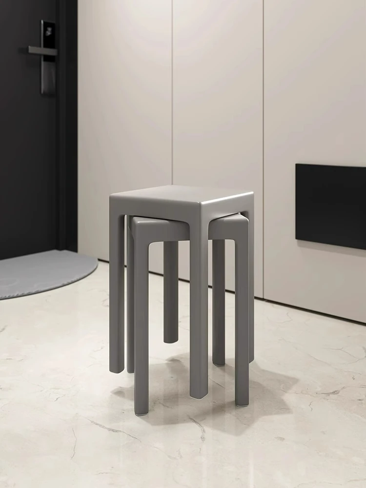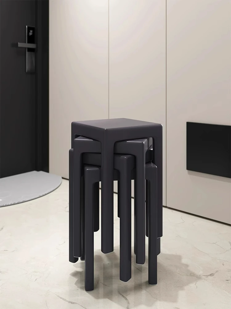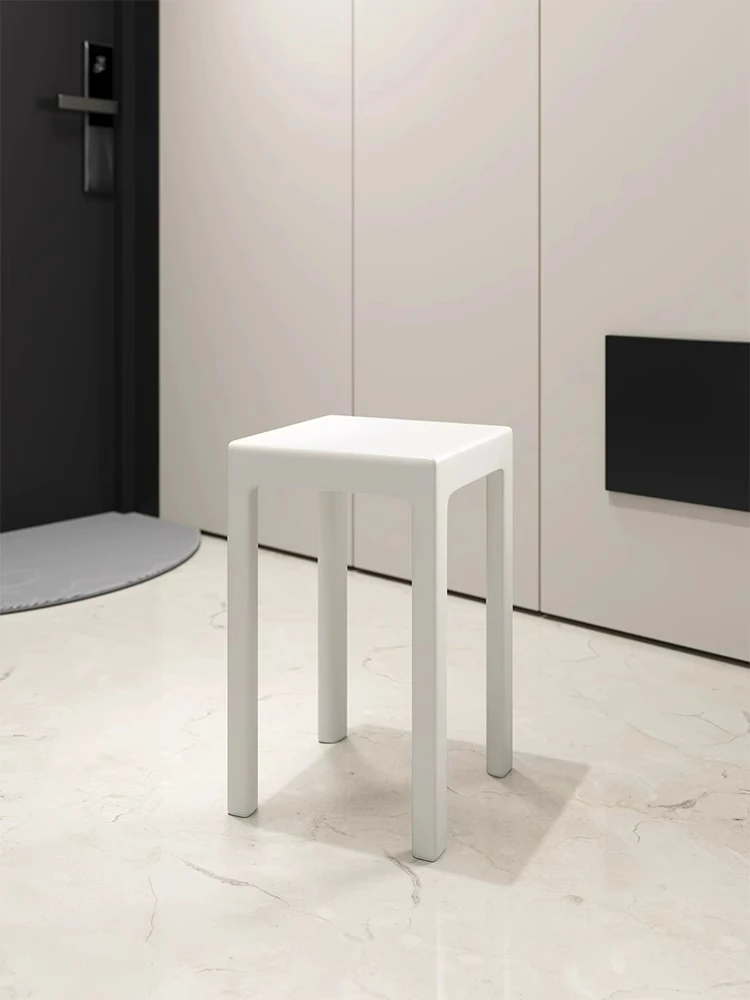 SANDREAM Plastic Stool - Stackable, Modern Minimalist Square Bench for Dining Table, Versatile Home Use with a Touch of Luxe Elegance