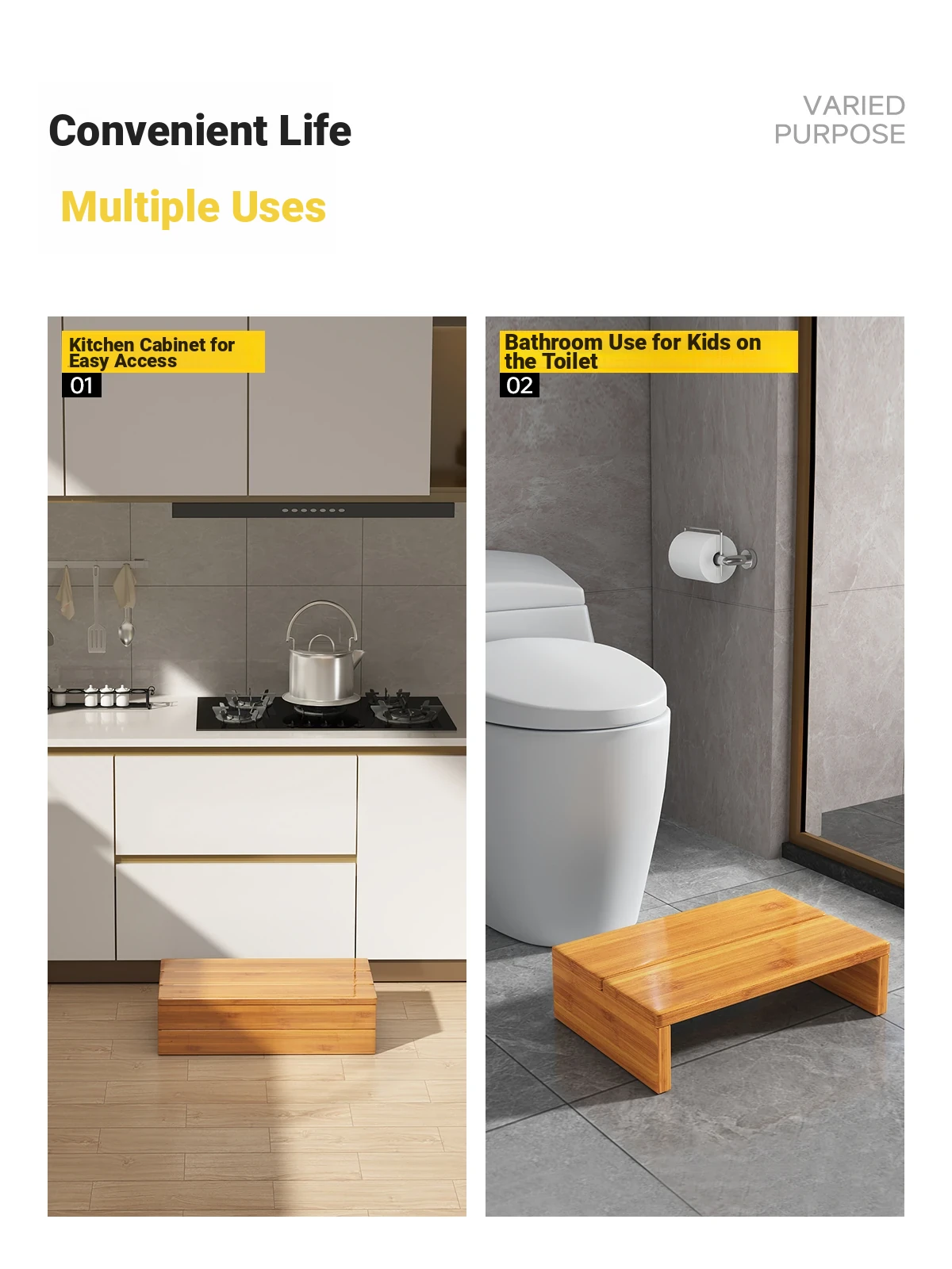 Sangmeng Bamboo Step Stool - Elevate Your Kitchen & Laundry Experience with this Sturdy, Stylish Step Platform for Easy Access and Safe Stability. Perfect for Reaching High Areas!