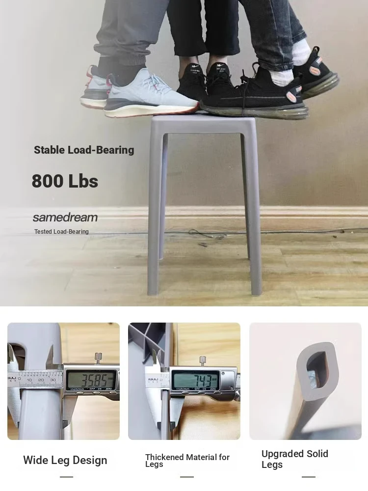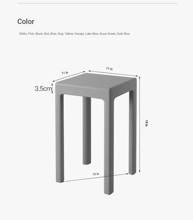 Sanmeng Durable Plastic Stool - Thick, Stackable Square Bench for Home Use, Ideal for Dining Tables and Restaurants, Simple and Sturdy Round Chair