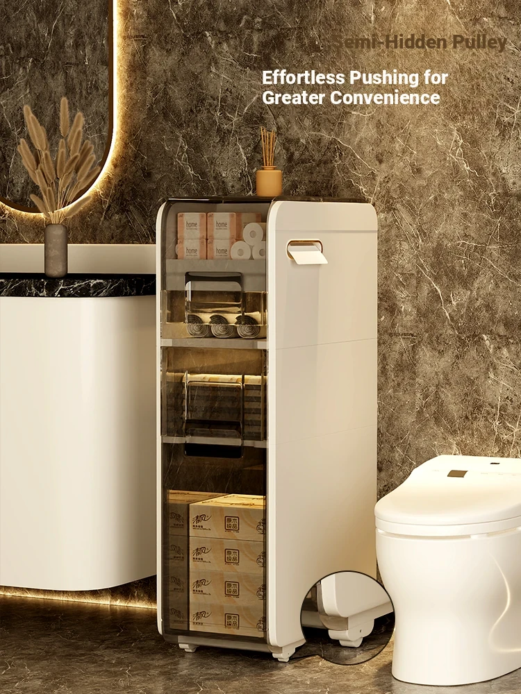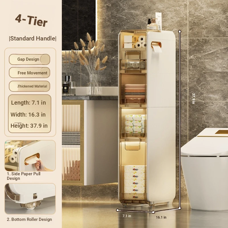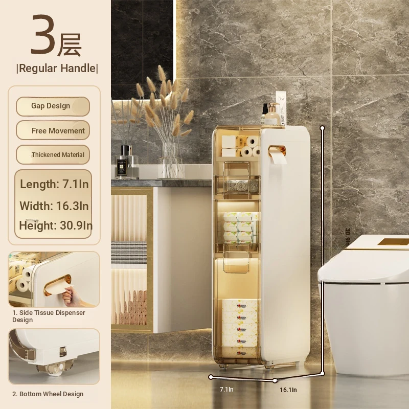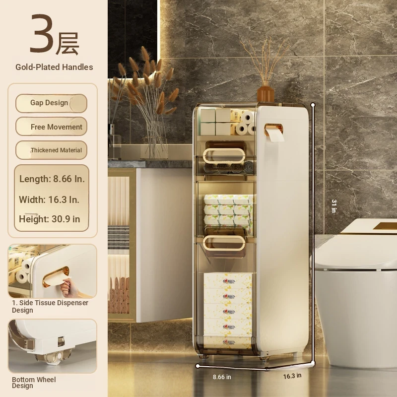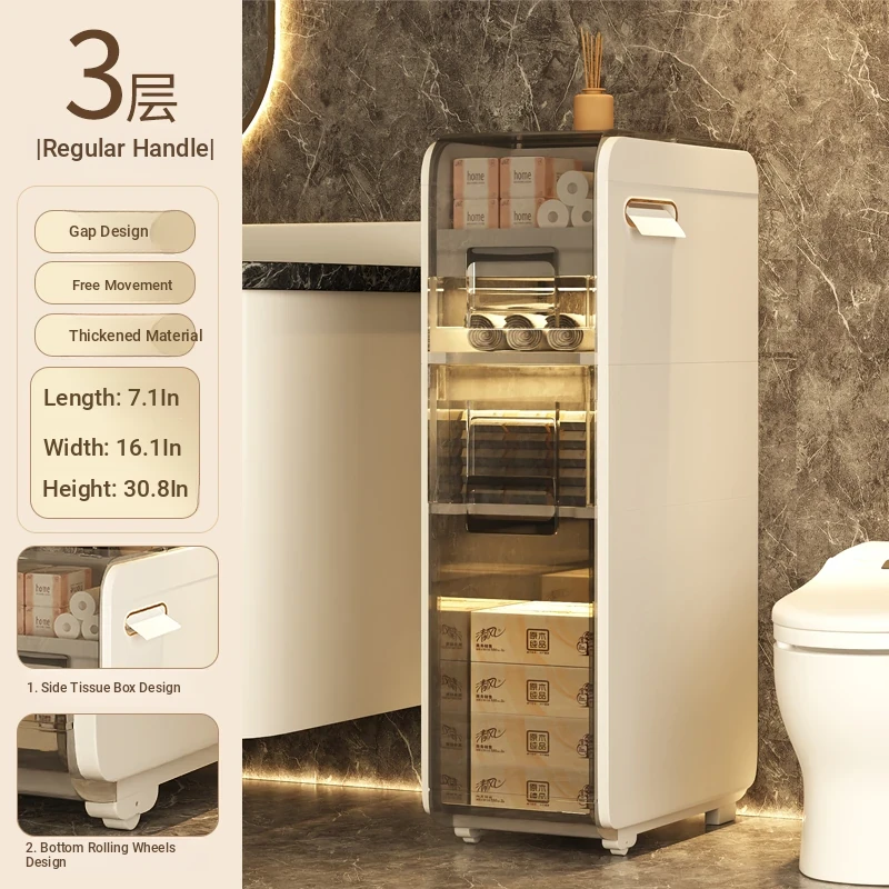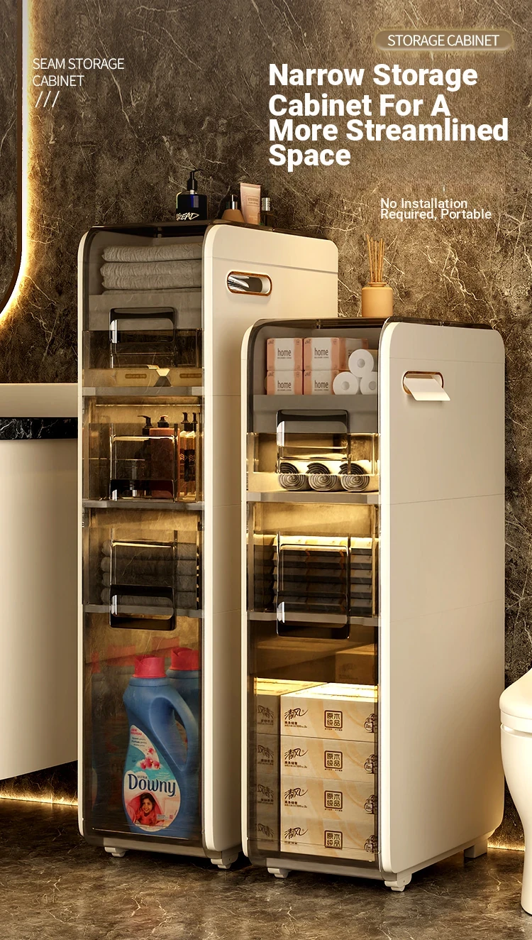 Sleek Luxury Bathroom Narrow Storage Cabinet - No Installation Required, Space-Saving Organizer for Toilets and Bathrooms, Free-Standing Design for Efficient Storage Solutions