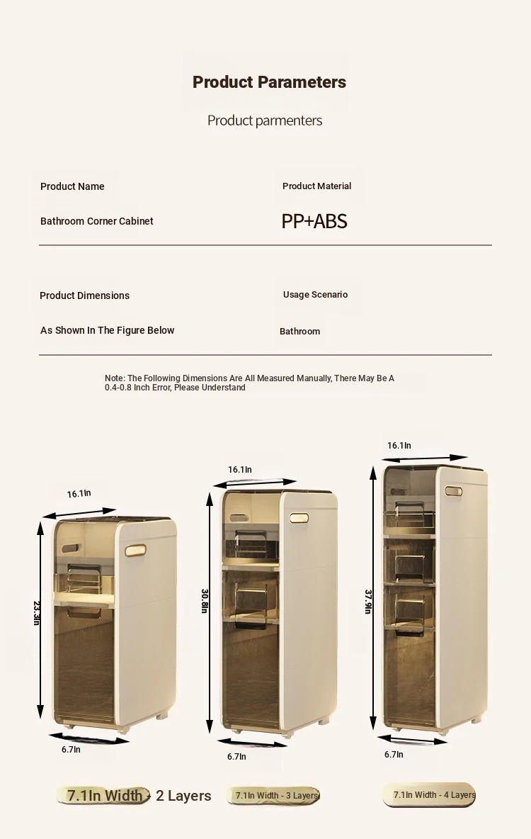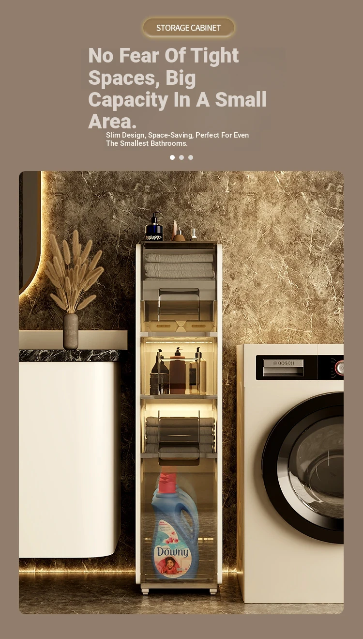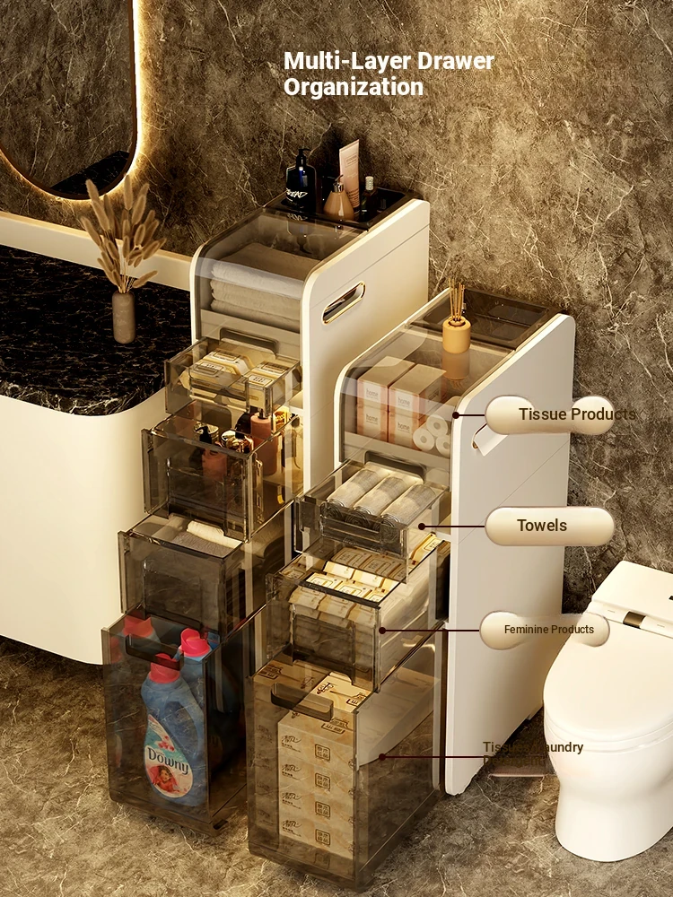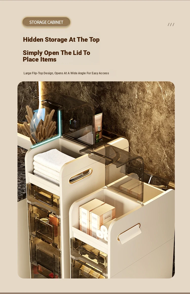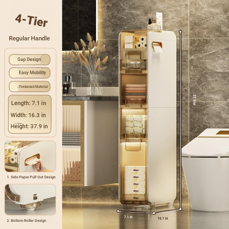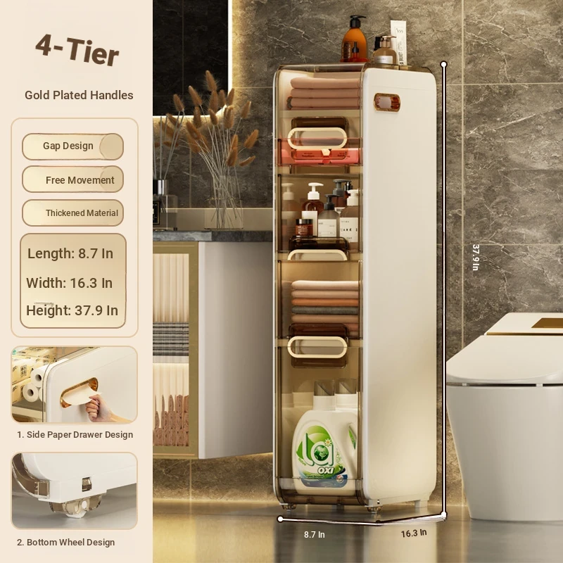 Sleek Luxury Bathroom Narrow Storage Cabinet - No Installation Required, Space-Saving Organizer for Toilets and Bathrooms, Free-Standing Design for Efficient Storage Solutions