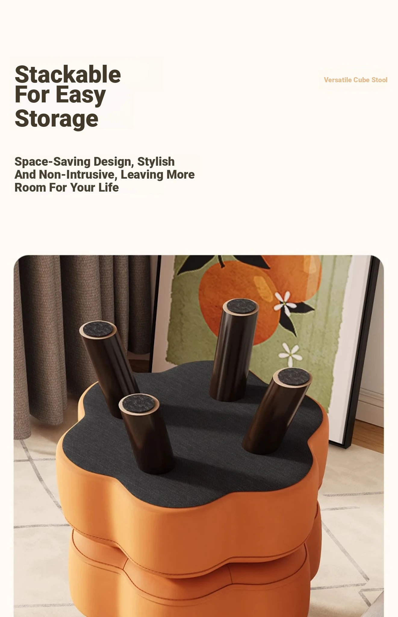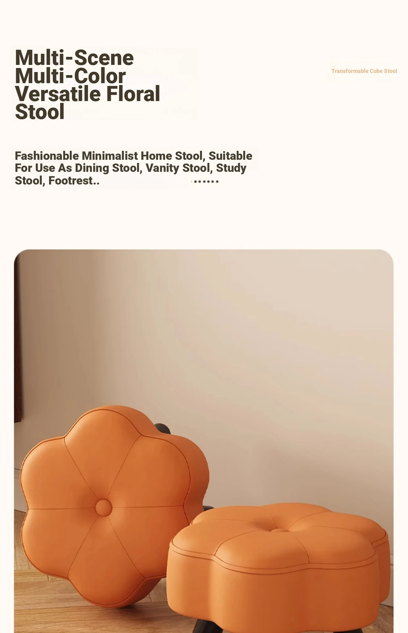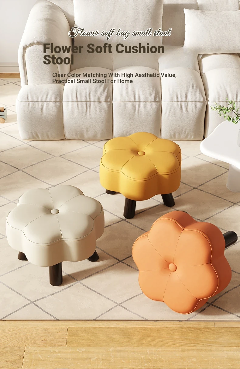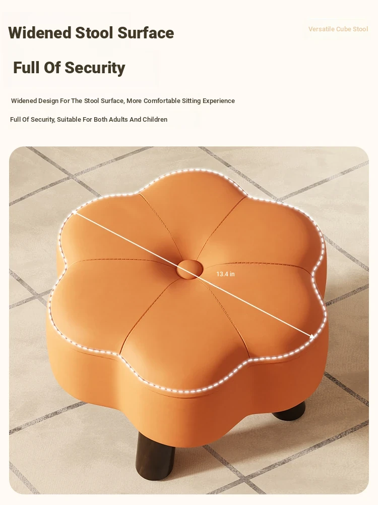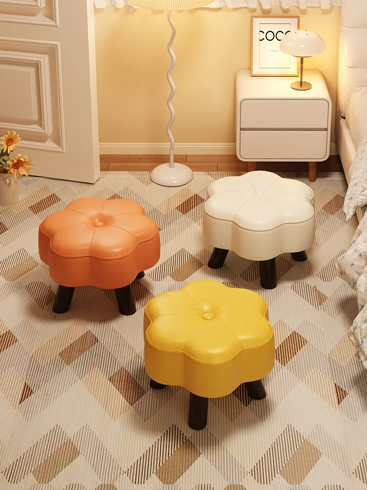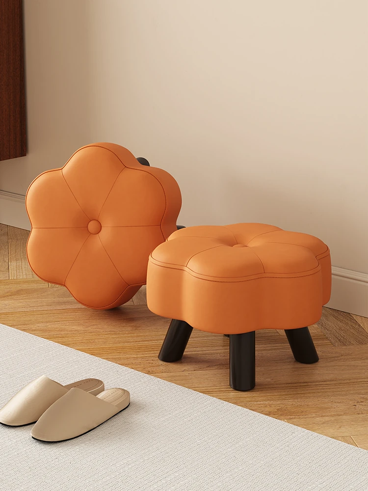 Orange flower stool [solid wood frame Abrasion Resistant cat claw leather]]