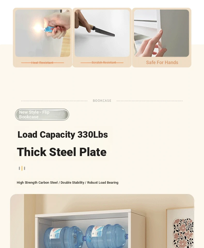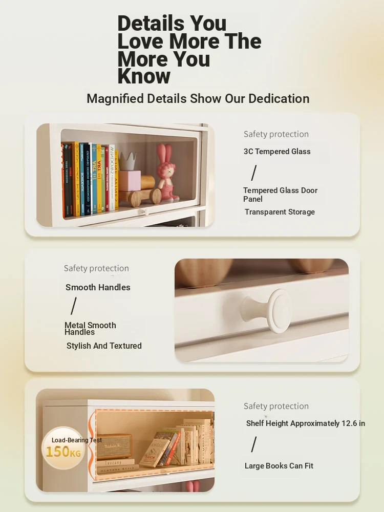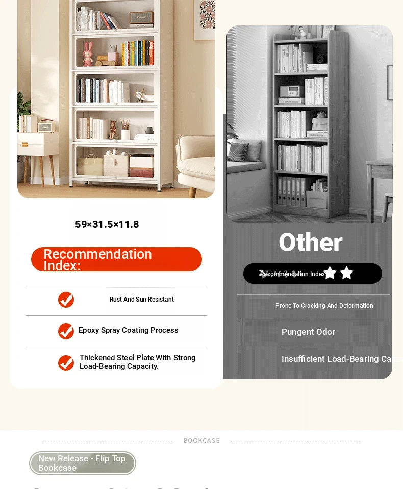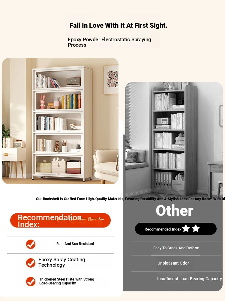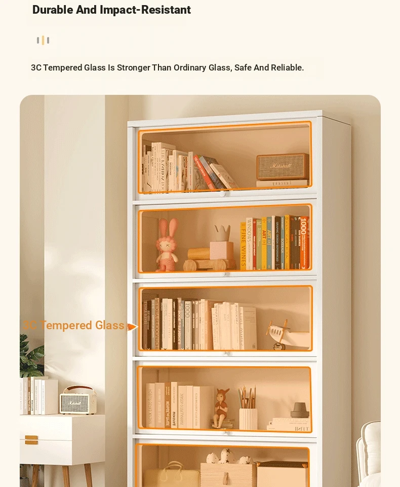 "Stylish Steel Bookshelf with Doors – Multi-Layer Storage Cabinet for Home, Kids' Room, or Living Room – Dust-Proof and Functional Organizer"