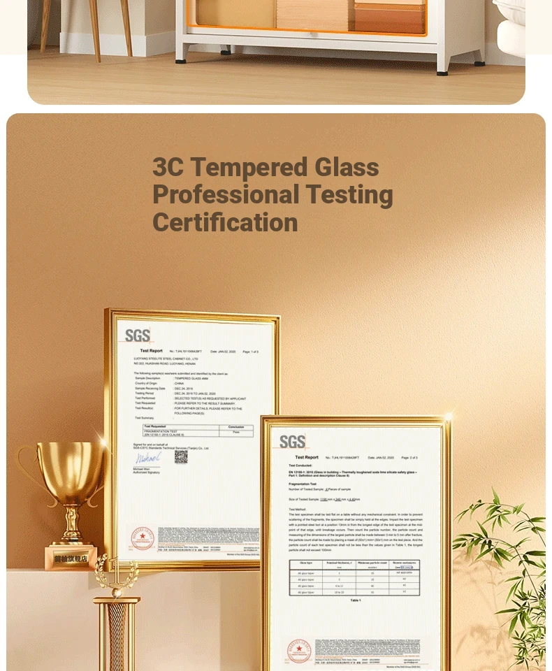【白色】2门3层宽23.62in-|加厚碳钢3C玻璃|
