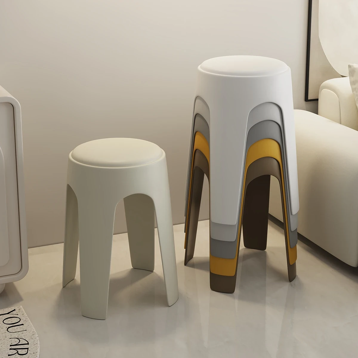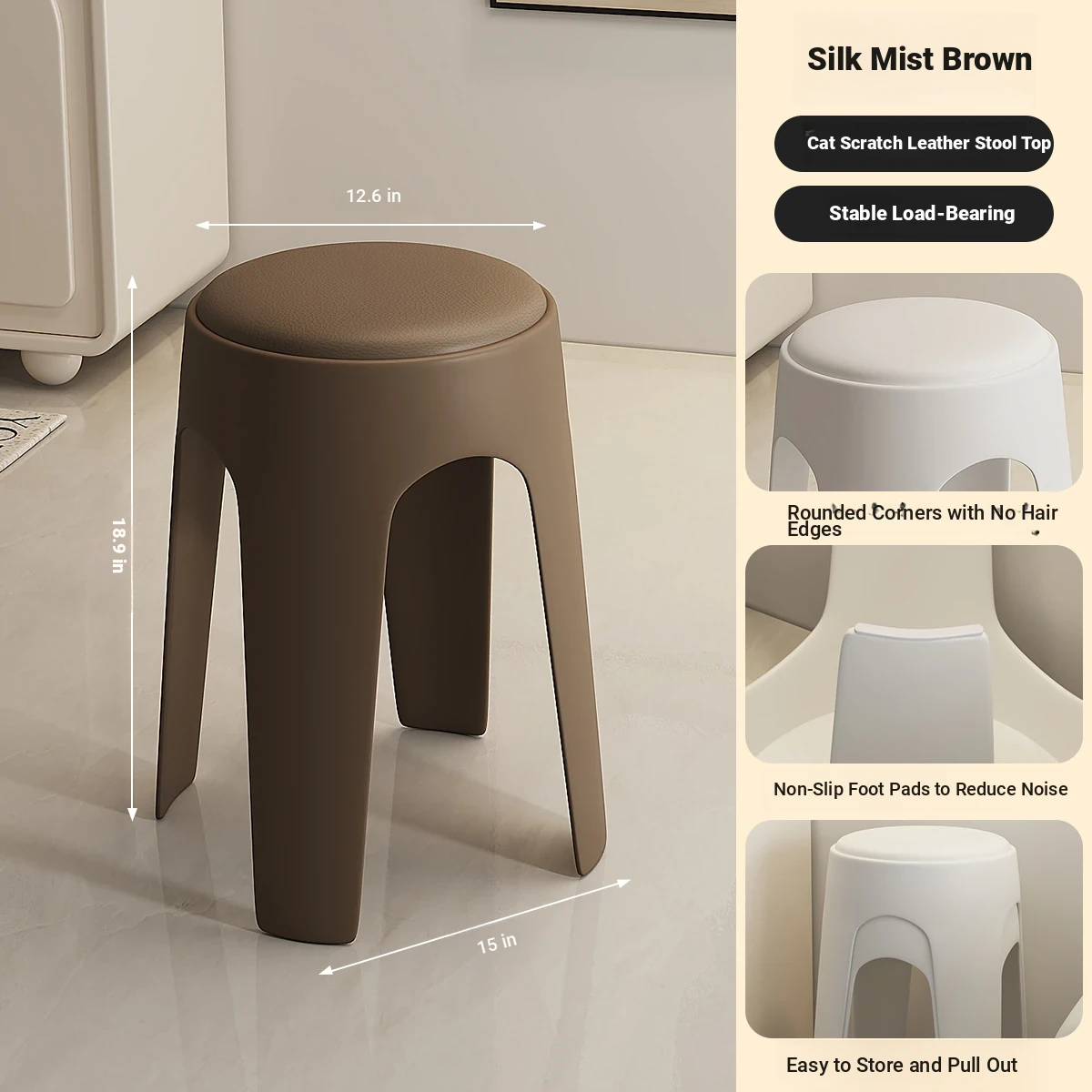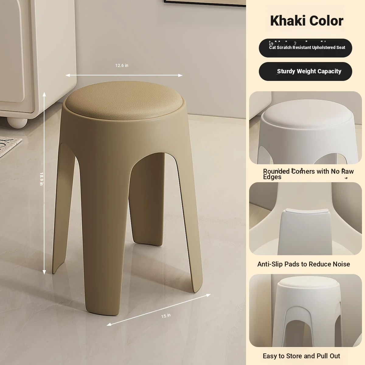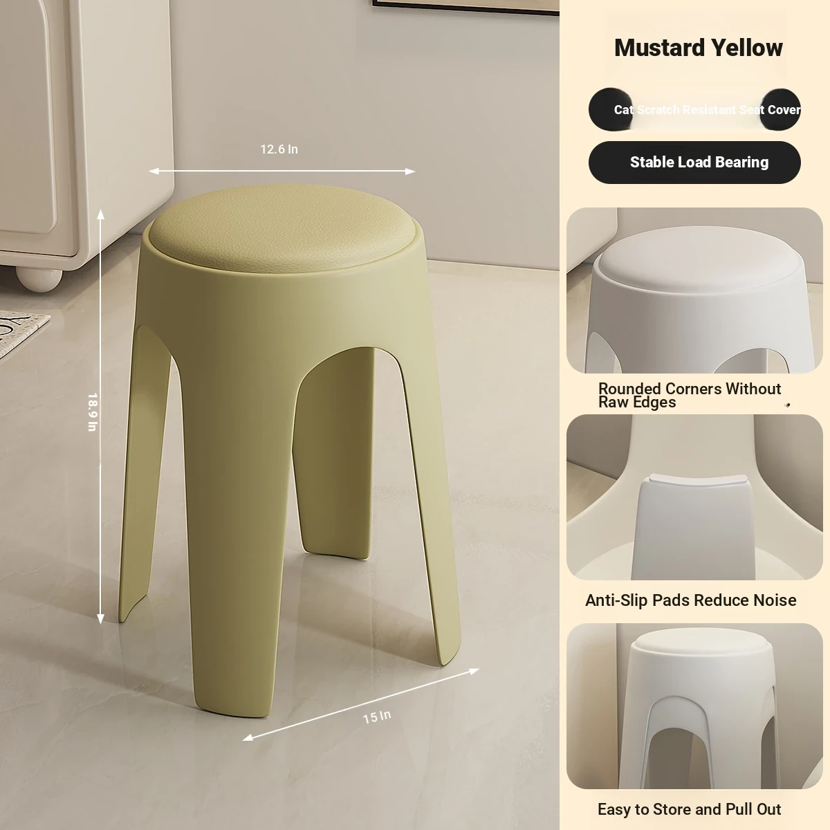 Thickened Plastic Stool for Home Use - Stackable, Soft-Padded Round Seat, Elegant and Durable Dining Chair for a Touch of Luxury