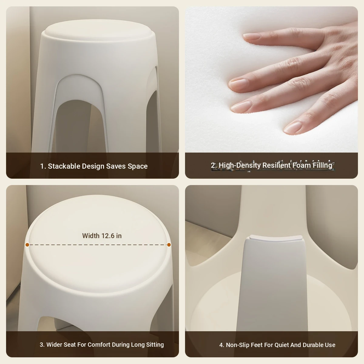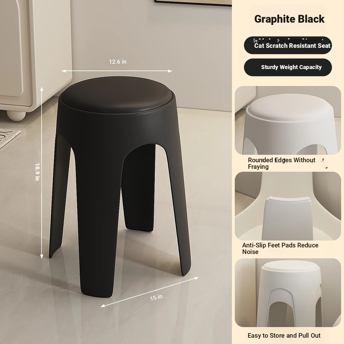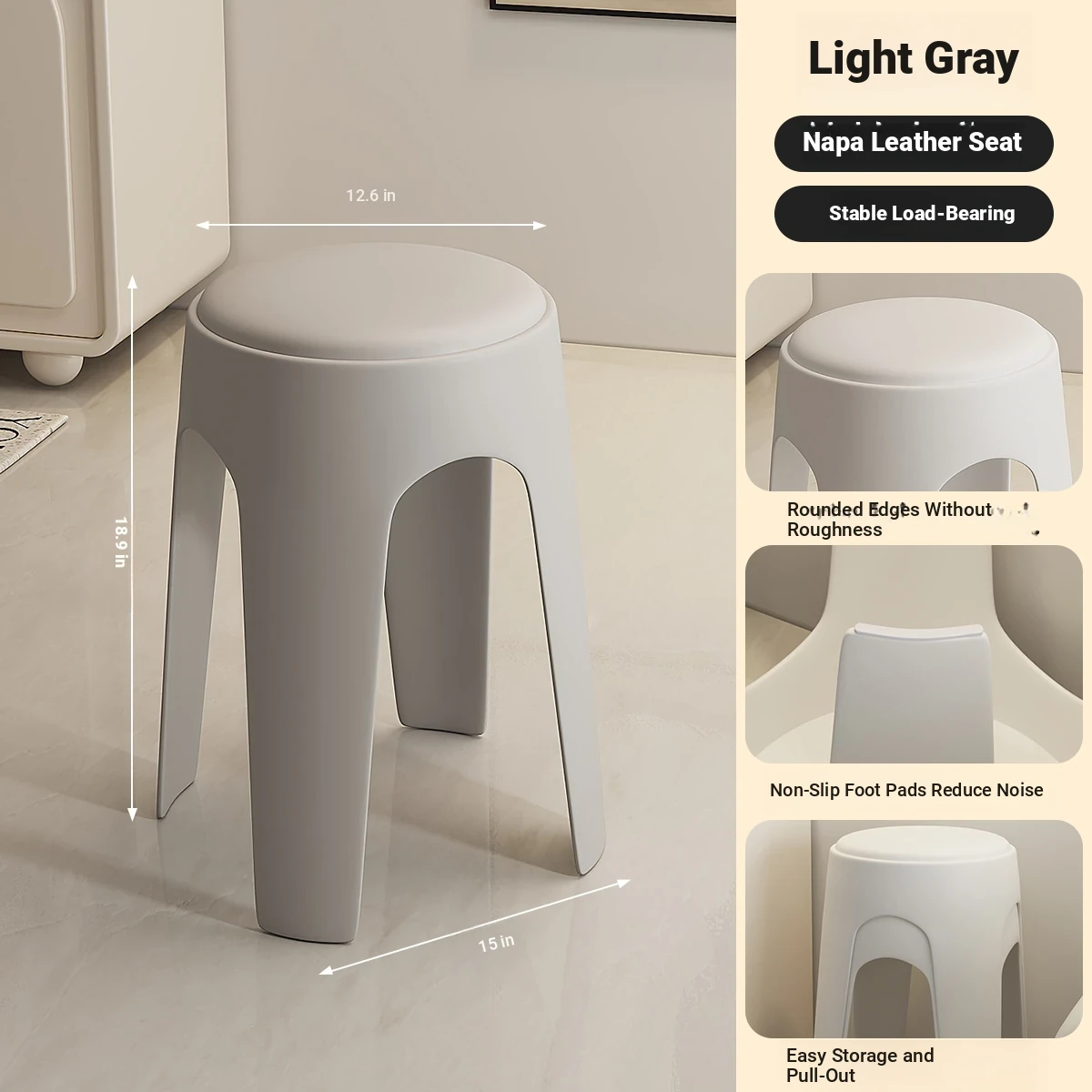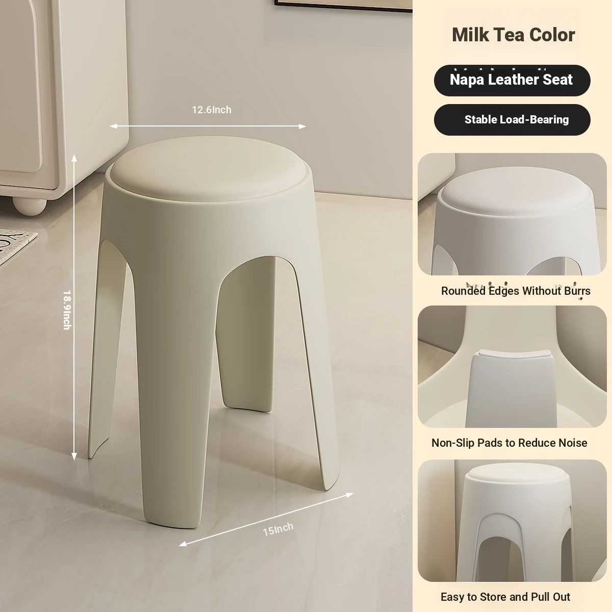 Thickened Plastic Stool for Home Use - Stackable, Soft-Padded Round Seat, Elegant and Durable Dining Chair for a Touch of Luxury
