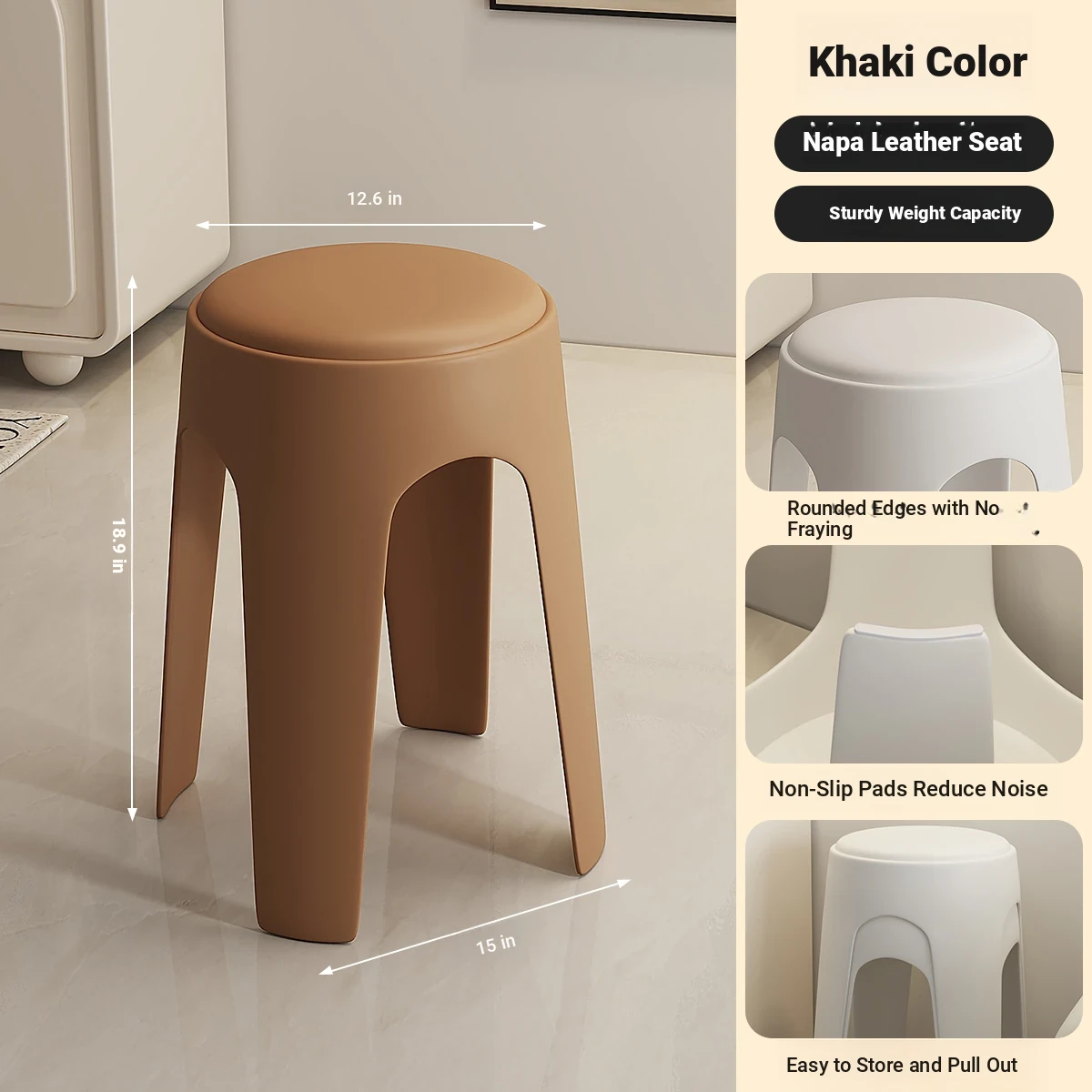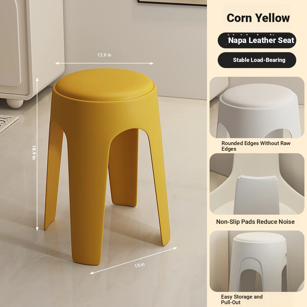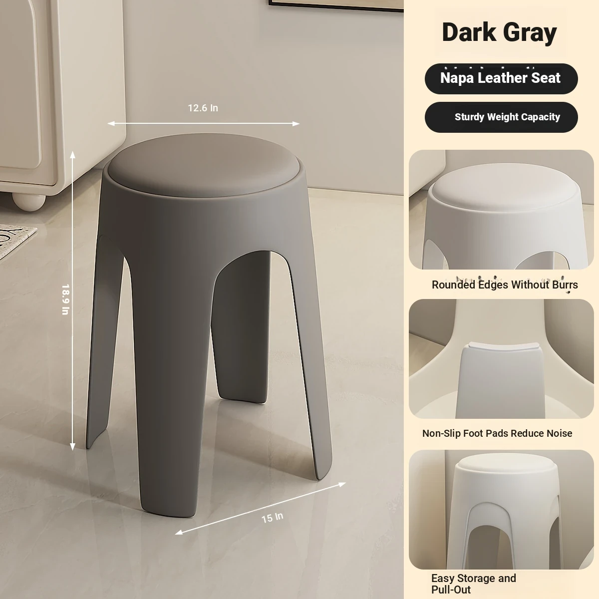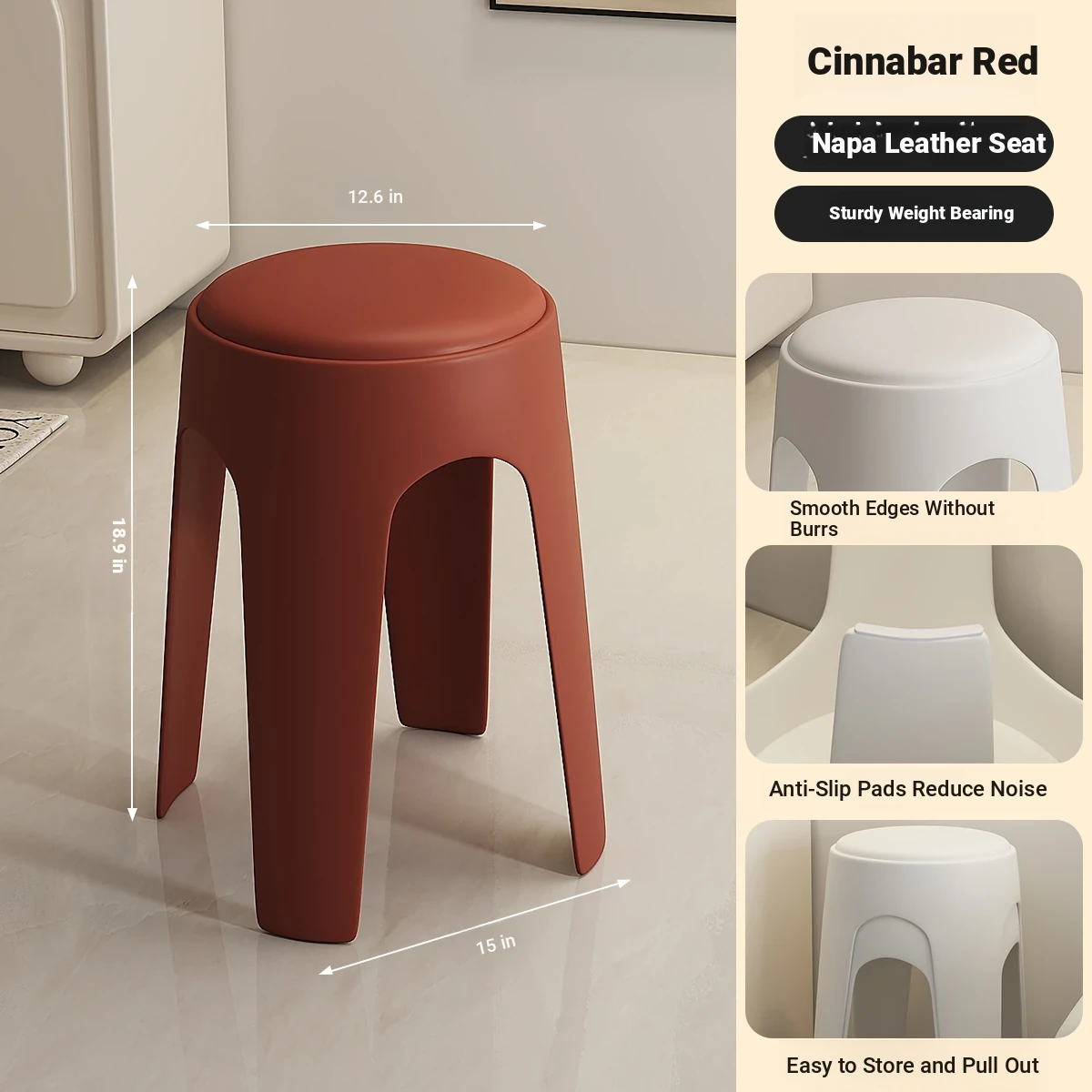 Thickened Plastic Stool for Home Use - Stackable, Soft-Padded Round Seat, Elegant and Durable Dining Chair for a Touch of Luxury