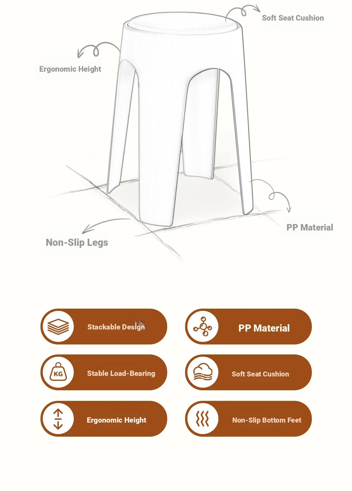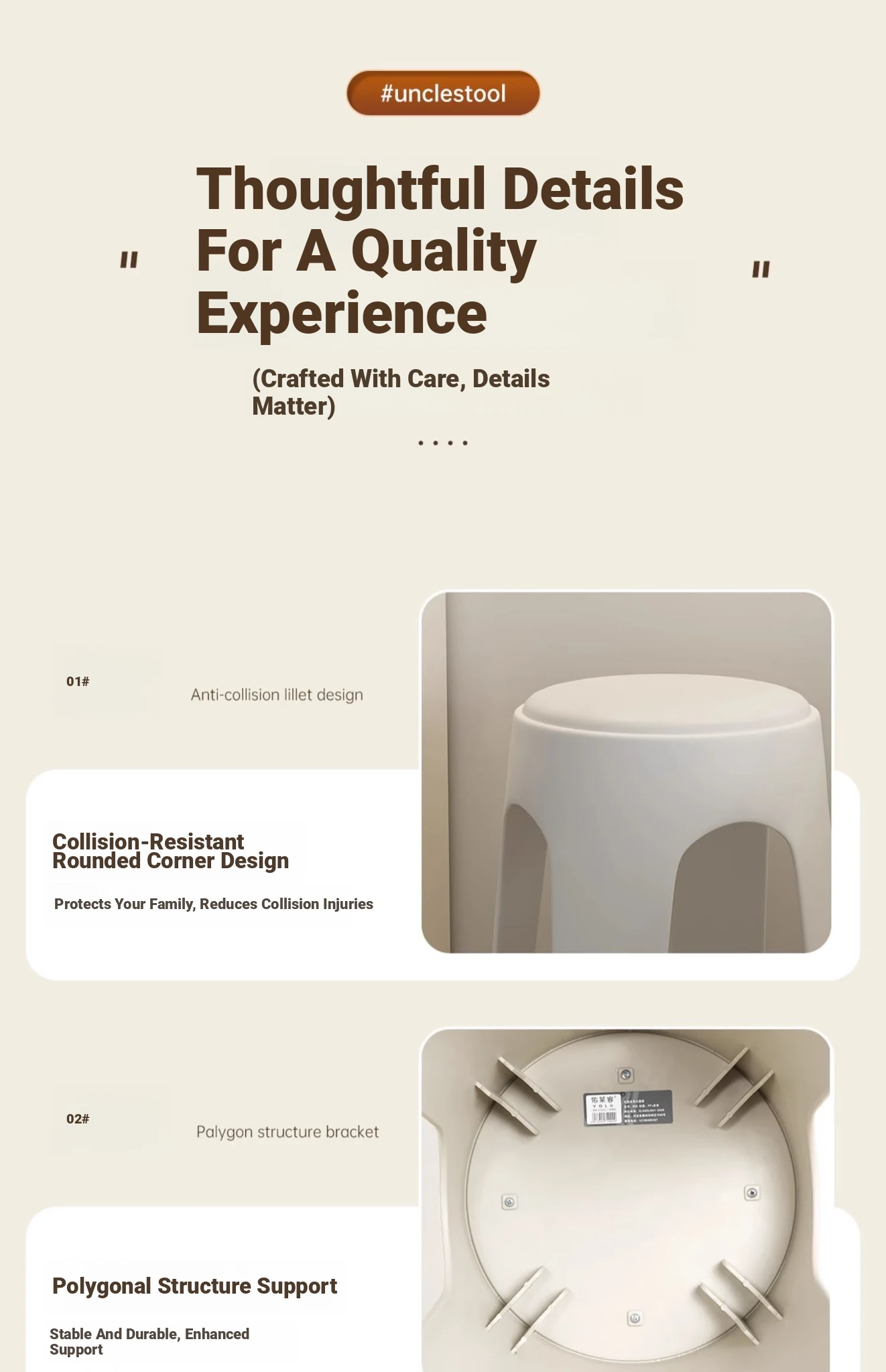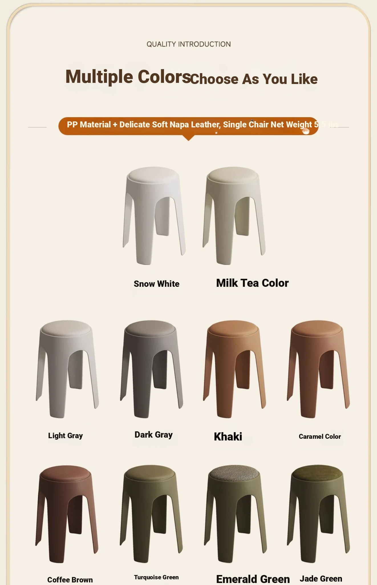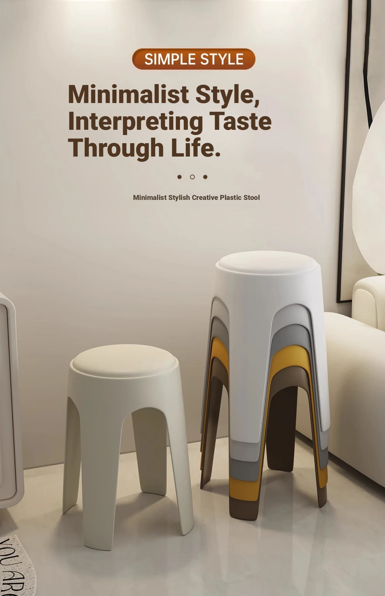 Thickened Plastic Stool for Home Use - Stackable, Soft-Padded Round Seat, Elegant and Durable Dining Chair for a Touch of Luxury