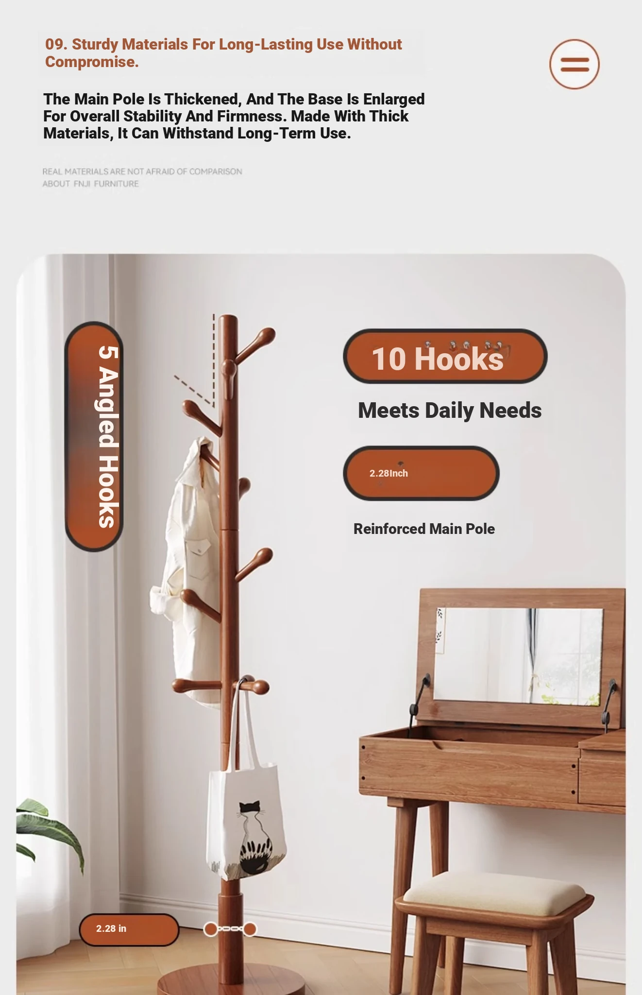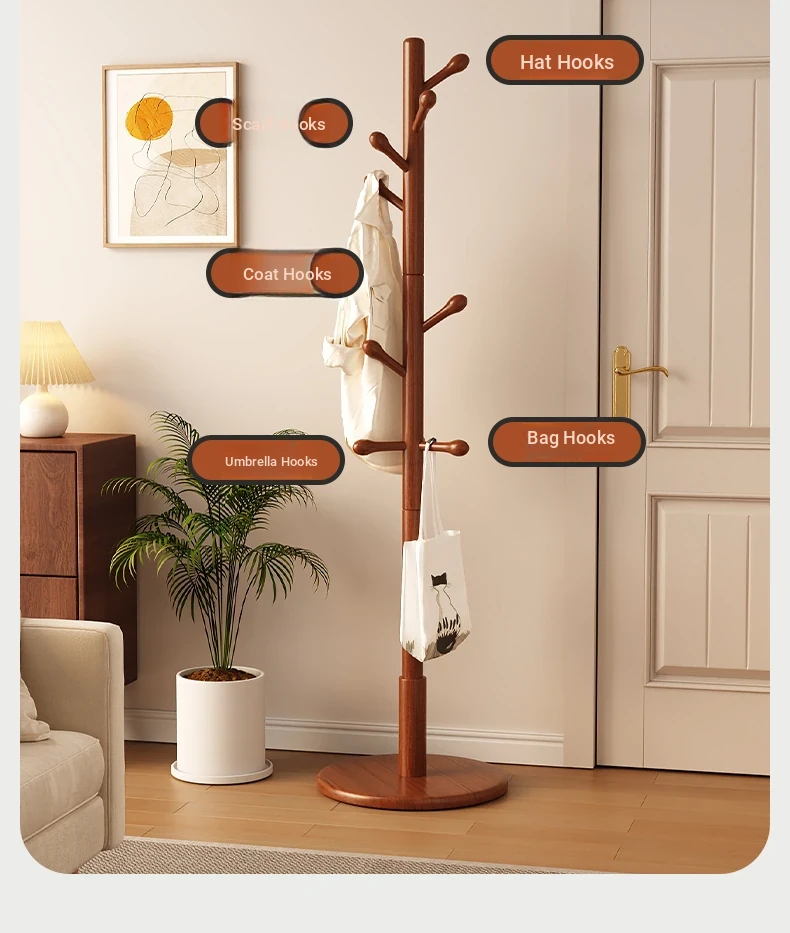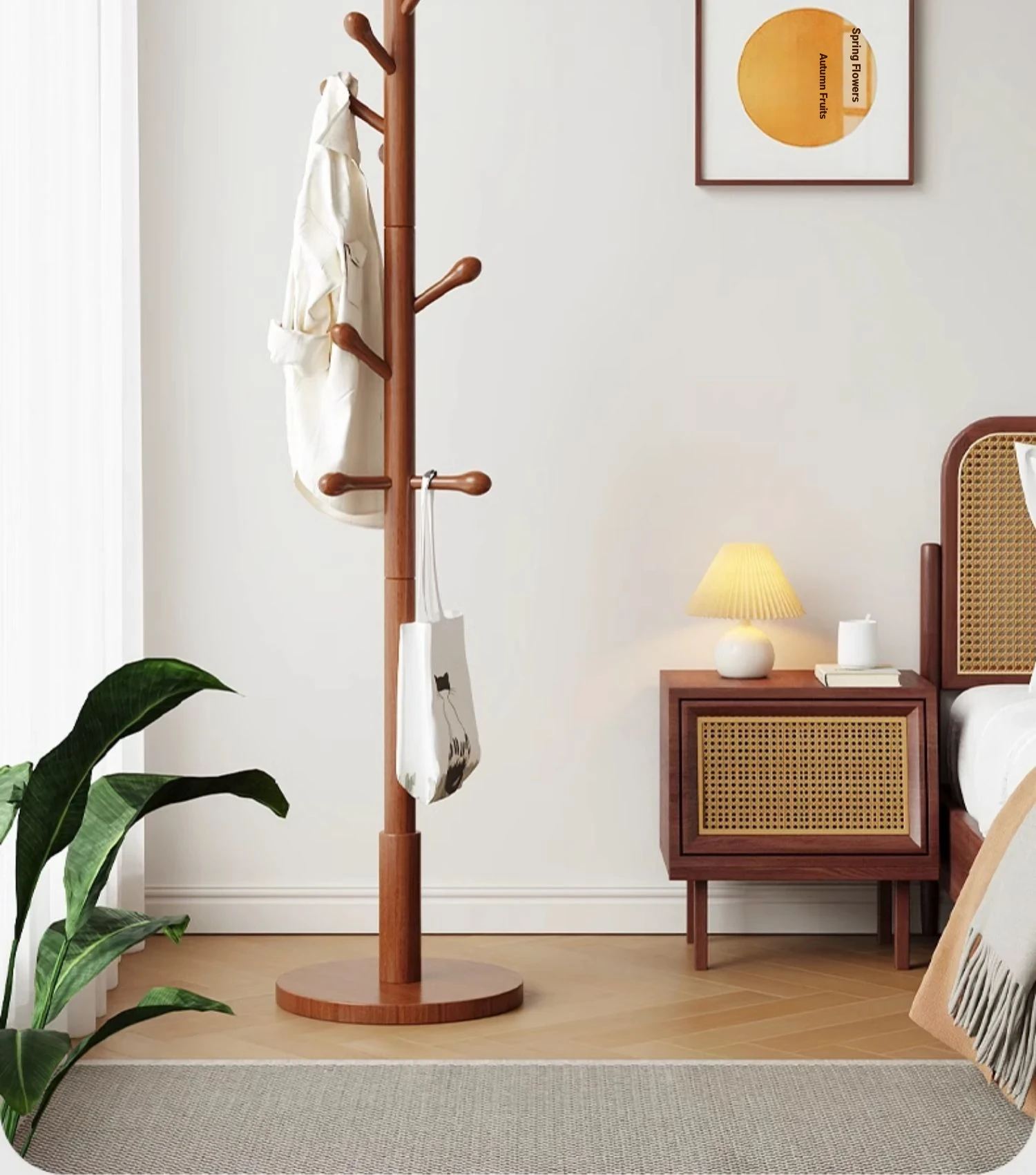 "Three Dream Solid Wood Clothing Rack - Stylish and Functional Freestanding Coat Hanger for Home, Easy to Assemble Beech Wood Garment Rack and Indoor Bag Stand"