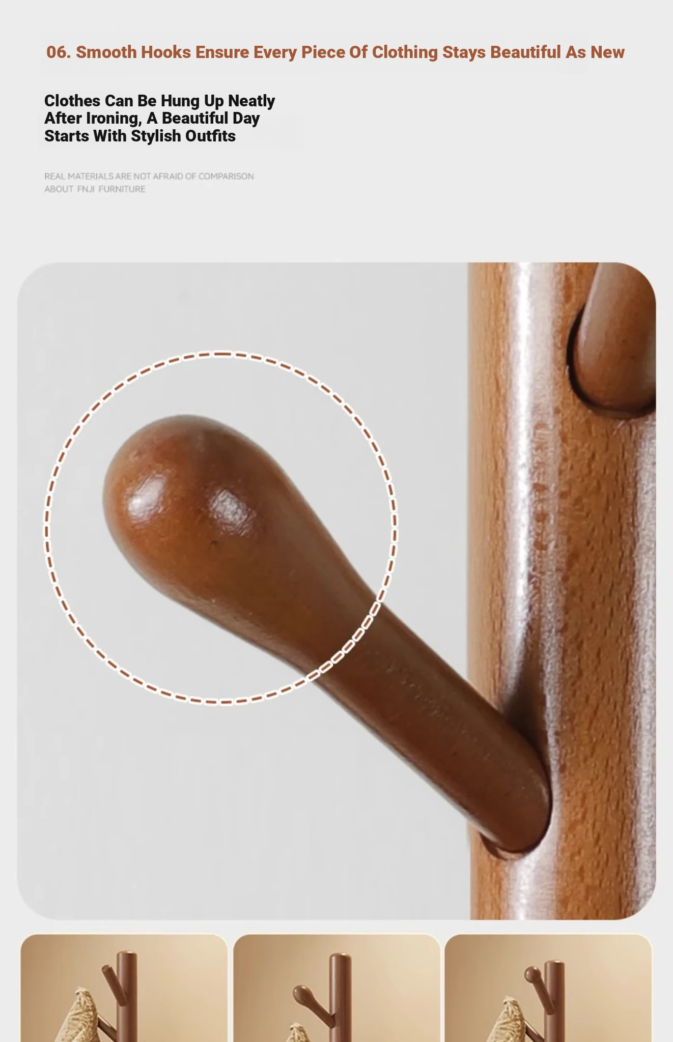 [German Import full beech-upgrade bold 2.28in] walnut color three legs (water droplets scattered 10 hooks)