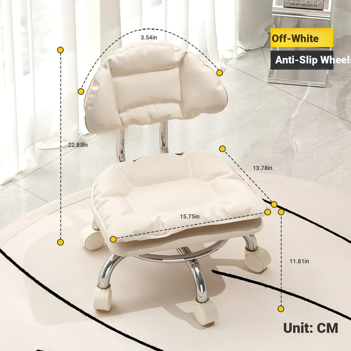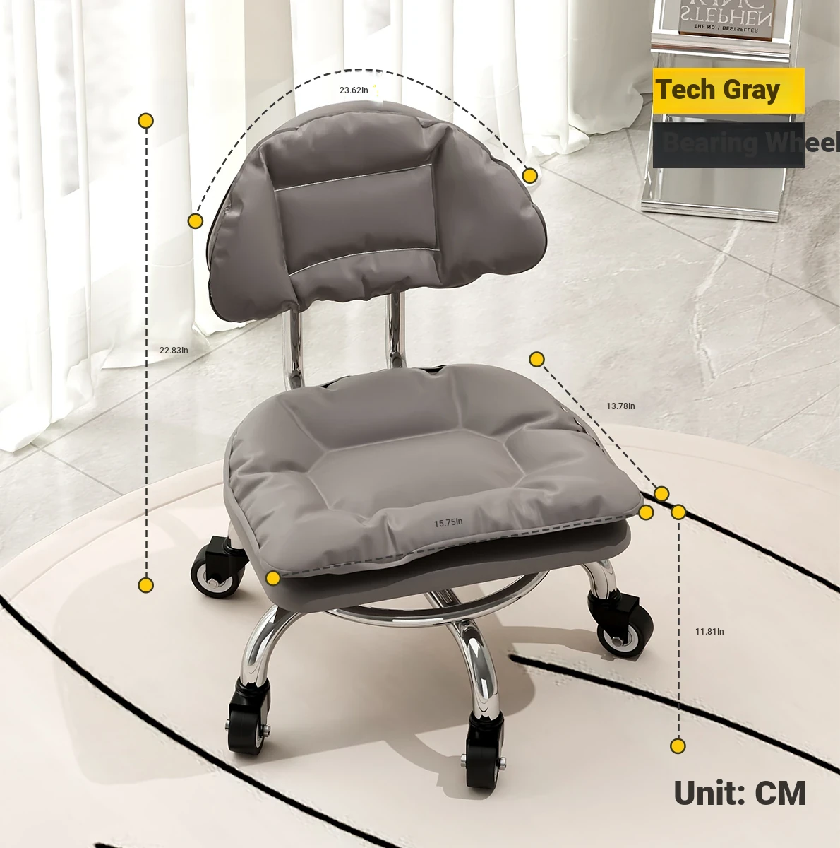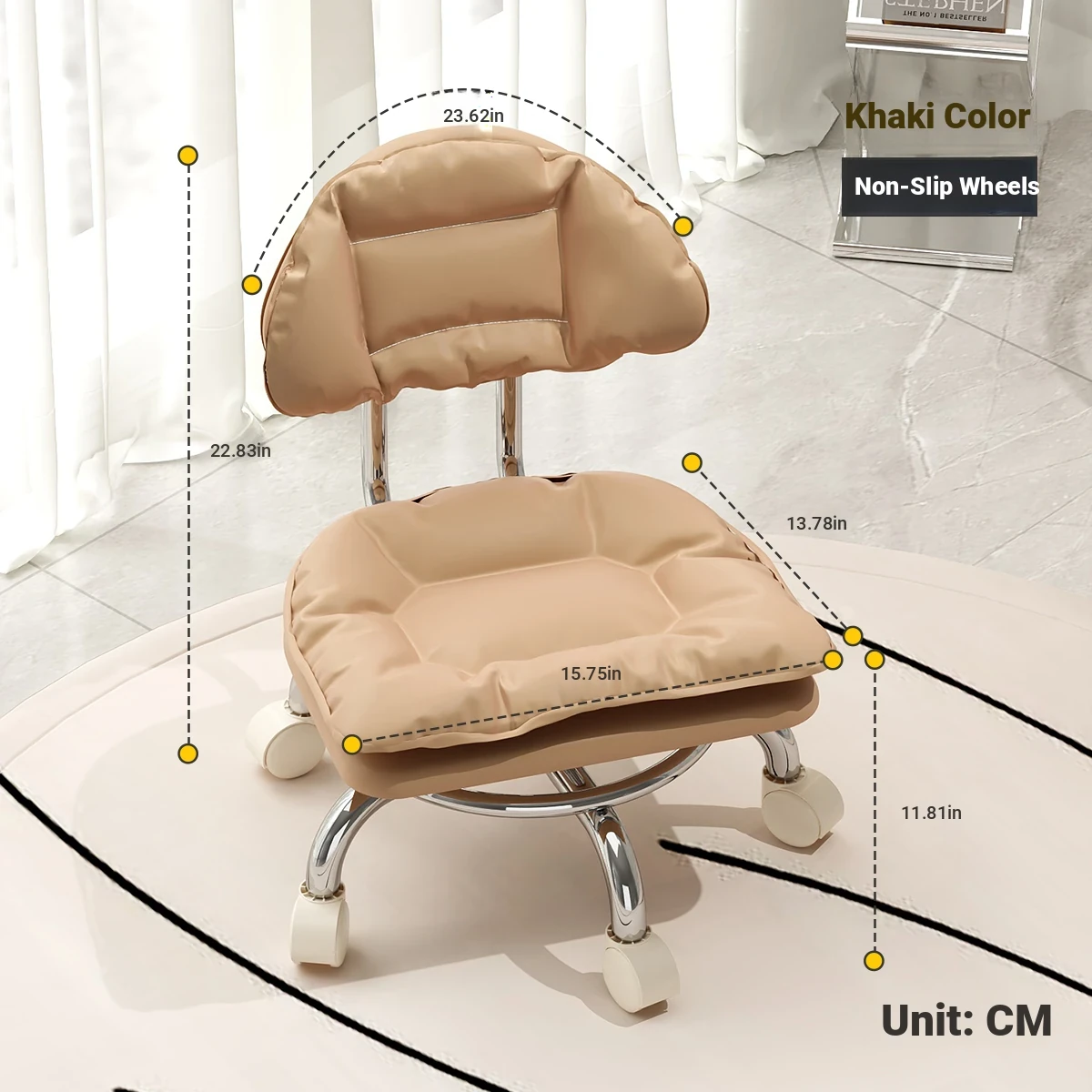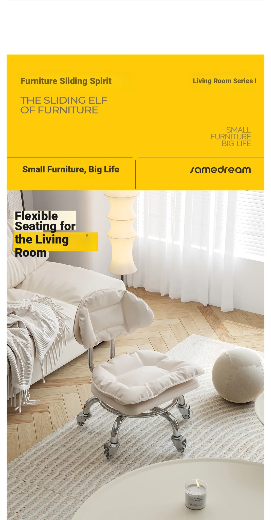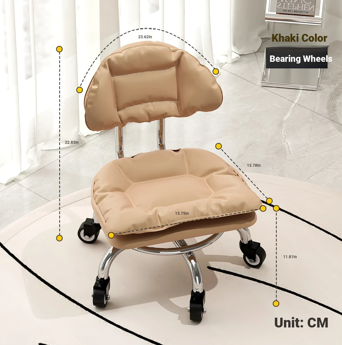 Three Dreams Silent Universal Wheel Stool with Casters - Versatile Low Seat for Home, Living Room Shoe Changing, Kids' Bench with Backrest, Perfect for Comfort and Style