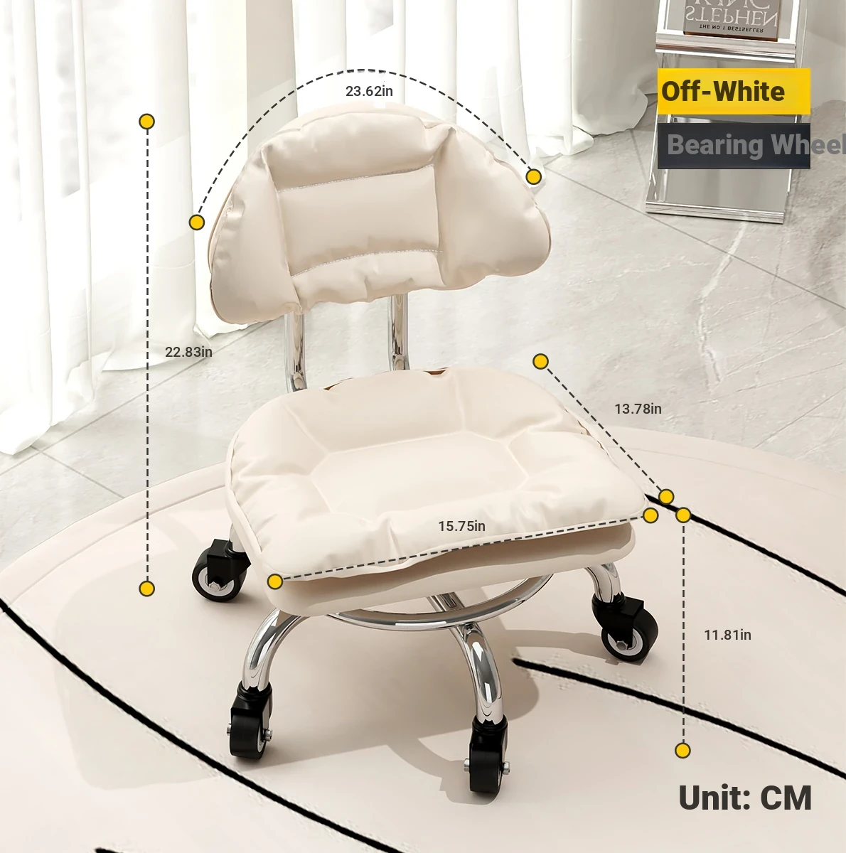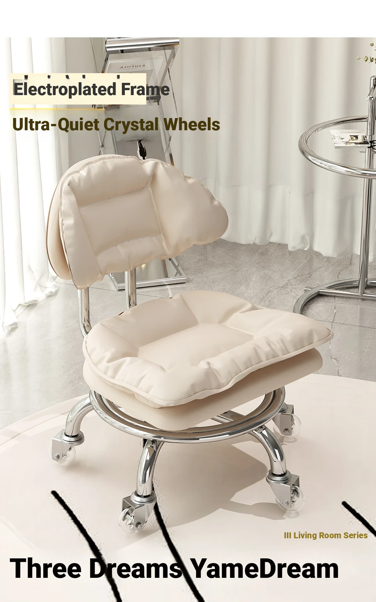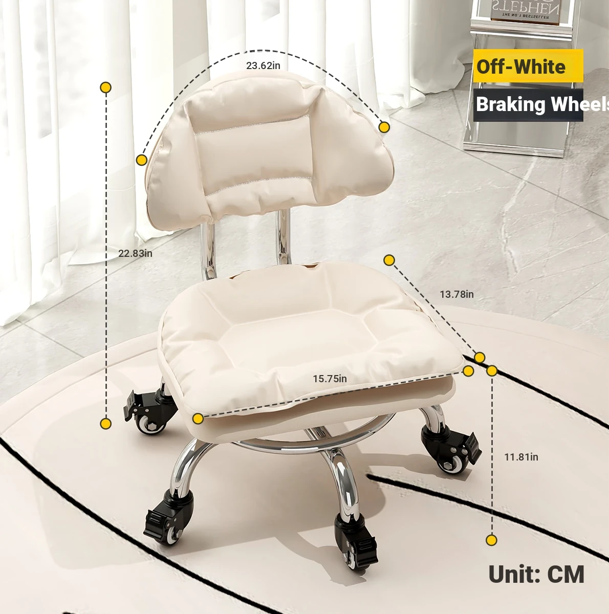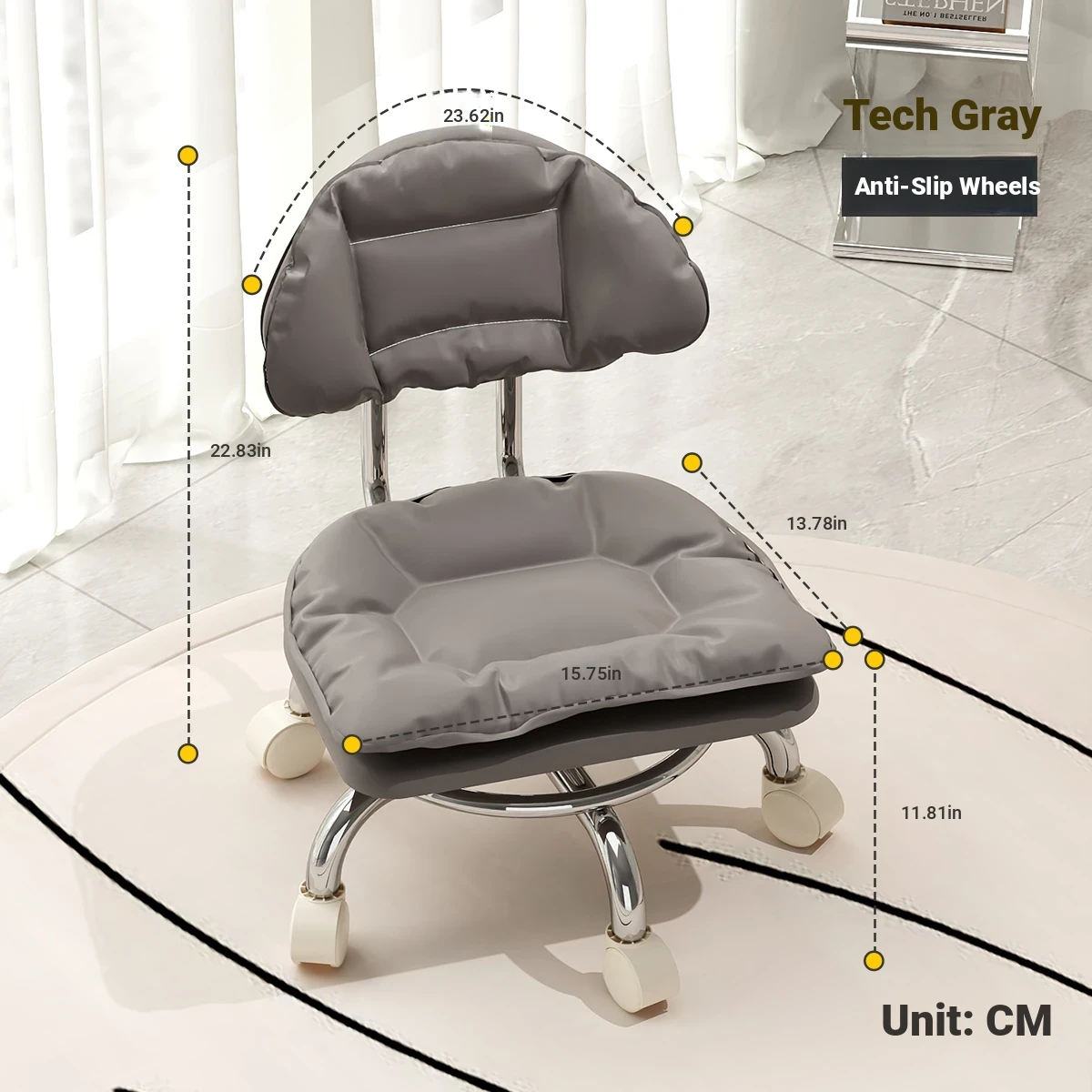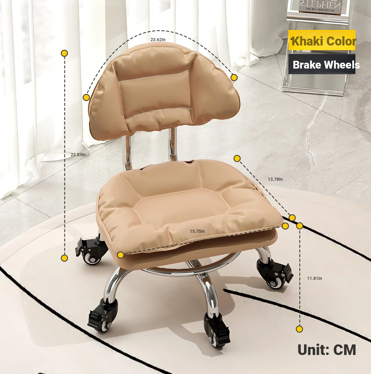 Three Dreams Silent Universal Wheel Stool with Casters - Versatile Low Seat for Home, Living Room Shoe Changing, Kids' Bench with Backrest, Perfect for Comfort and Style