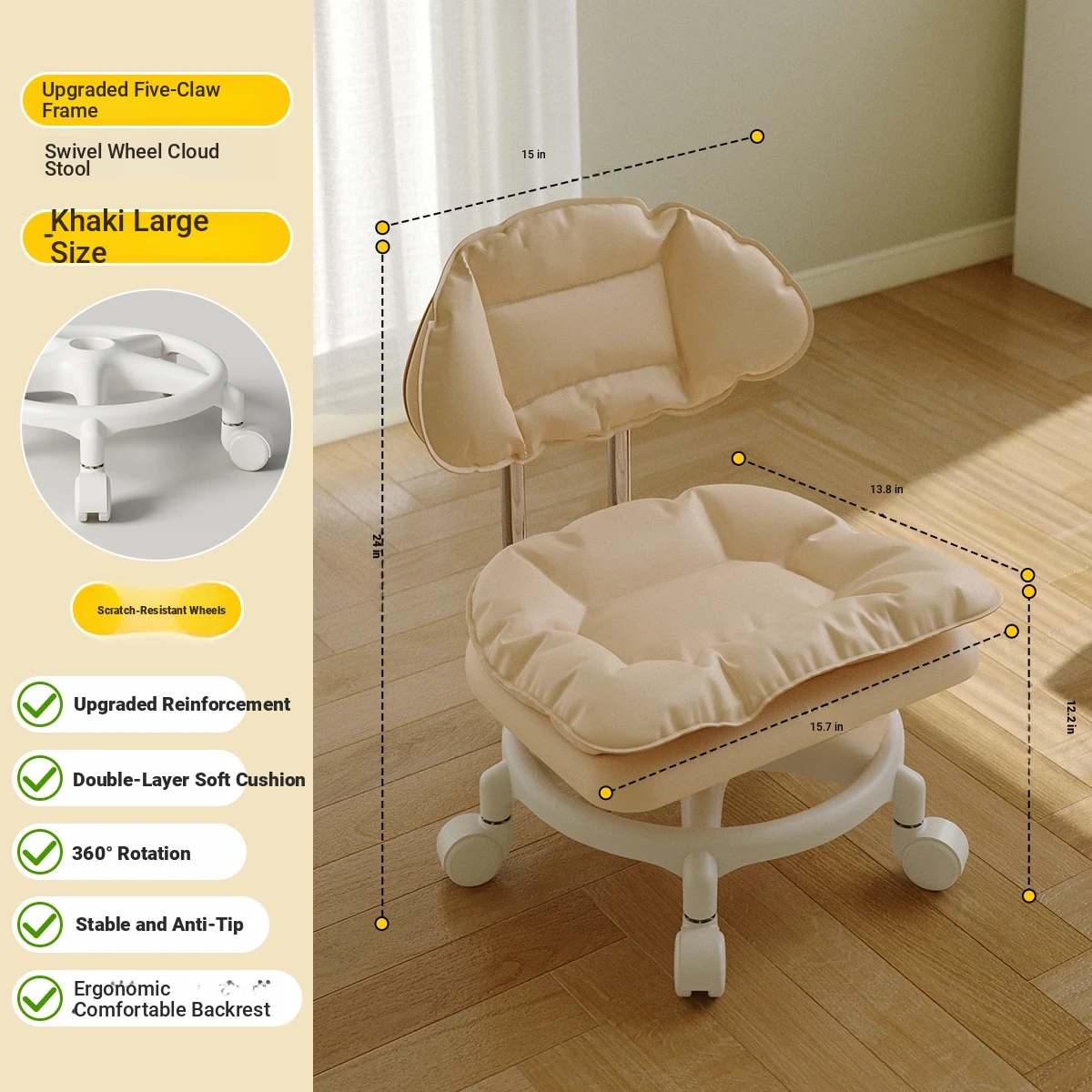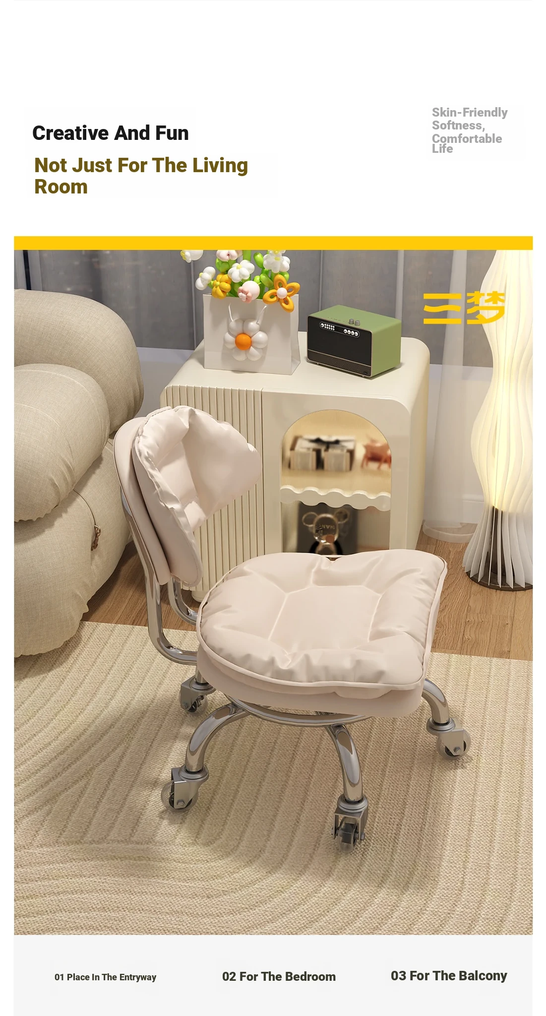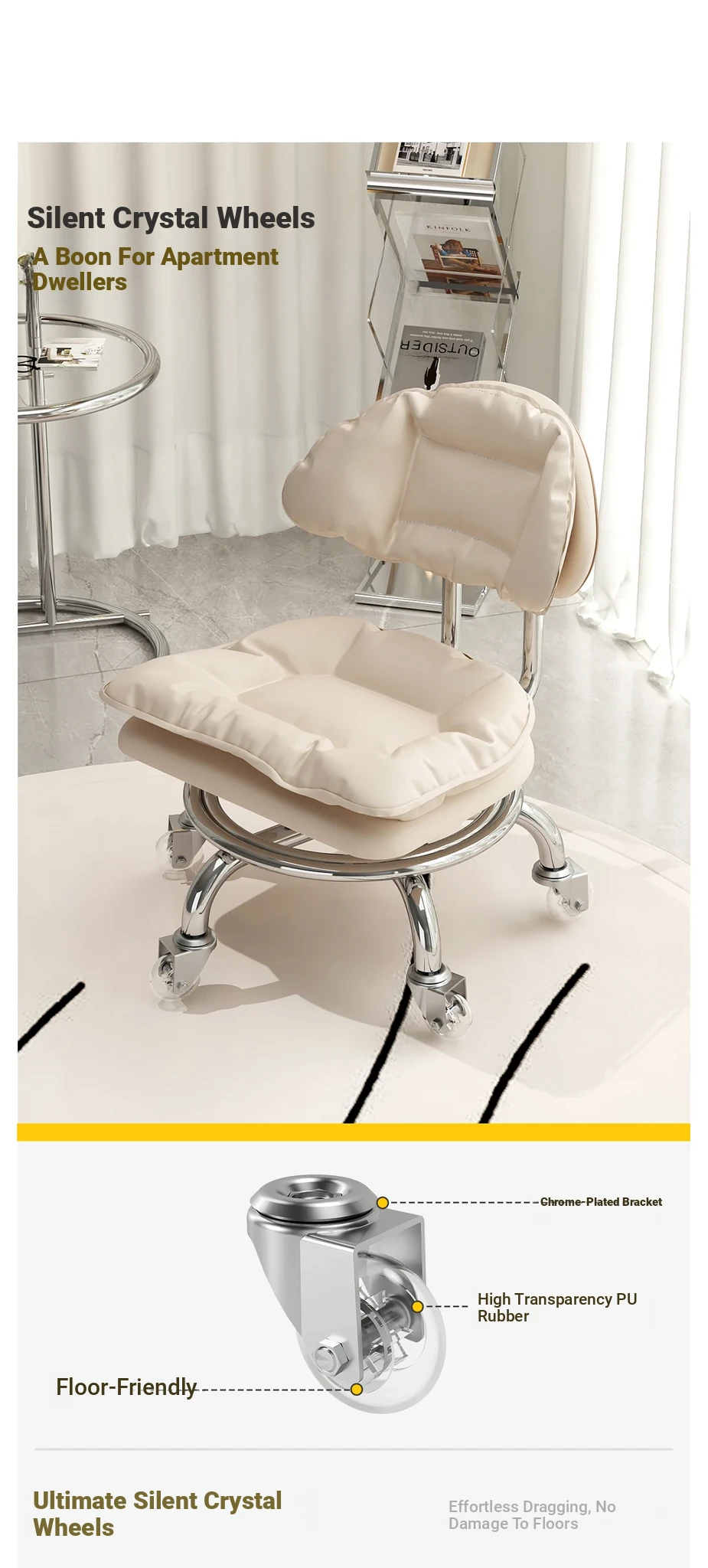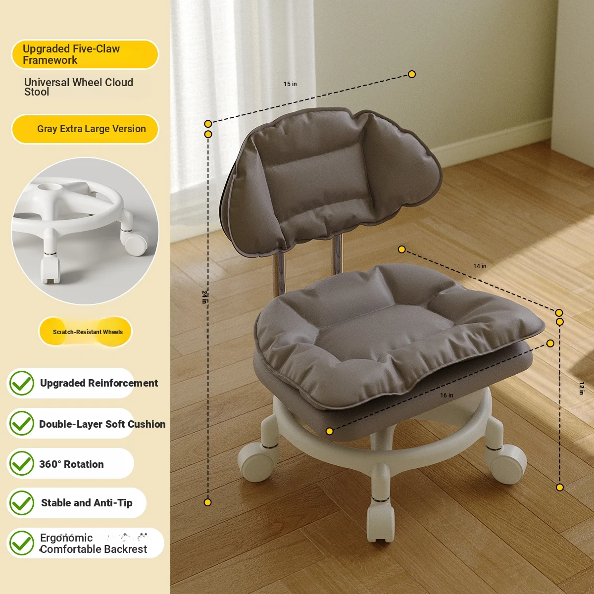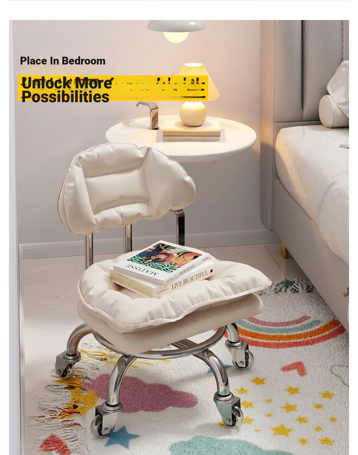 Three Dreams Silent Universal Wheel Stool with Casters - Versatile Low Seat for Home, Living Room Shoe Changing, Kids' Bench with Backrest, Perfect for Comfort and Style