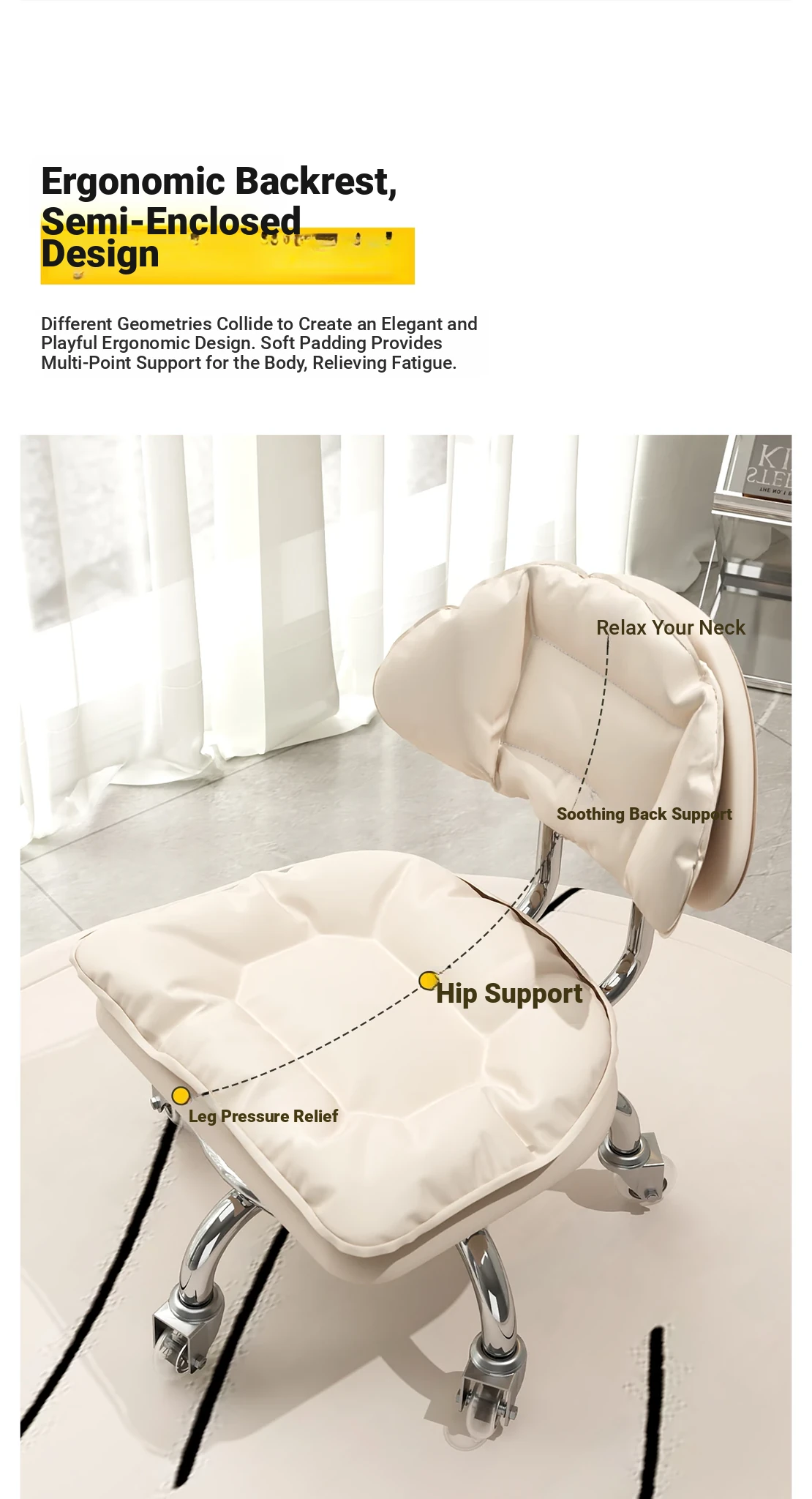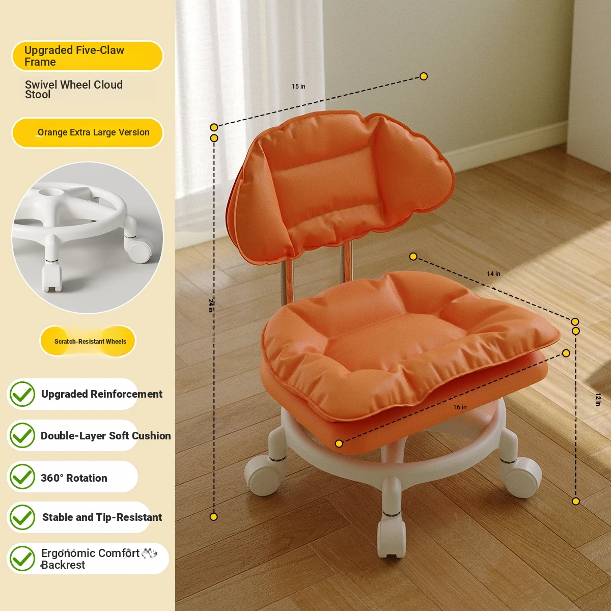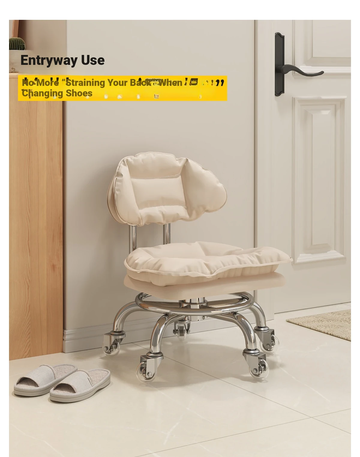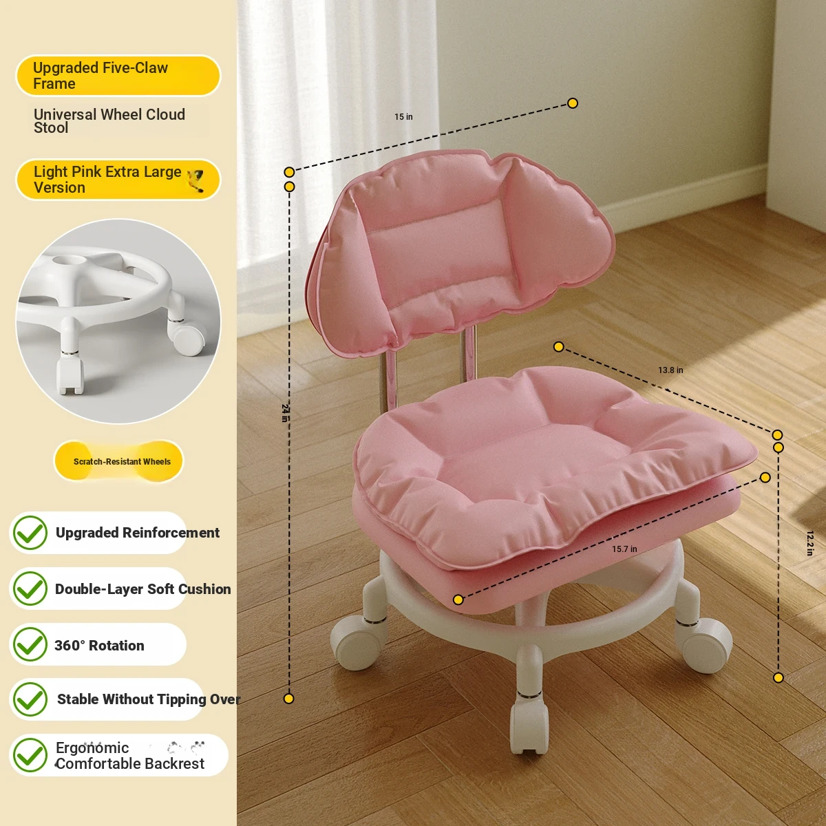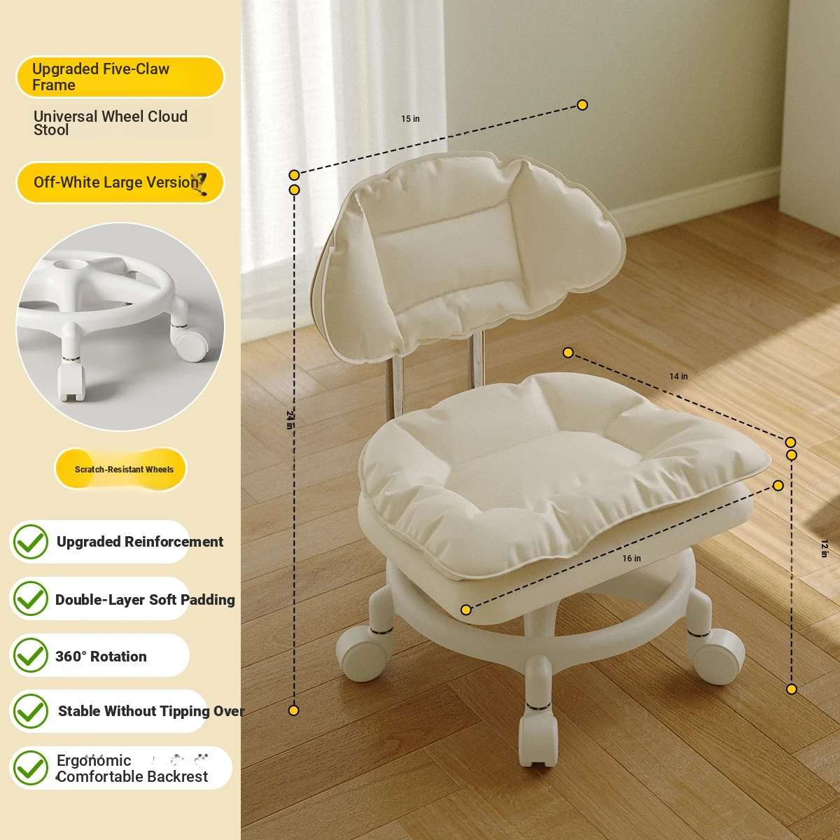 Three Dreams Silent Universal Wheel Stool with Casters - Versatile Low Seat for Home, Living Room Shoe Changing, Kids' Bench with Backrest, Perfect for Comfort and Style