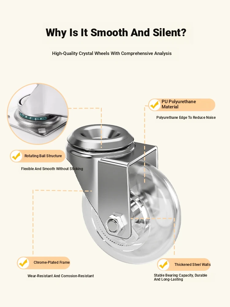 Smooth bearing wheel-creamy-white [360 ° non-rollover-metal plating frame]]