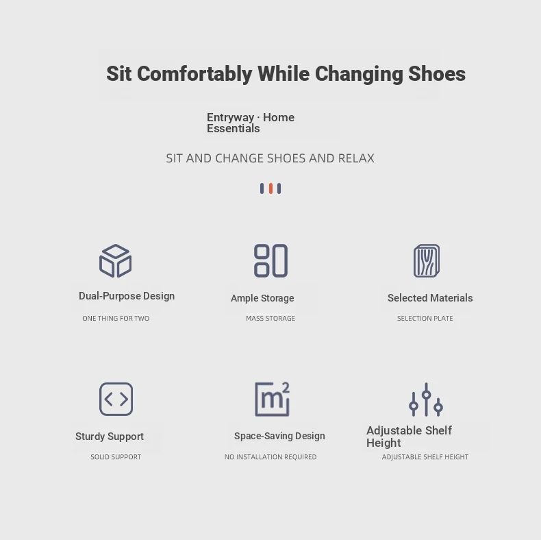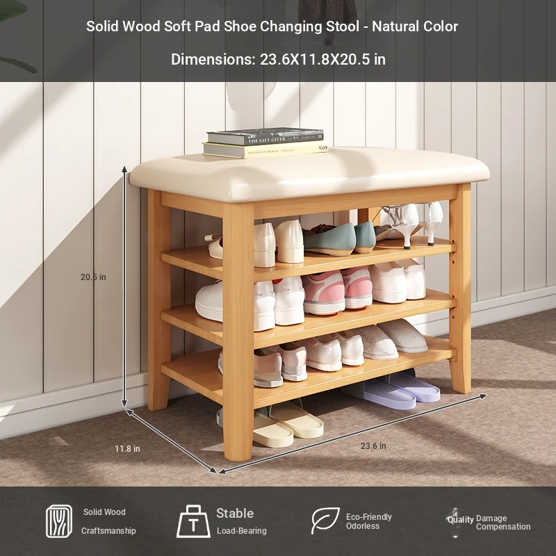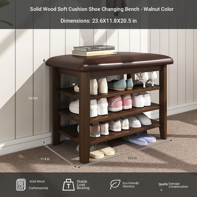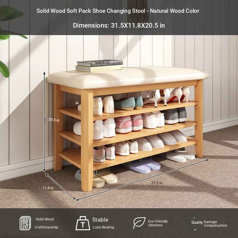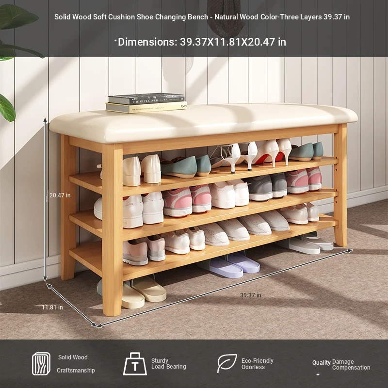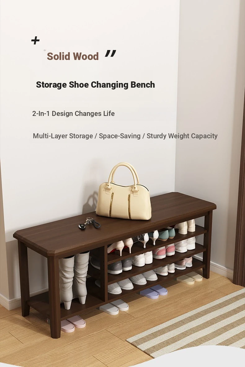 Three Dreams Solid Wood Shoe Changing Bench - Versatile Entryway Seat with Integrated Shoe Cabinet, Perfect for Sitting While Changing Shoes at Home or in the Entryway.