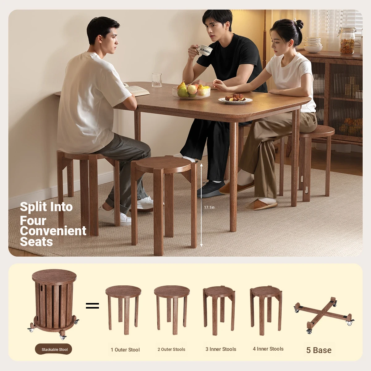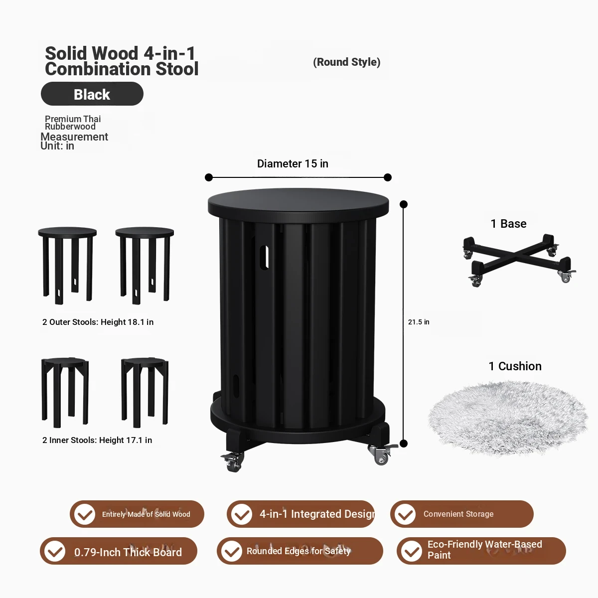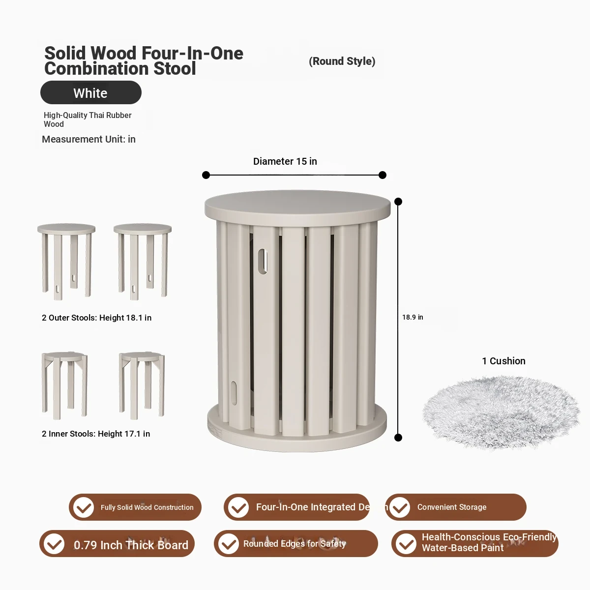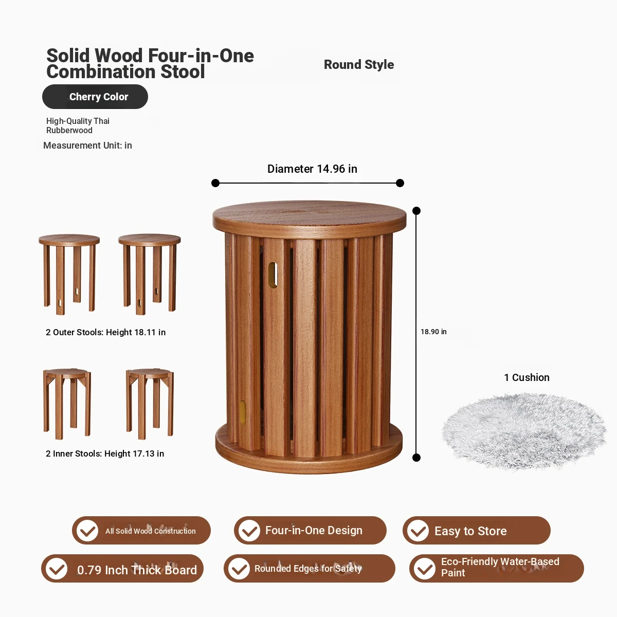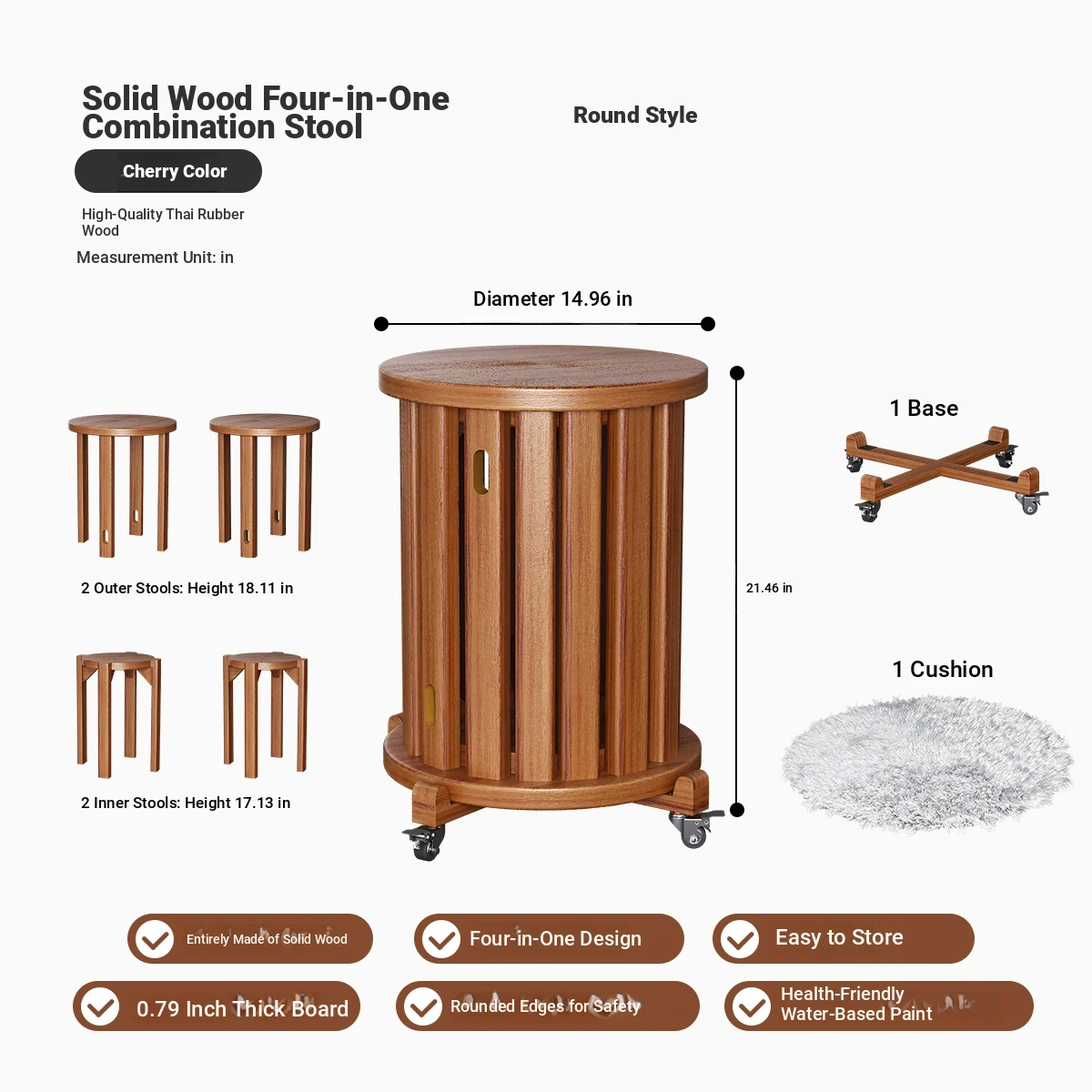Three Dreams Solid Wood Stool Set - Stackable Round Stools for Home Use, Perfect for Living Room and Dining Table, Convenient Folding Chairs for Extra Seating