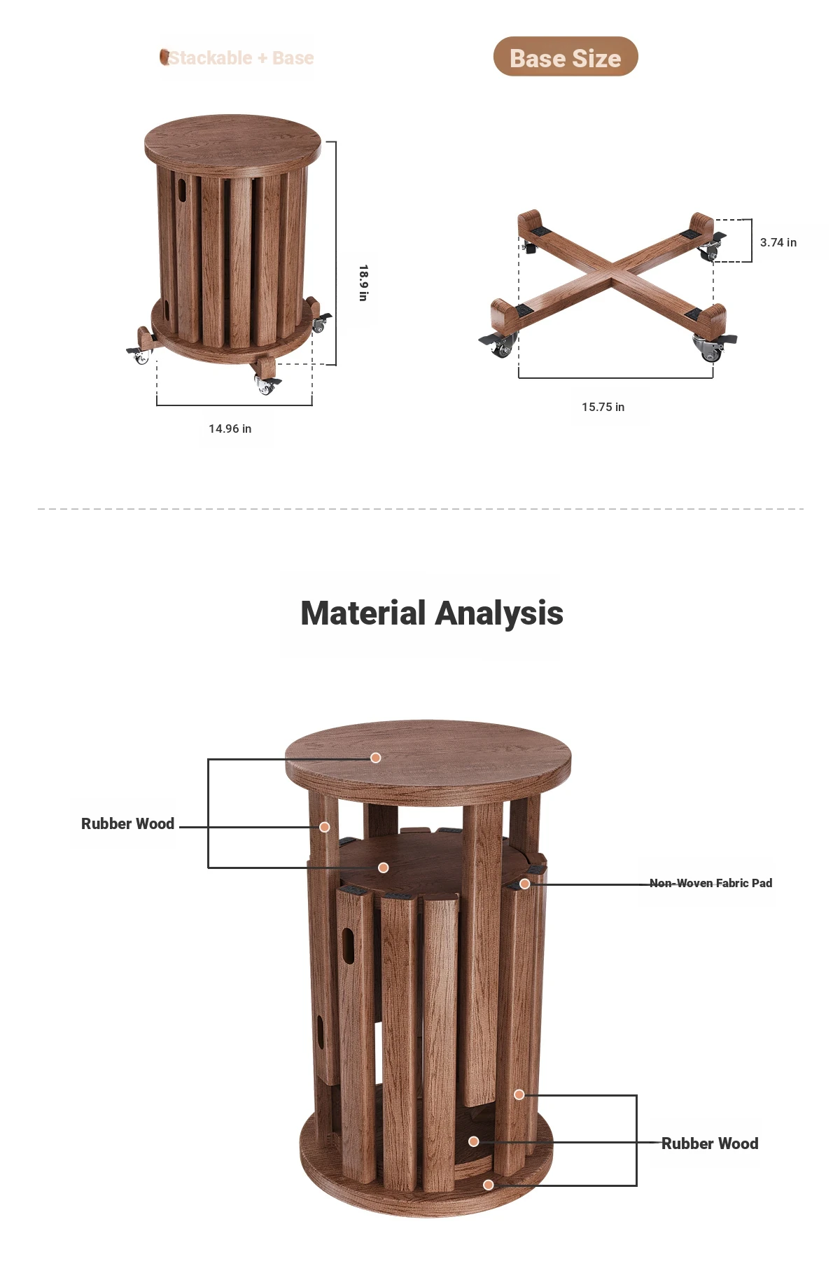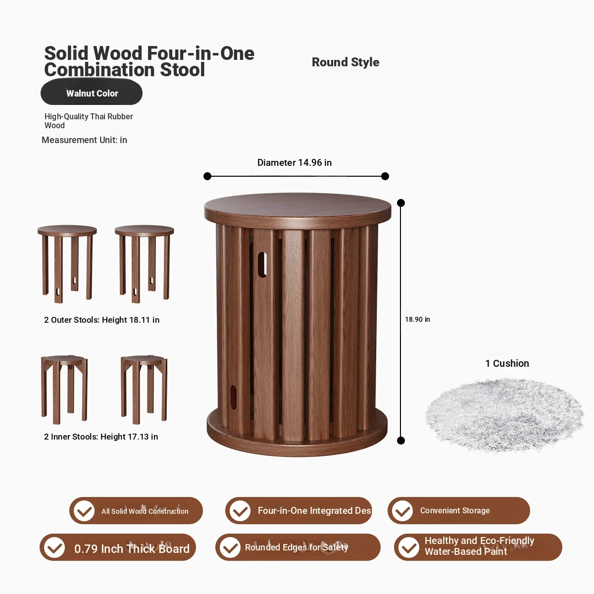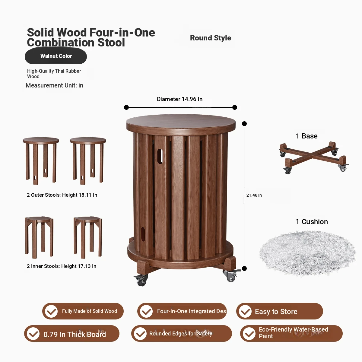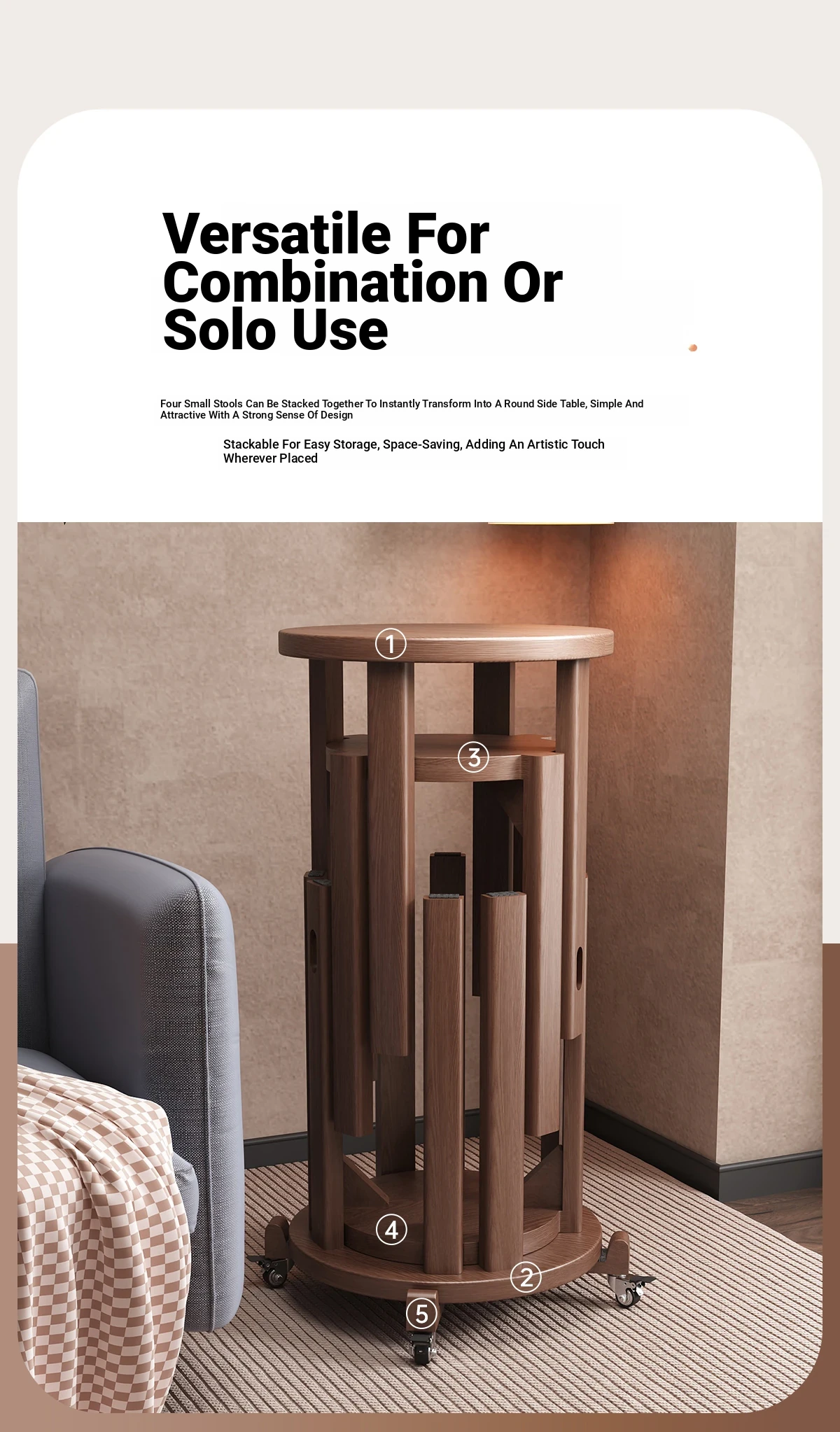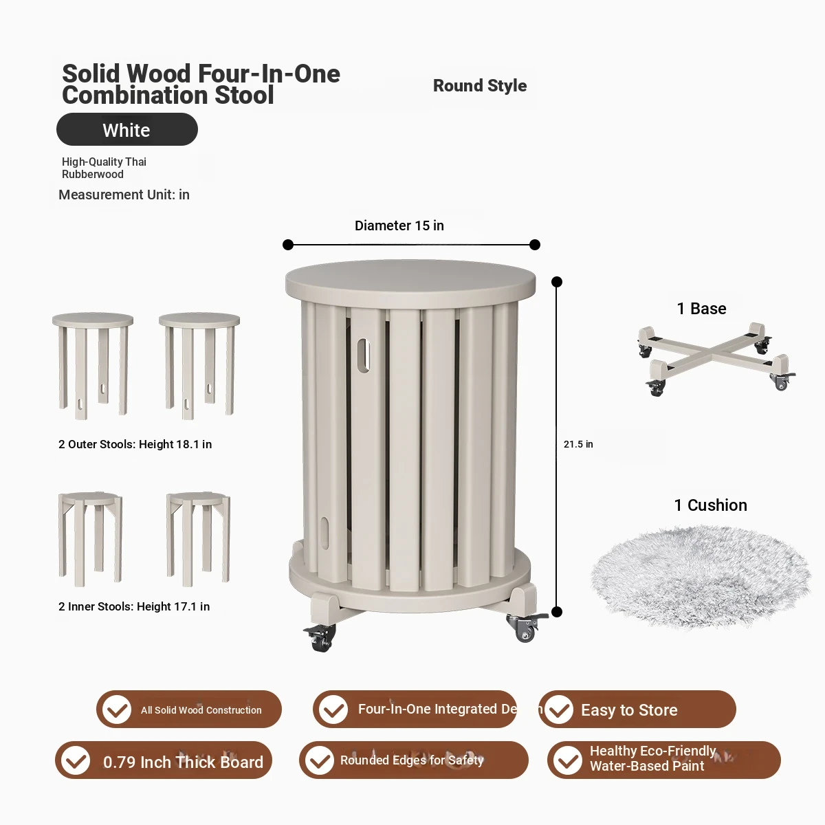 Three Dreams Solid Wood Stool Set - Stackable Round Stools for Home Use, Perfect for Living Room and Dining Table, Convenient Folding Chairs for Extra Seating