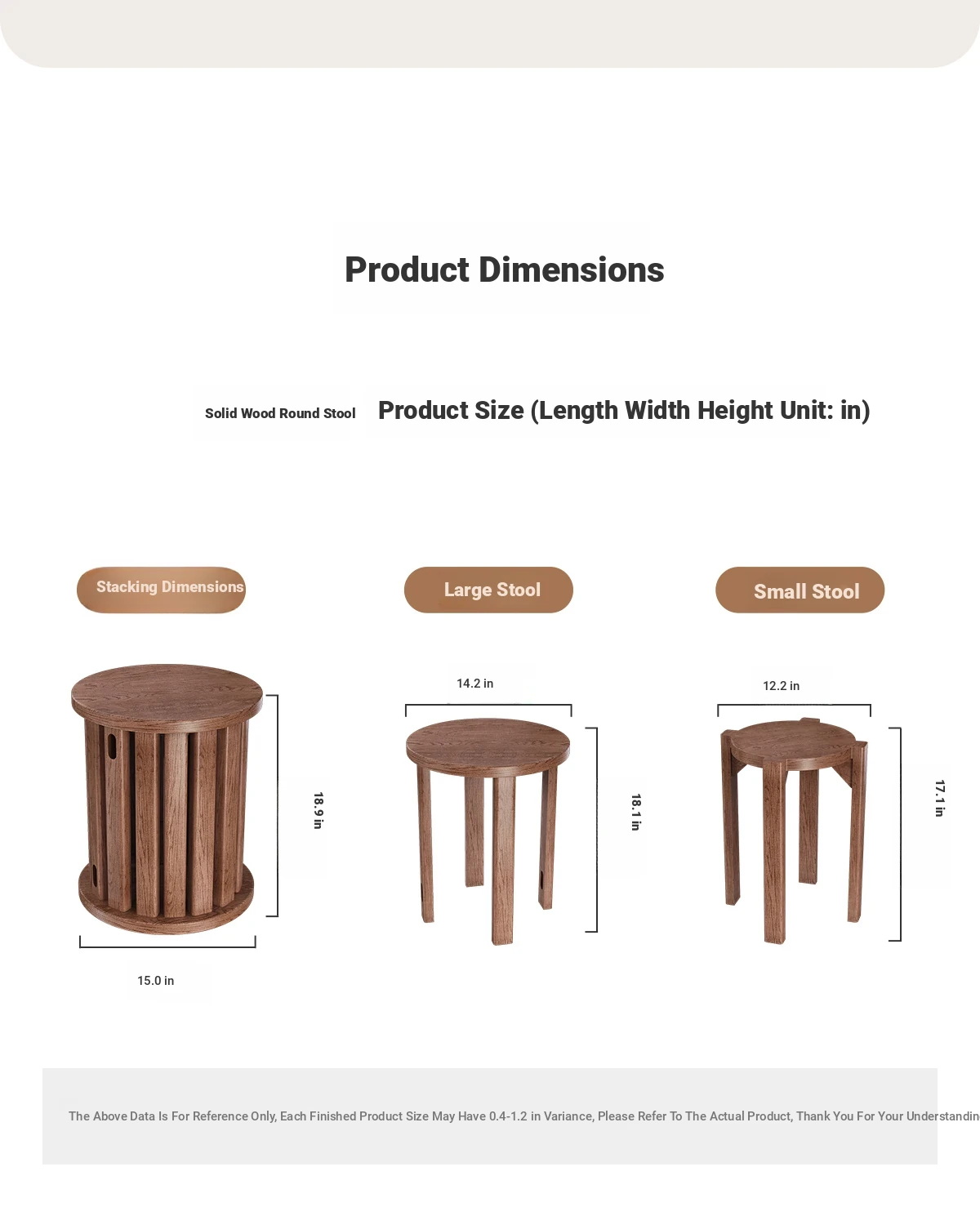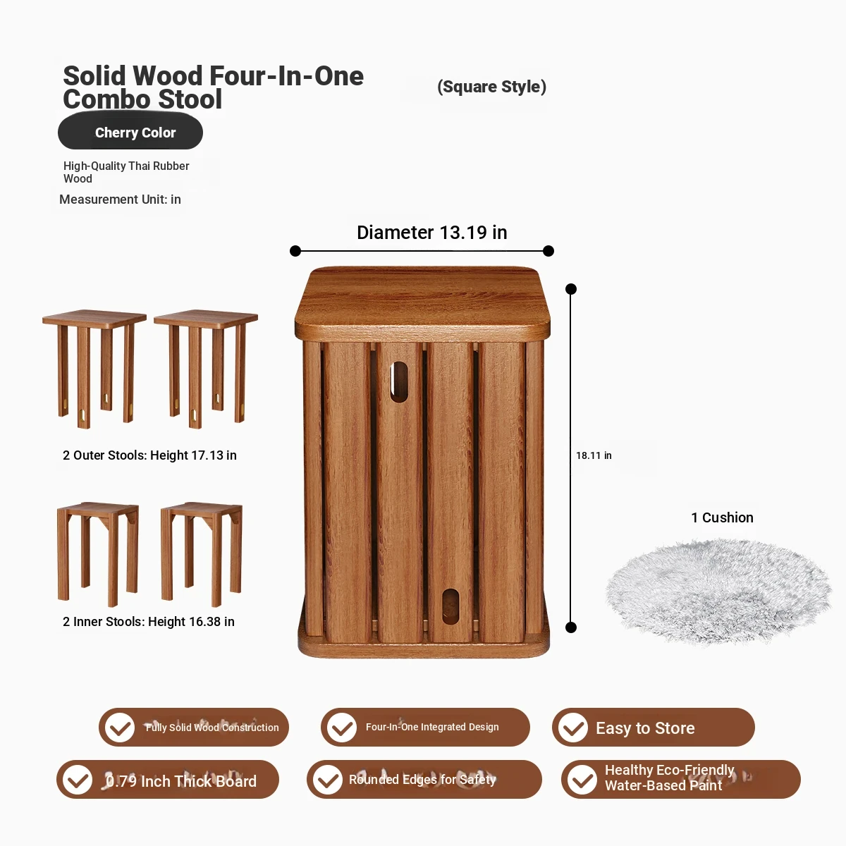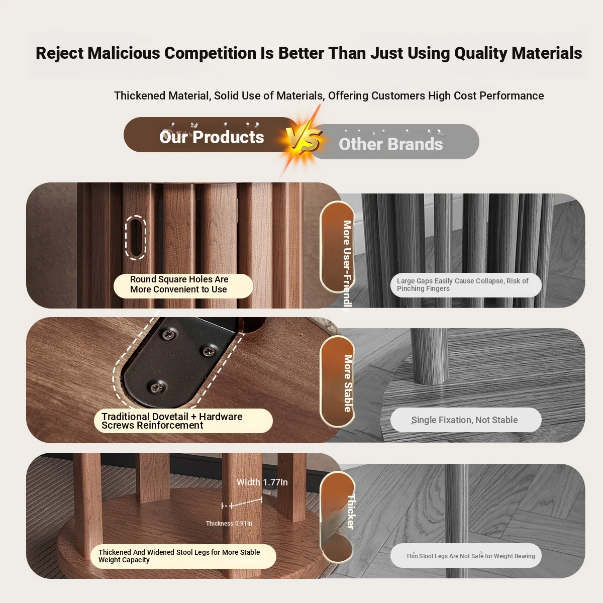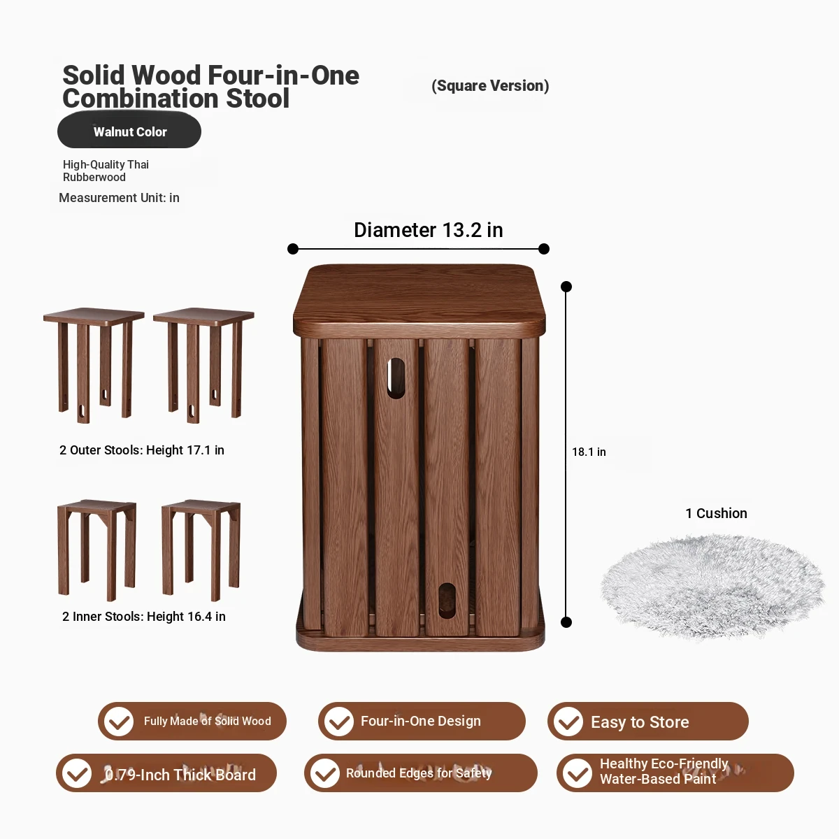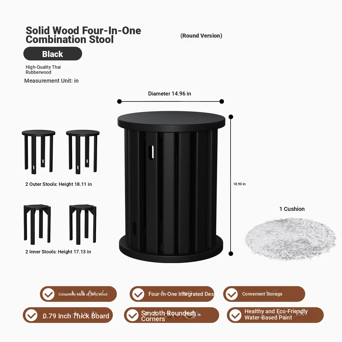 Three Dreams Solid Wood Stool Set - Stackable Round Stools for Home Use, Perfect for Living Room and Dining Table, Convenient Folding Chairs for Extra Seating