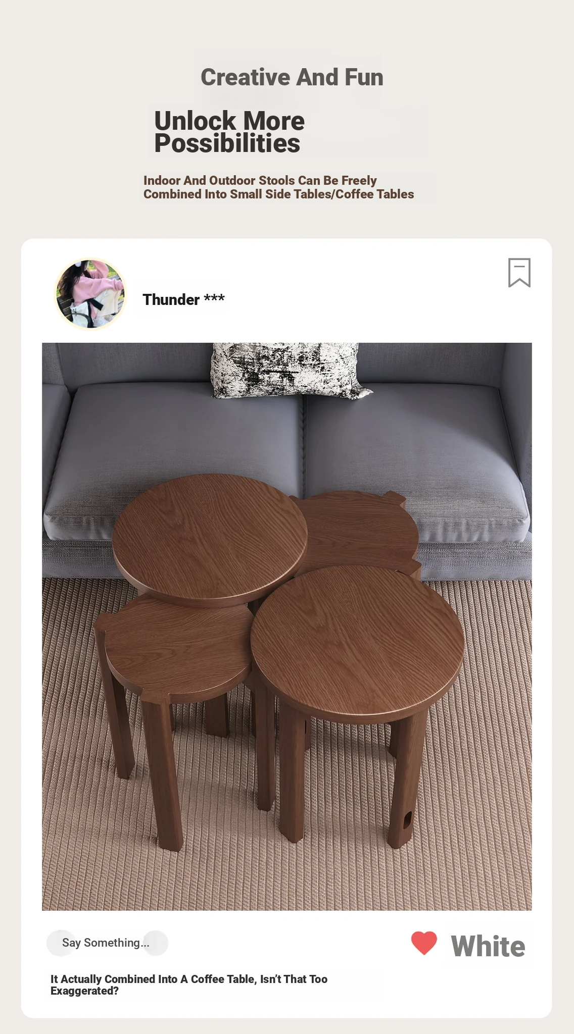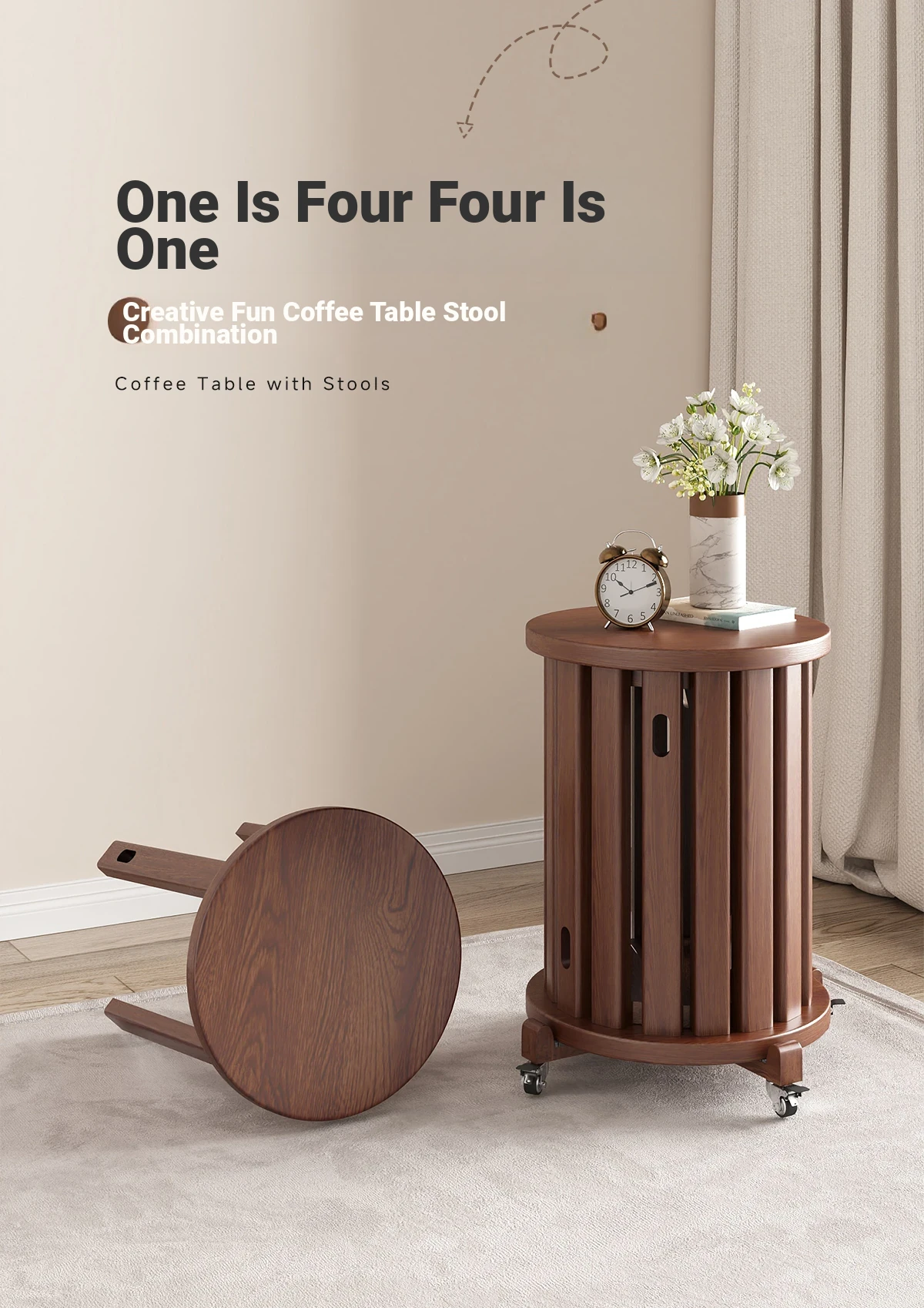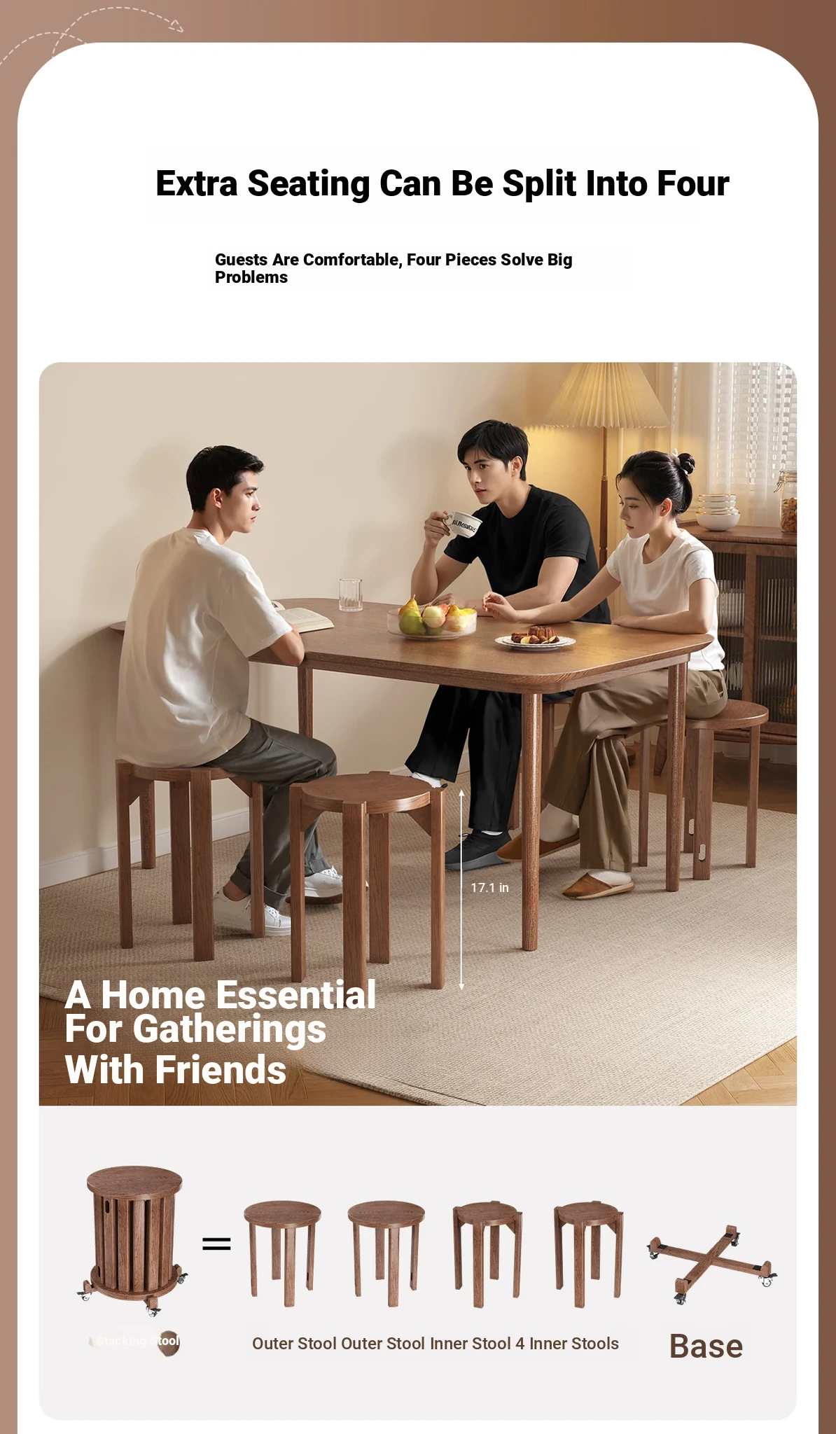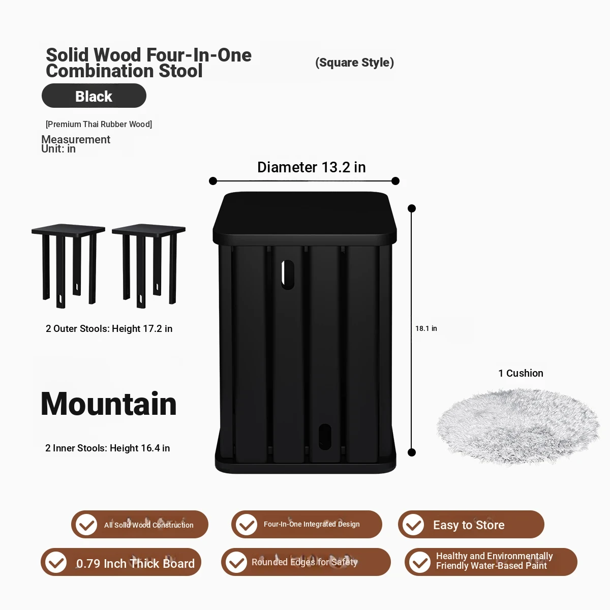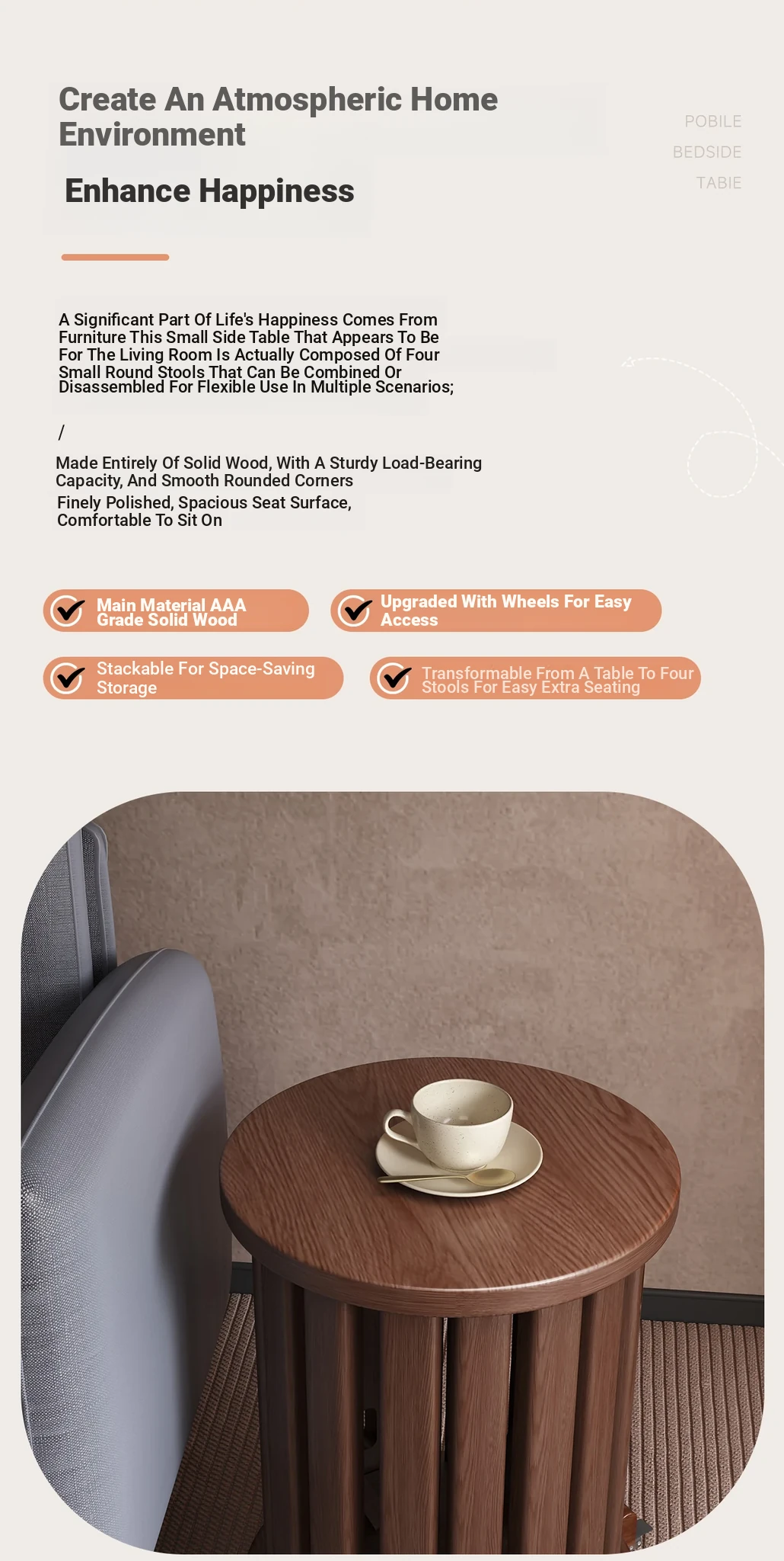Three Dreams Solid Wood Stool Set - Stackable Round Stools for Home Use, Perfect for Living Room and Dining Table, Convenient Folding Chairs for Extra Seating