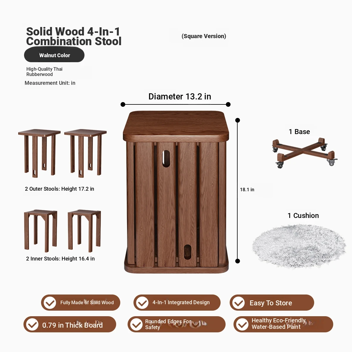 Square stool-with pulley base-walnut color-[all solid wood-self-contained delivery] send thickened carpet