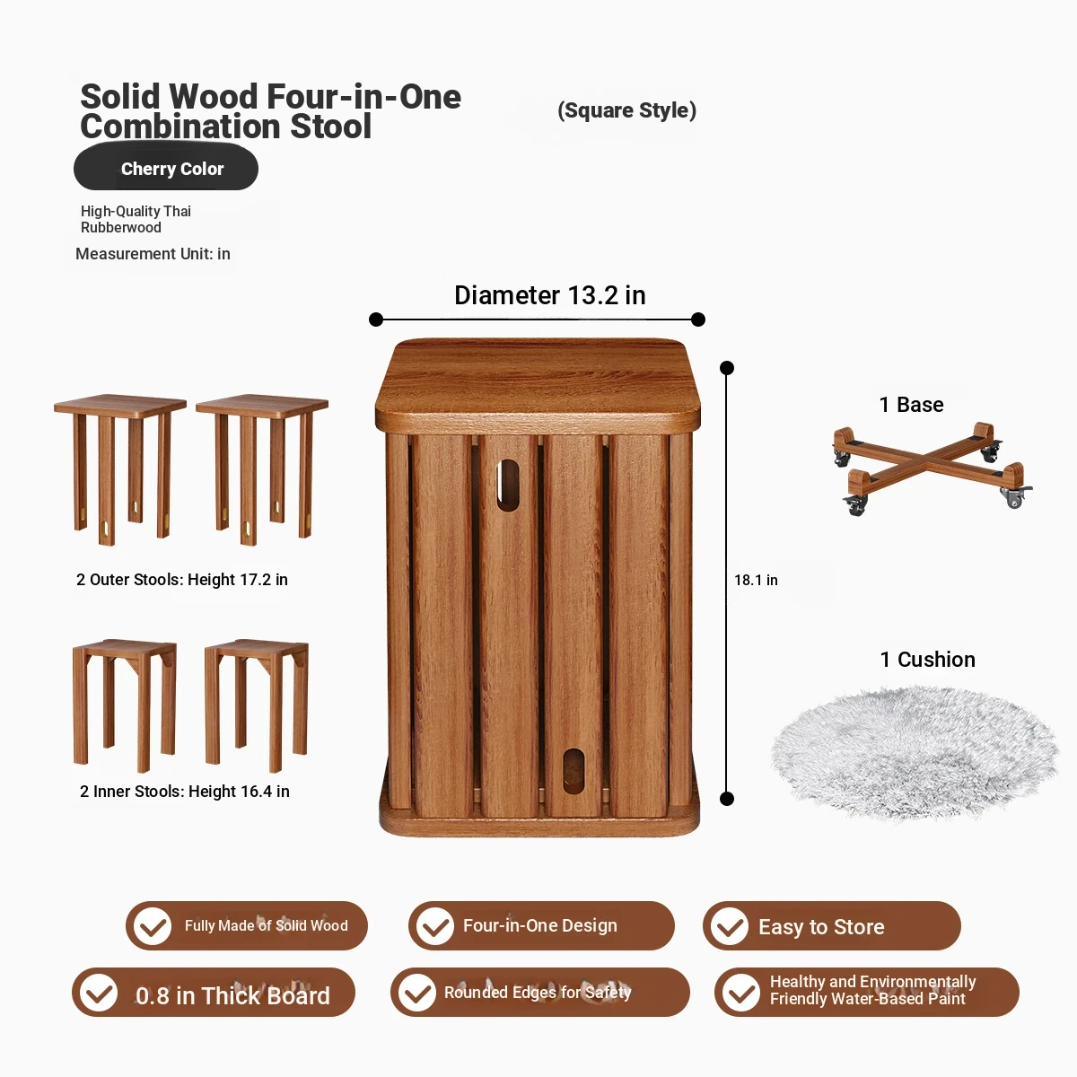 Square stool-with pulley base-cherry wood color-[all solid wood-self-contained delivery] send thickened carpet