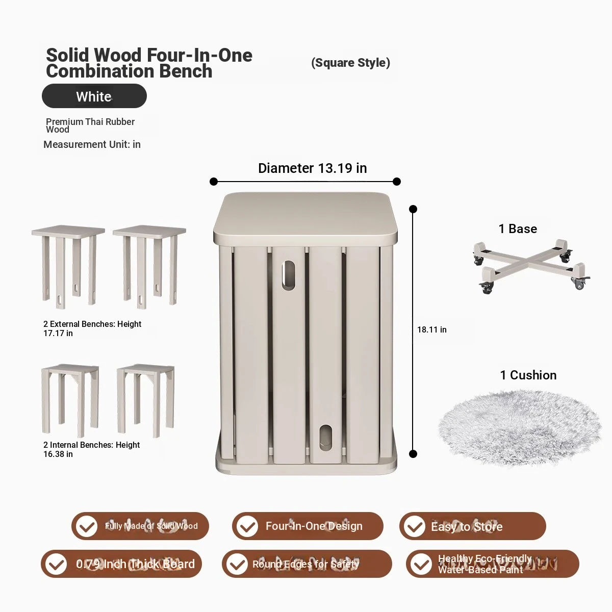 Square stool-with pulley base-Minimalist White-[all solid wood-self-contained delivery] to send thickened carpet