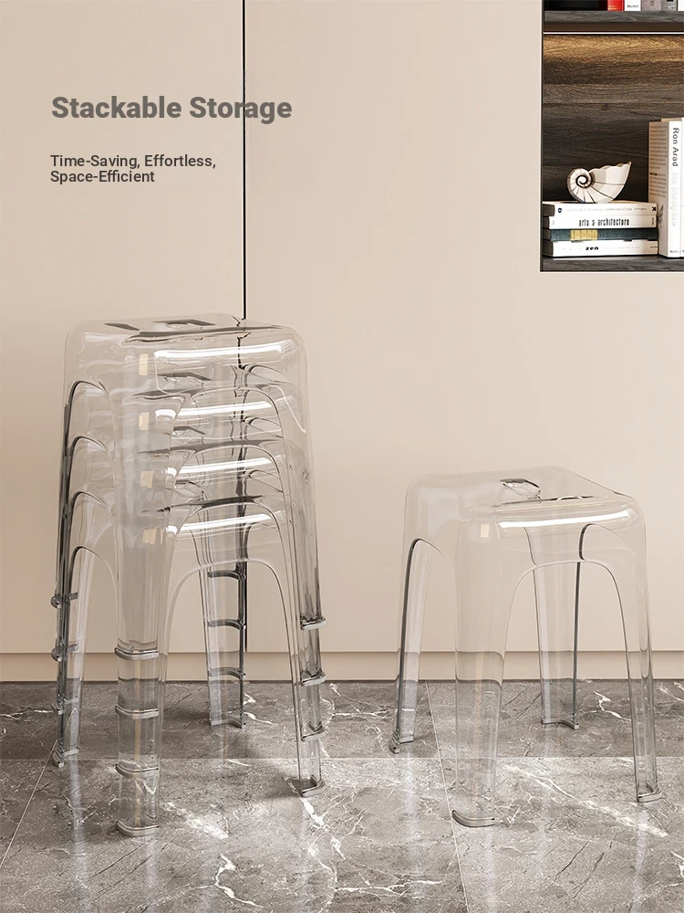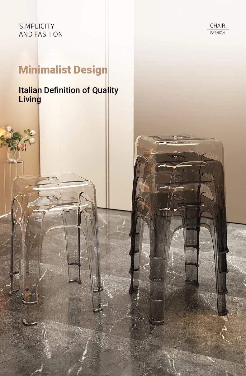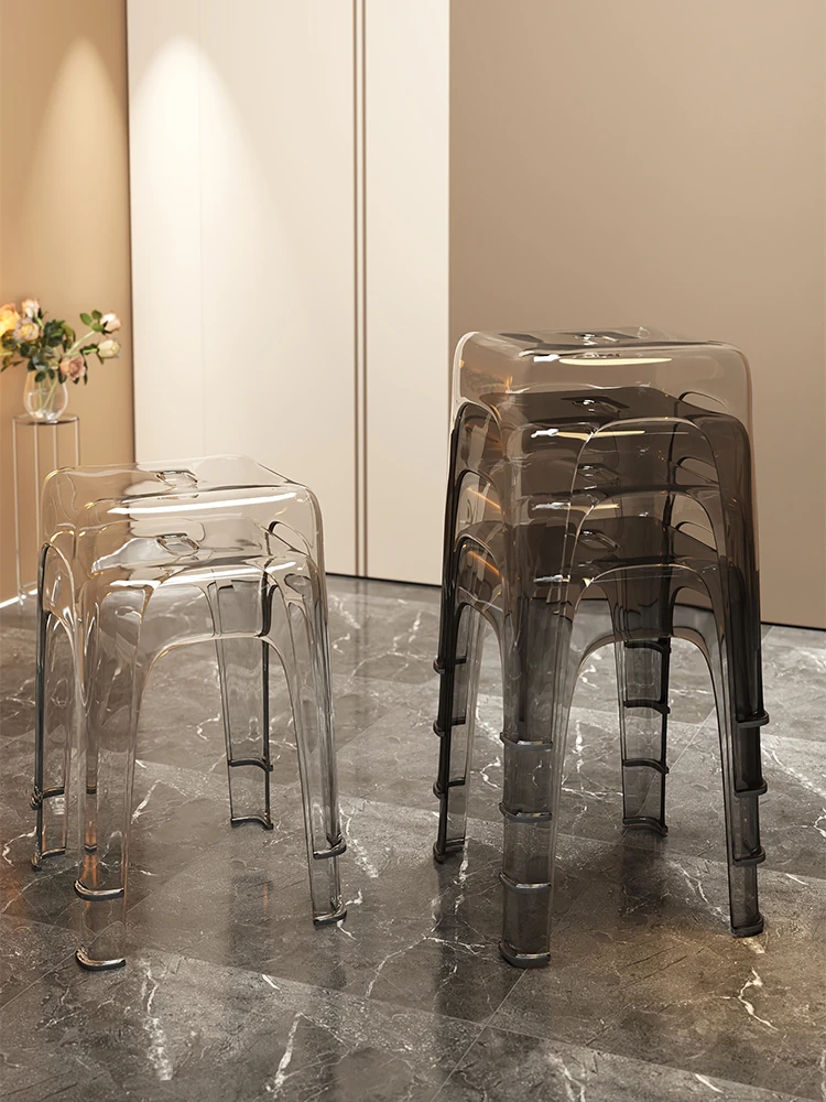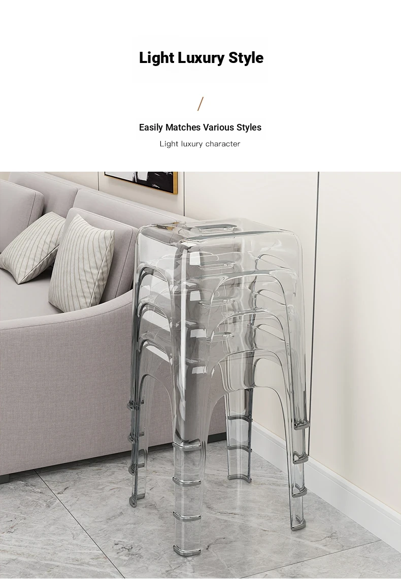 Three Dreams Transparent Acrylic Stacking Stool - Stylish and Thickened Home Square Bench for Living Room and Dining Table, Perfect for Modern Luxury Décor