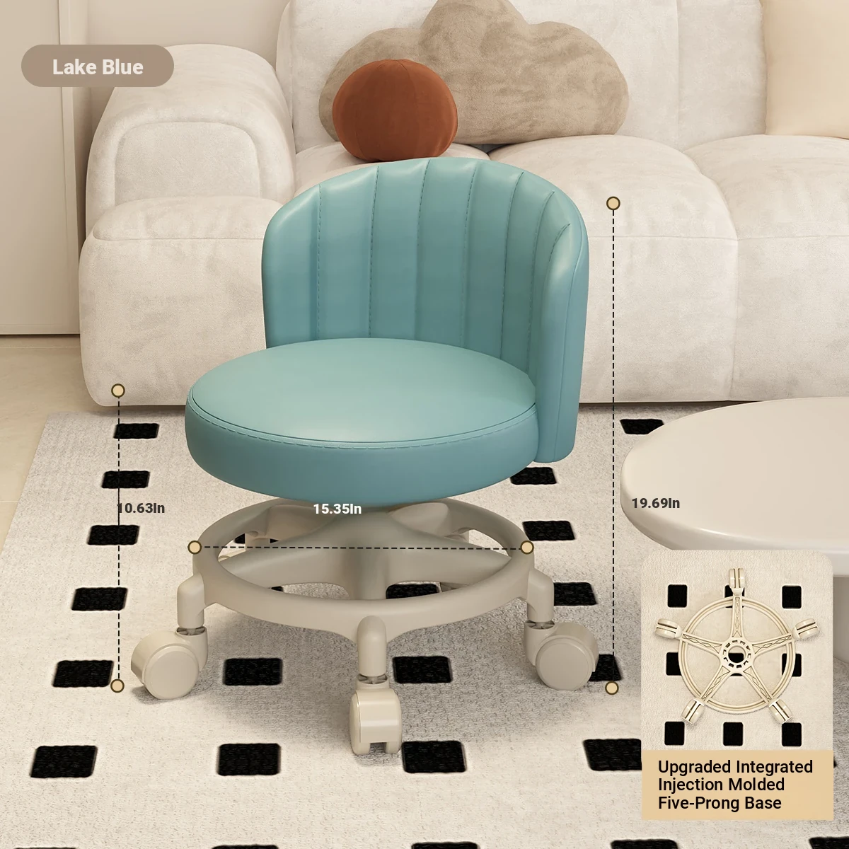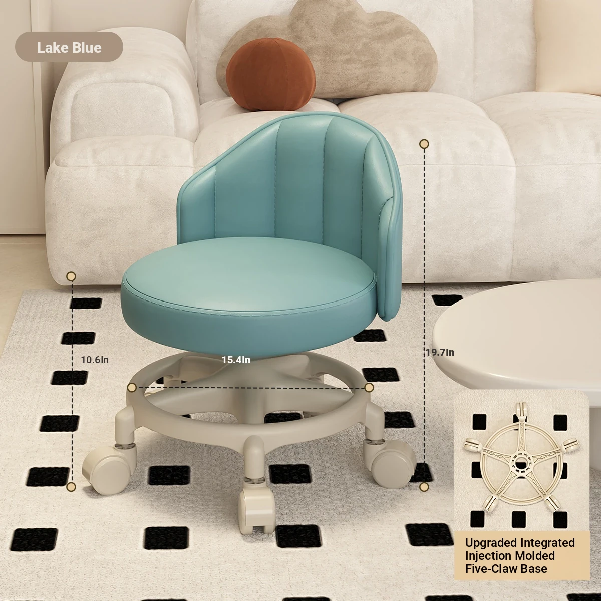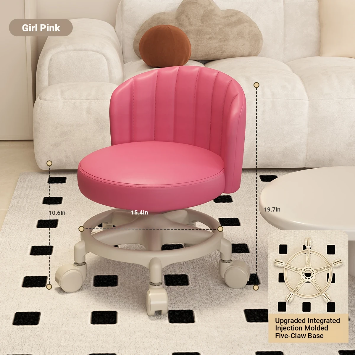 Versatile Swivel Stool with Wheels - Perfect for Home Use! Ideal for Kids, Featuring Backrest Support. Soft Cushioned Round Bench for Living Room, Great for Family Fun and Comfort!