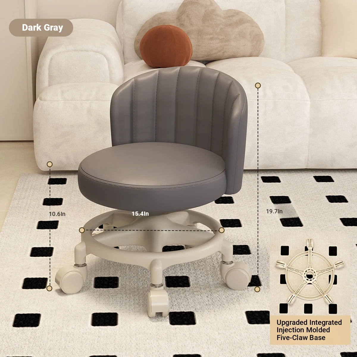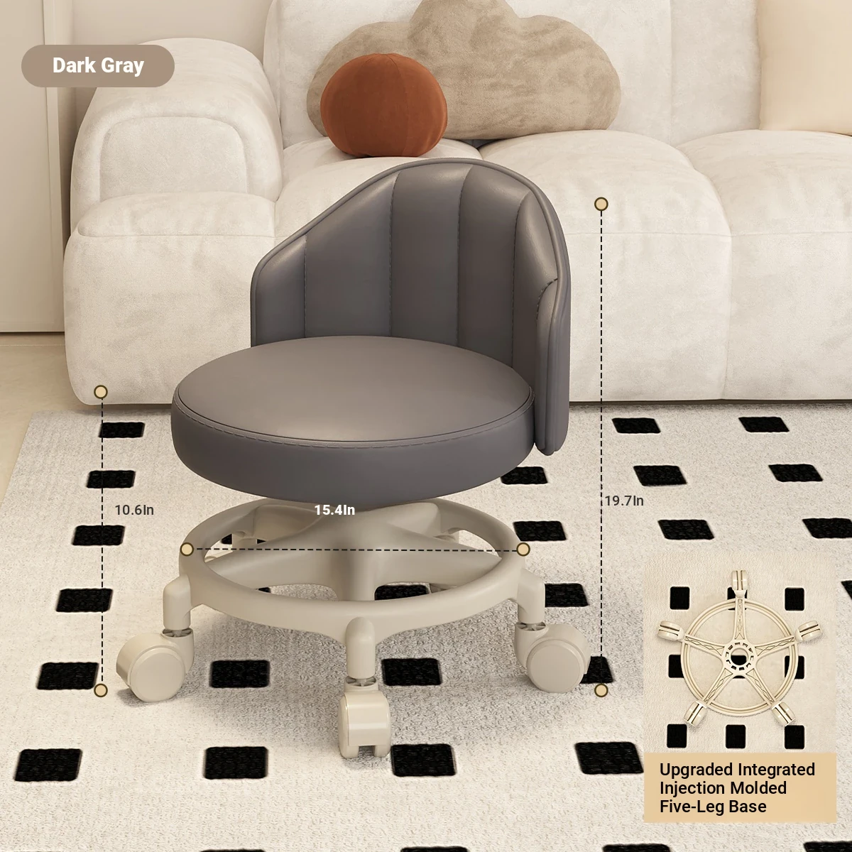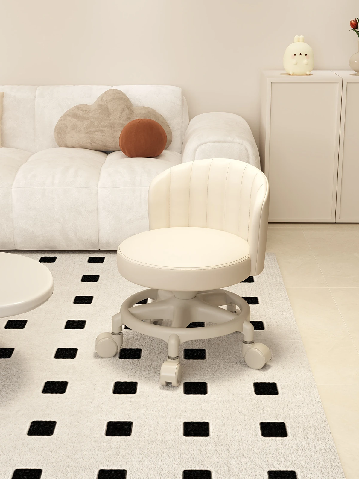 Versatile Swivel Stool with Wheels - Perfect for Home Use! Ideal for Kids, Featuring Backrest Support. Soft Cushioned Round Bench for Living Room, Great for Family Fun and Comfort!