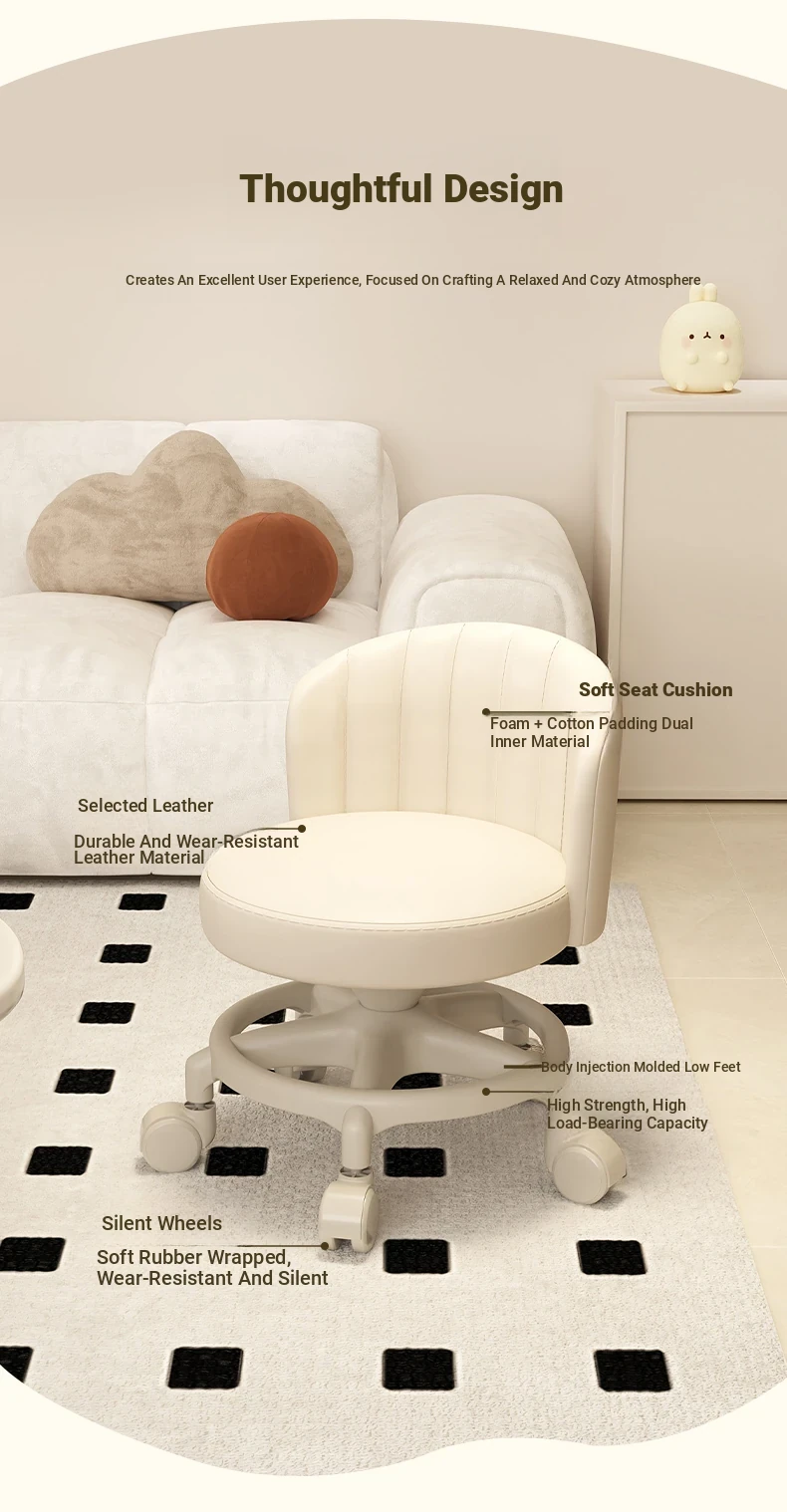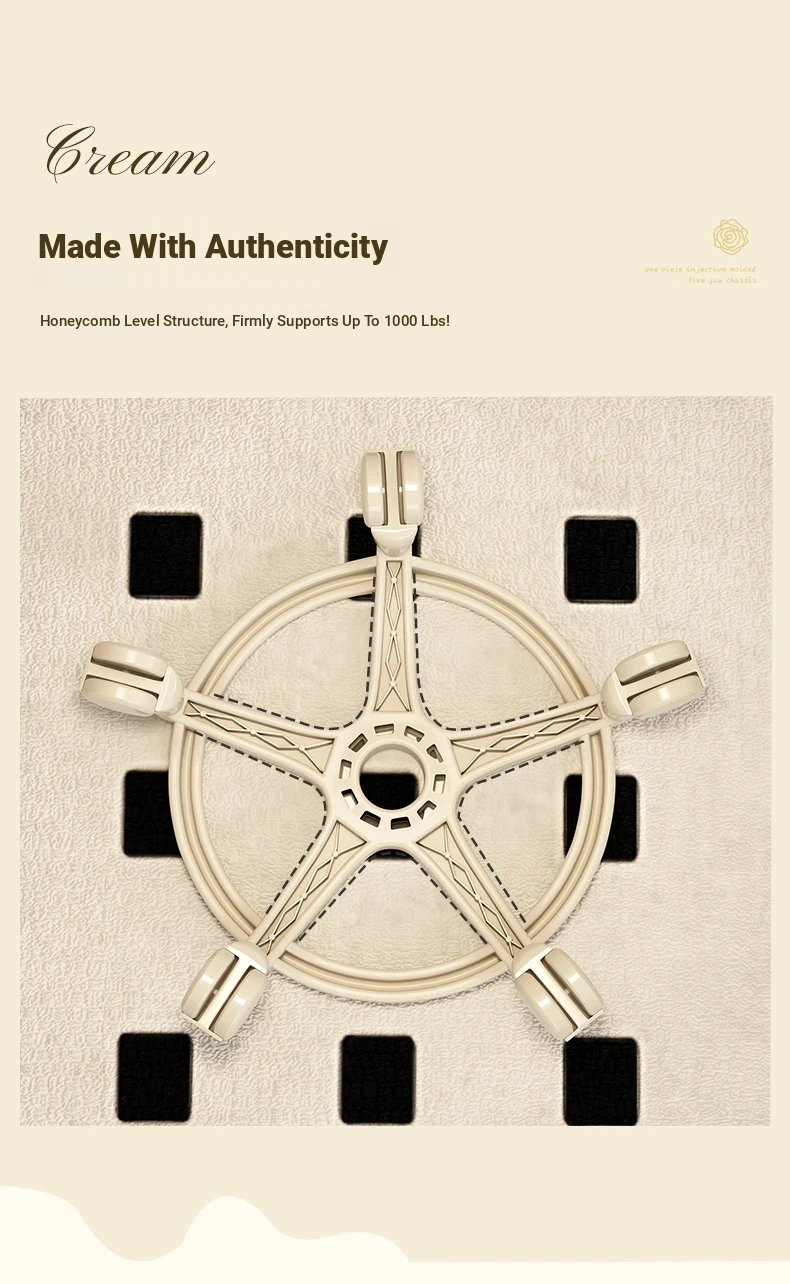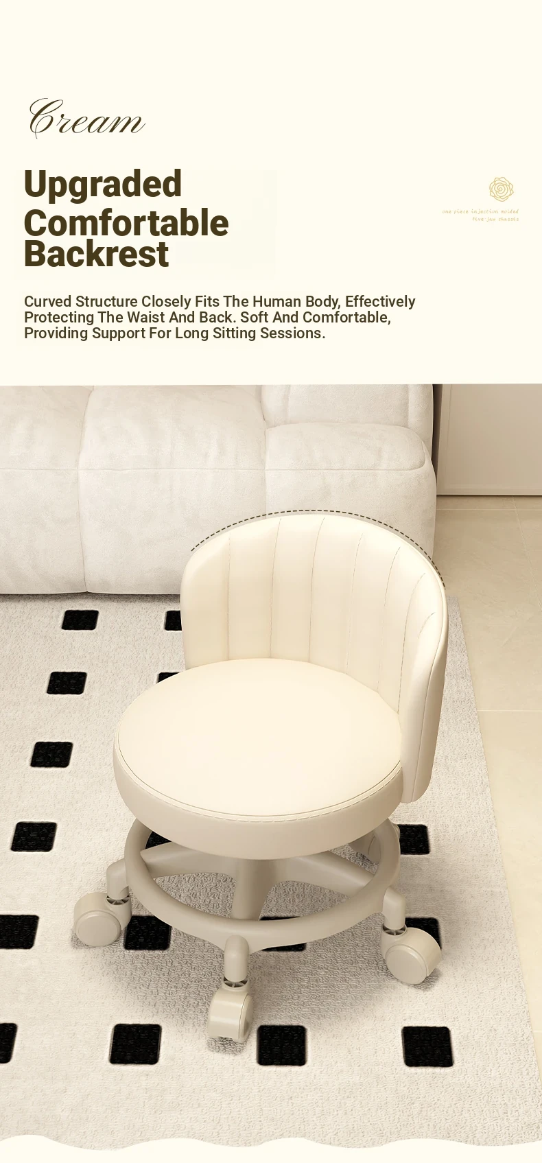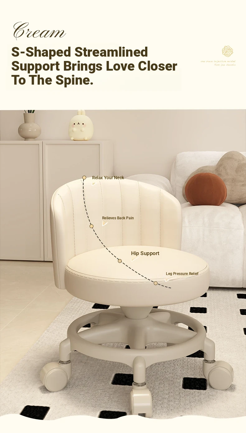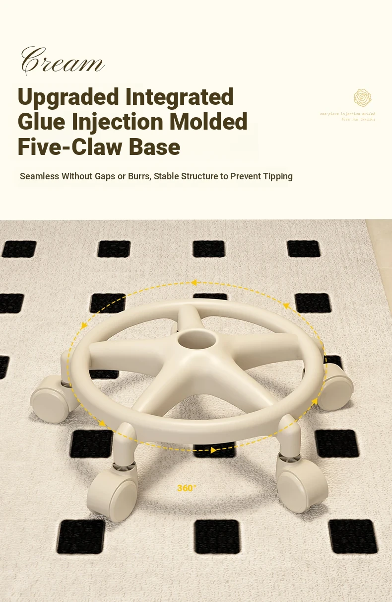 Creamy-white [one-piece glue injection five-claw base-anti-rollover] Manual backrest⭐Smooth silent wheel⭐Arc backrest
