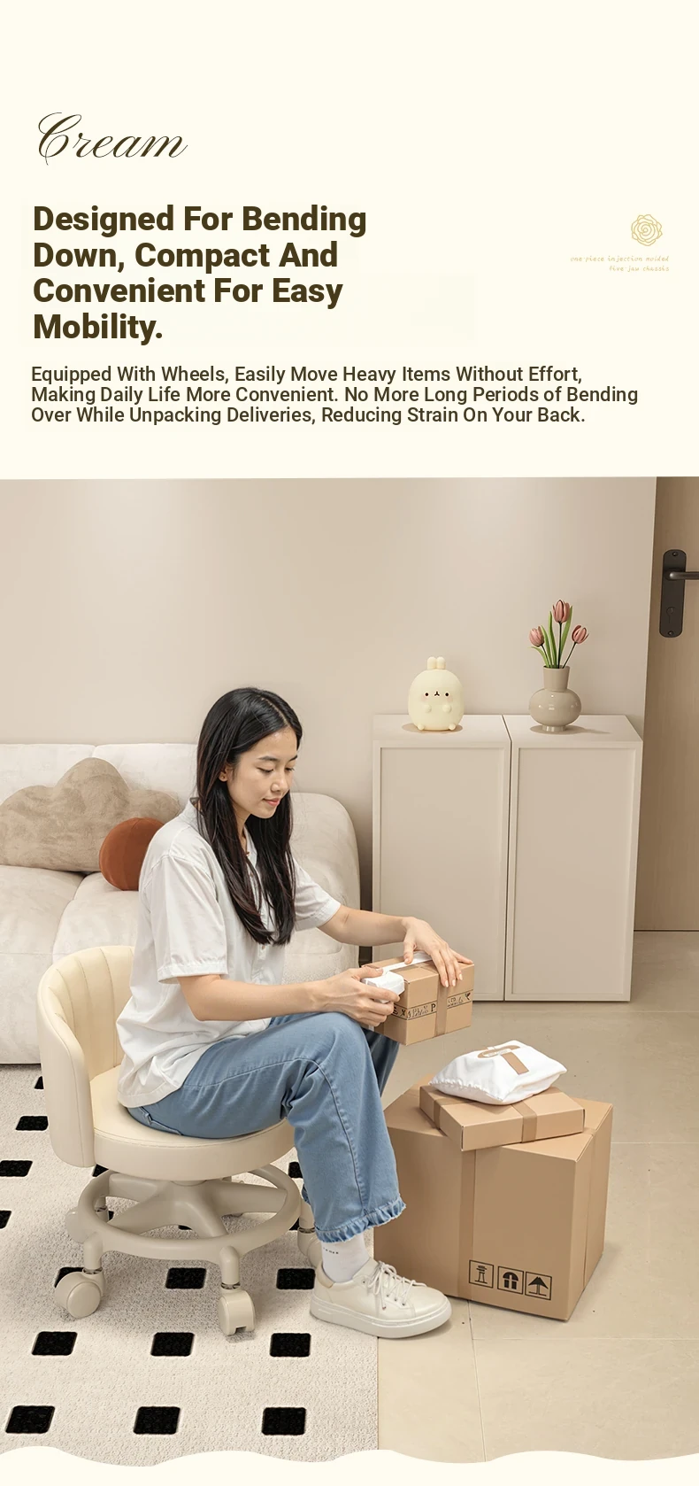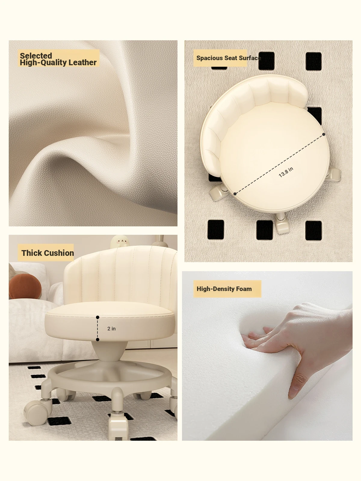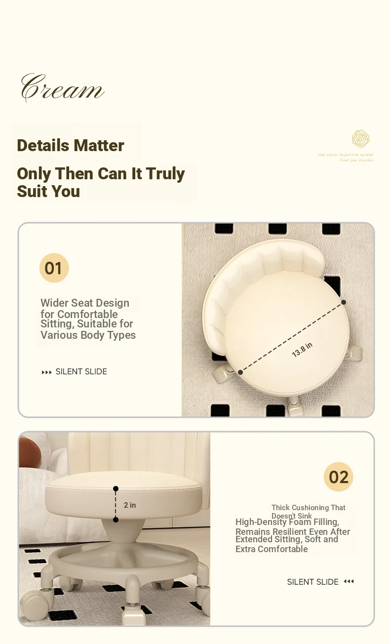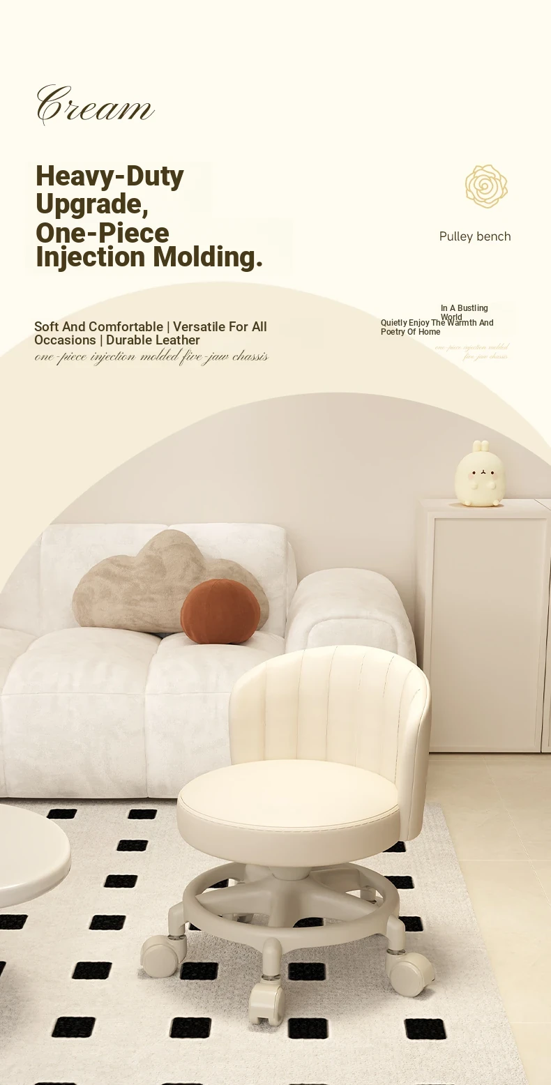 Creamy-white [one-piece glue injection five-claw base-anti-rollover] Manual backrest⭐Smooth silent wheel⭐Arc backrest