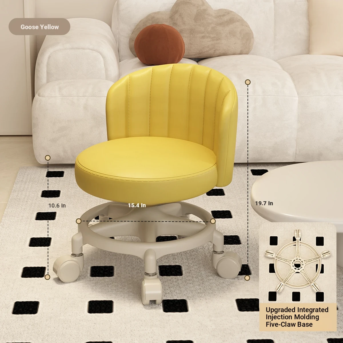 Goose yellow [one-piece glue injection five-claw base-anti-rollover] Manual backrest⭐Smooth silent wheel⭐Arc backrest