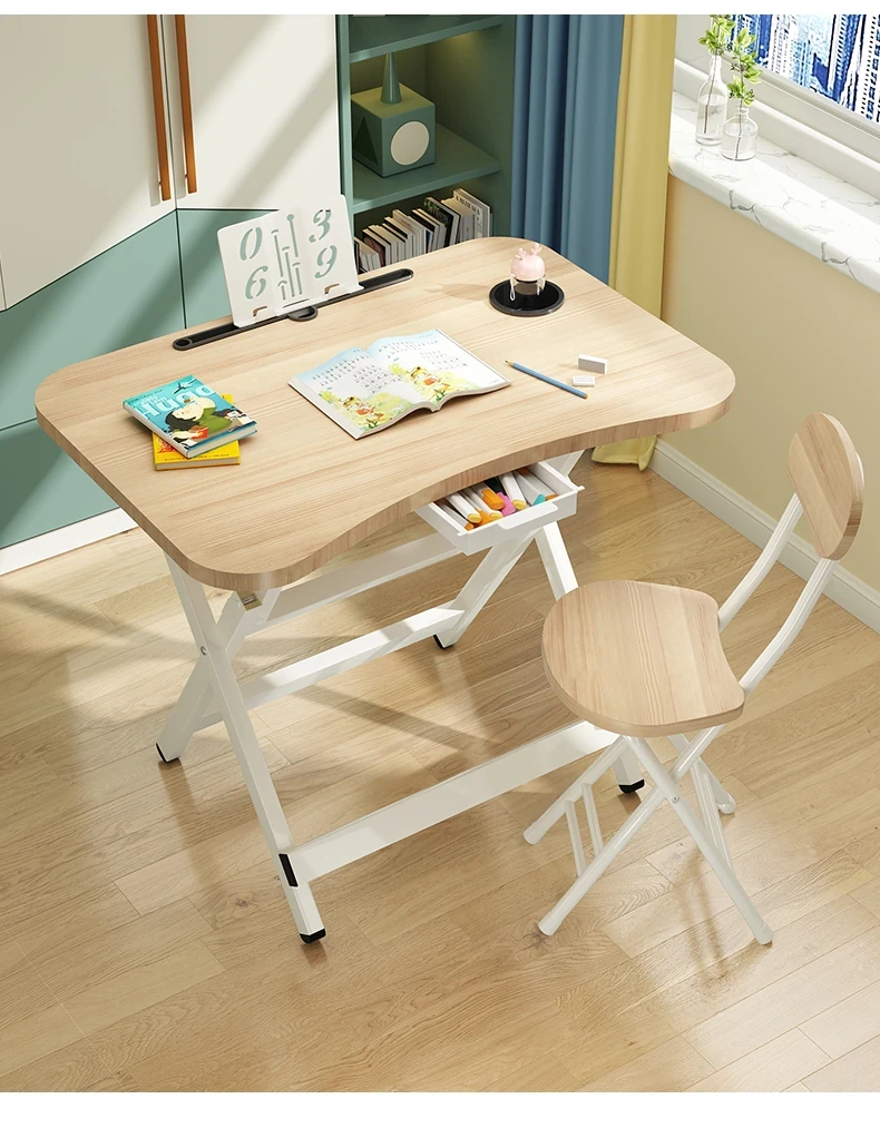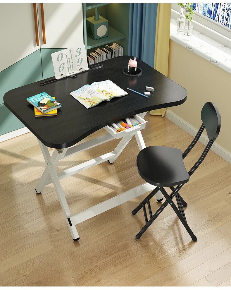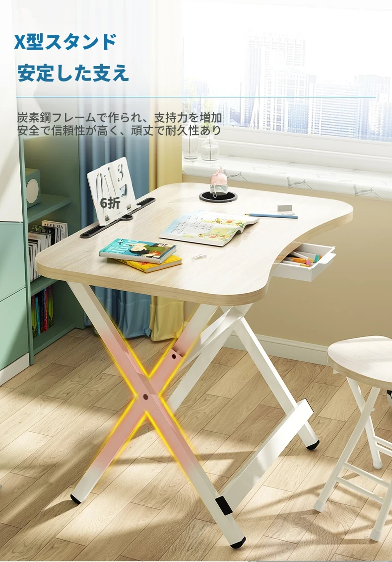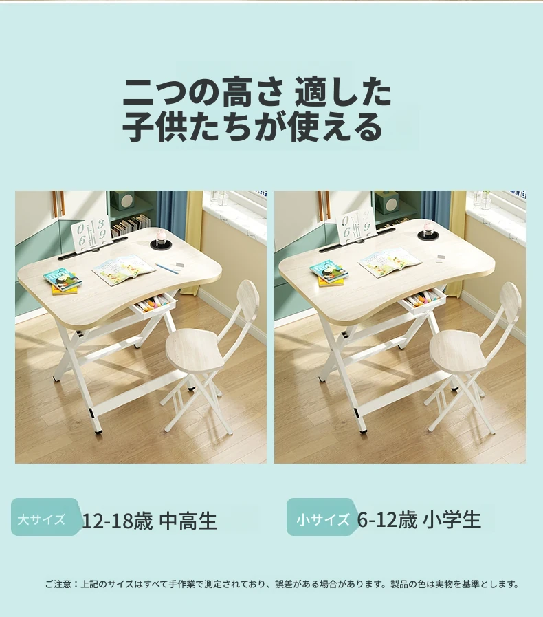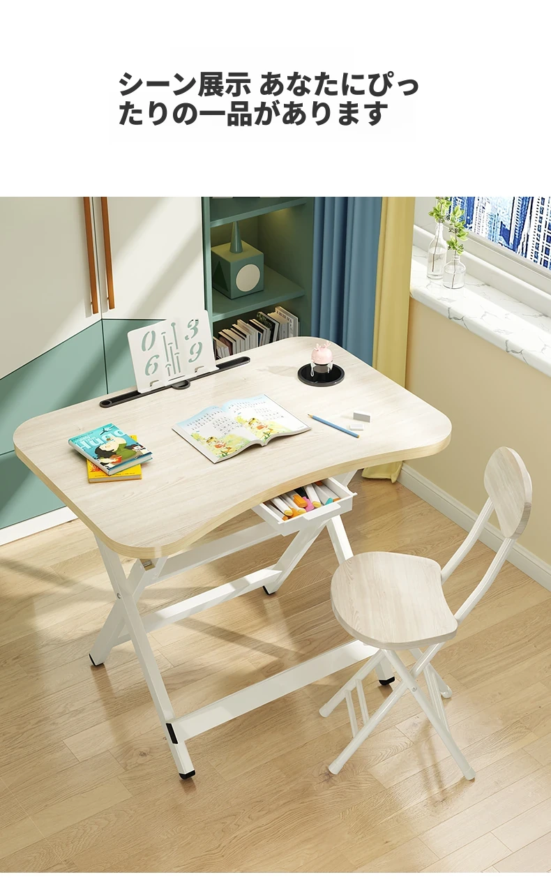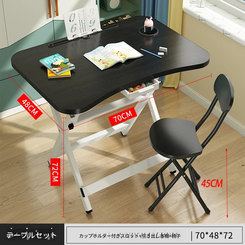 子供用折りたたみ学習デスク|自宅で使えるシンプルな学習セット|小学生に最適な宿題用デスクと椅子|便利でスペースを取らない書き物机としておすすめ!