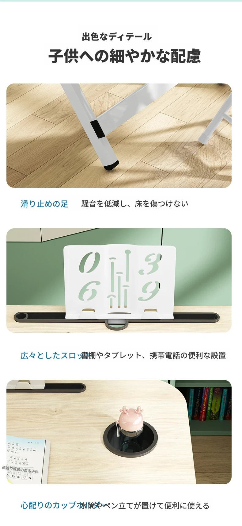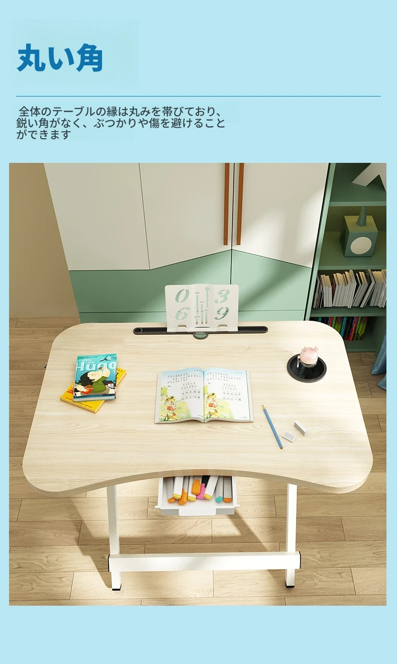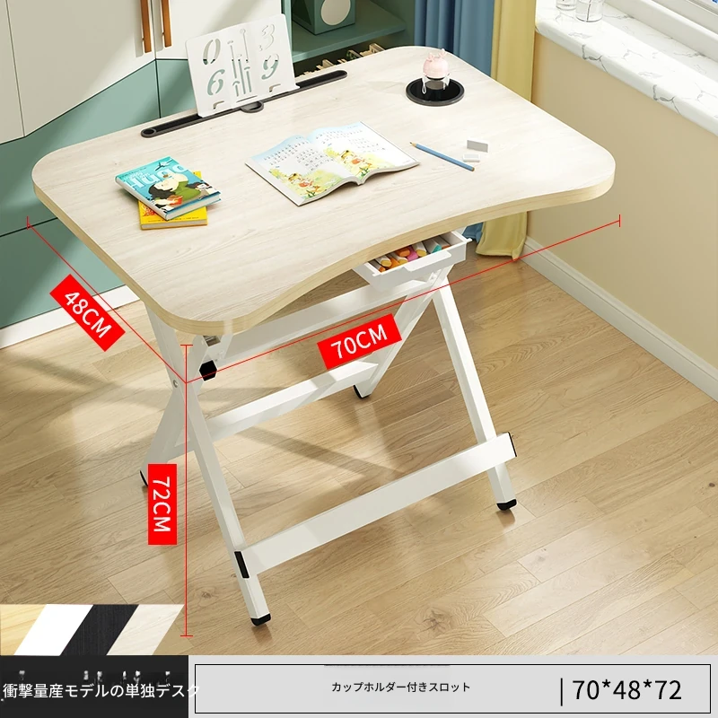 【テーブルと椅子のセット】ホワイトメープル70*48*72(スロットカップホルダー+引き出し本棚)スツール高さ43cm